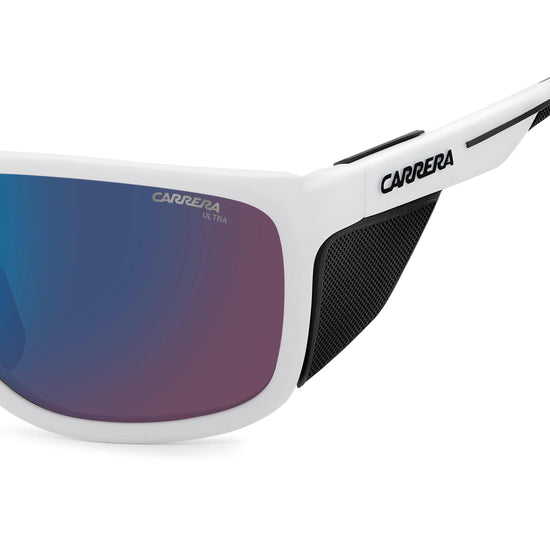These Carrera sunglasses draw inspiration from outdoor sports, culminating in the bold Extreme version. The full-coverage structure includes lateral magnetic spoilers that protect from light and wind. The included elastic band attaches to the end tips for secure active wear. Both band and spoilers can be removed quickly when you want everyday frames, and can also be used with the C SPORT 08 model. Choose between polarized or high-contrast lenses.