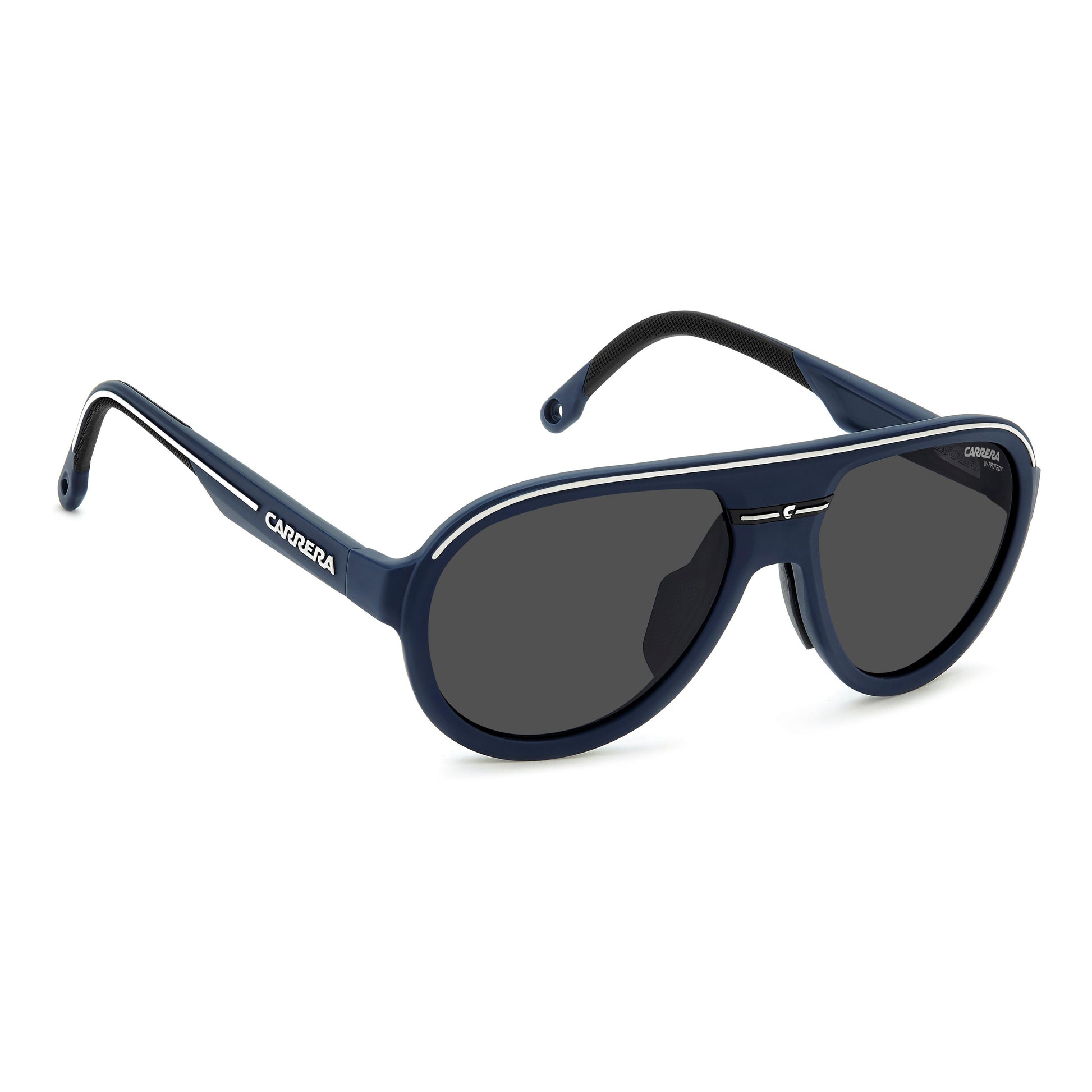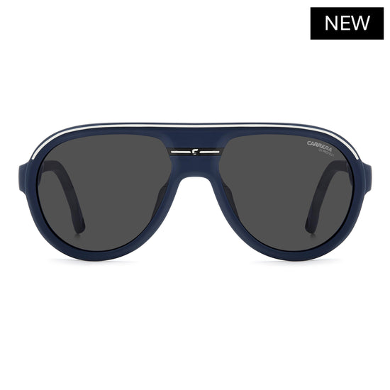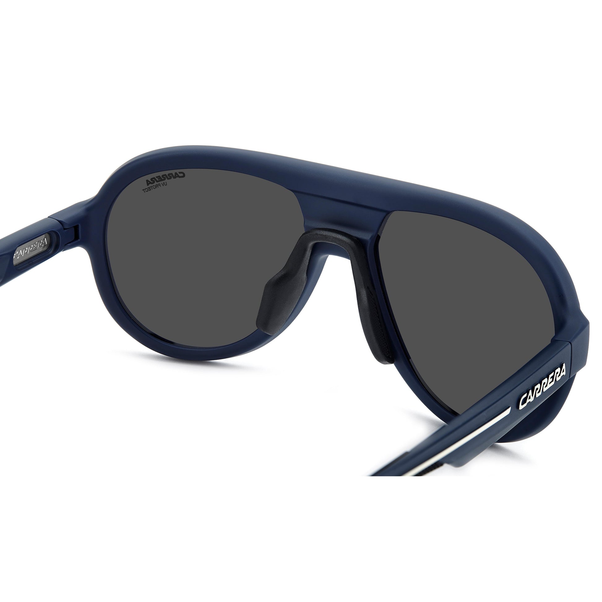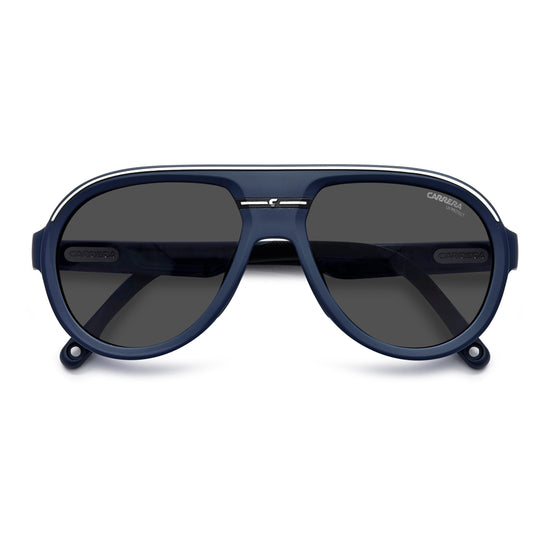These Carrera sunglasses revisit an emblematic design from the brand's sporty heritage, echoing looks from the 1980s, when Carrera set fashion trends on the world's most exclusive slopes. The plastic aviator front features the Victory C logo placed horizontally and lateral magnets for optional spoilers. Rubber inserts on the temples ensure comfort while adjustable end tips with holes can be paired with an optional elastic band.