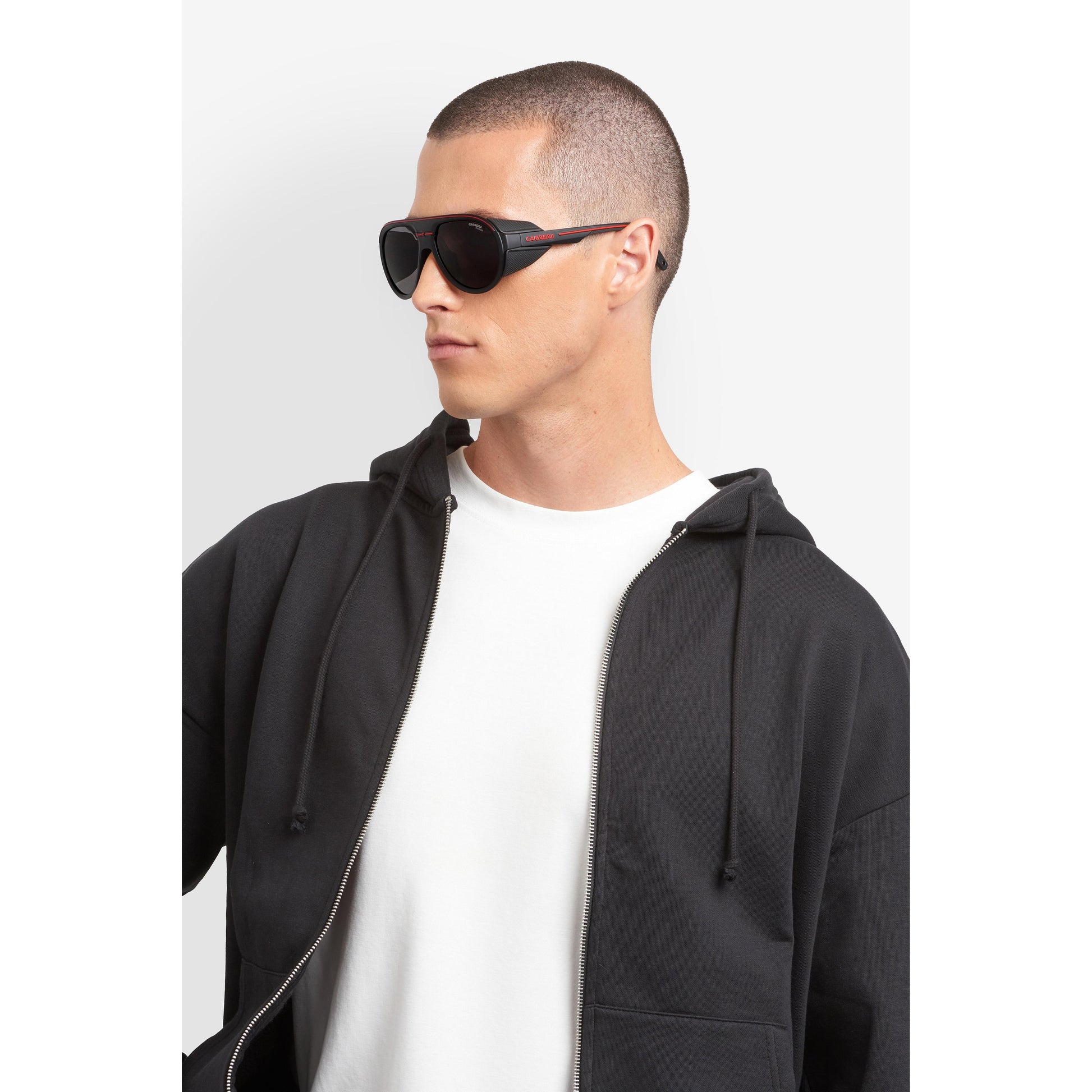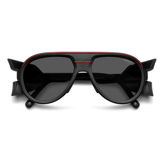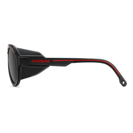 Carrera’s Extreme sunglasses pay homage to the brand’s iconic winter sports heritage. The archival aviator front features a horizontal C logo for a touch of the brand's authentic heritage. Magnetic lateral spoilers provide extra protection and can be removed easily for versatile wear. The branded elastic band ensures secure use. Both spoilers and the elastic band can also be attached to the C SPORT 09 version. Polarized or high-contrast lenses are available.