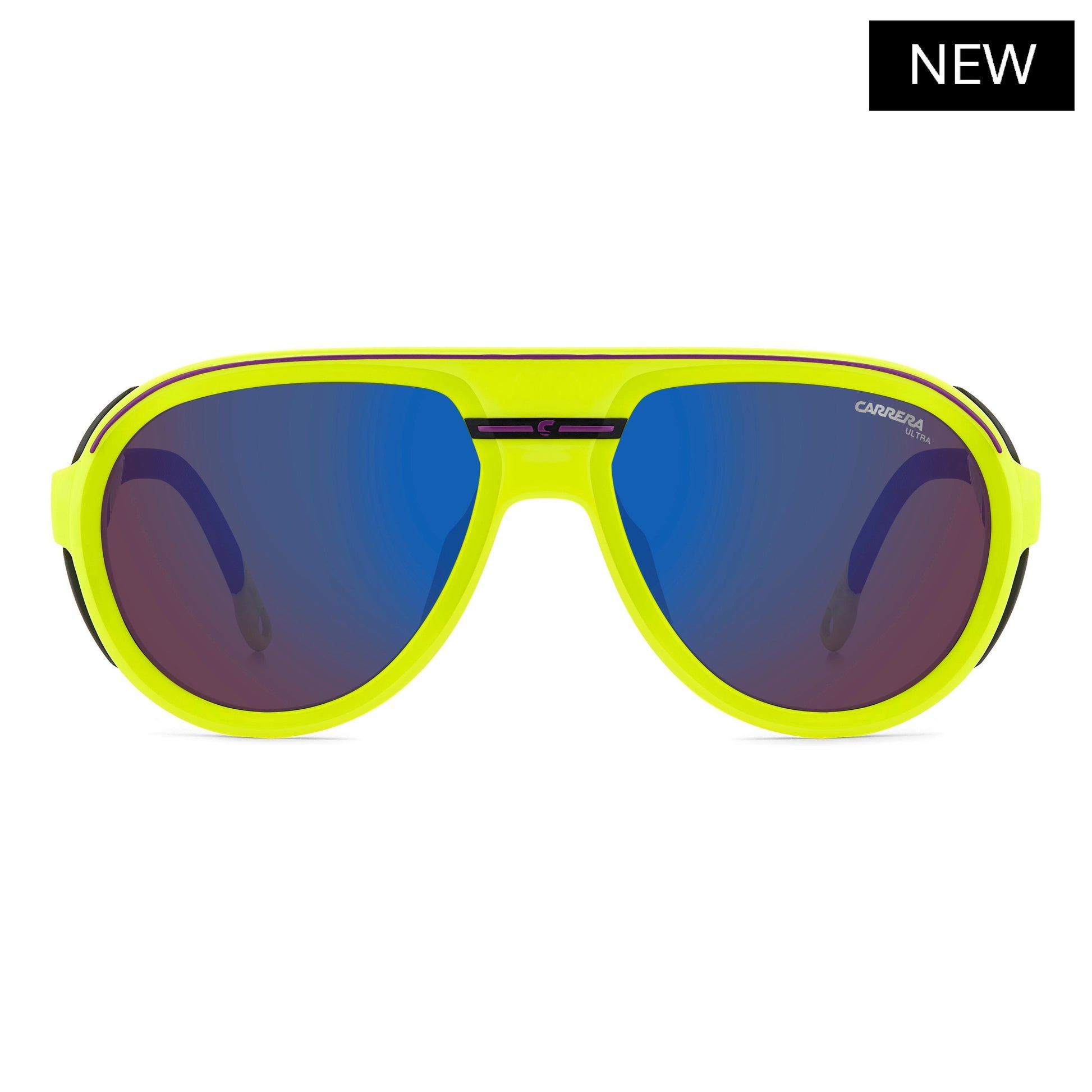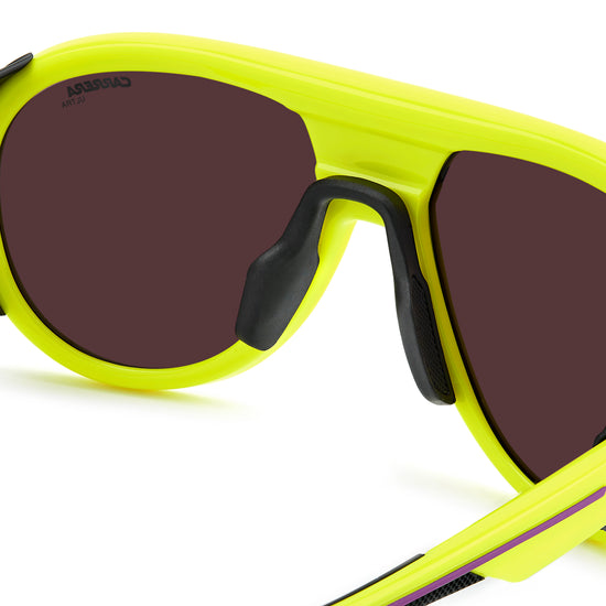 Carrera’s Extreme sunglasses pay homage to the brand’s iconic winter sports heritage. The archival aviator front features a horizontal C logo for a touch of the brand's authentic heritage. Magnetic lateral spoilers provide extra protection and can be removed easily for versatile wear. The branded elastic band ensures secure use. Both spoilers and the elastic band can also be attached to the C SPORT 09 version. Polarized or high-contrast lenses are available.
