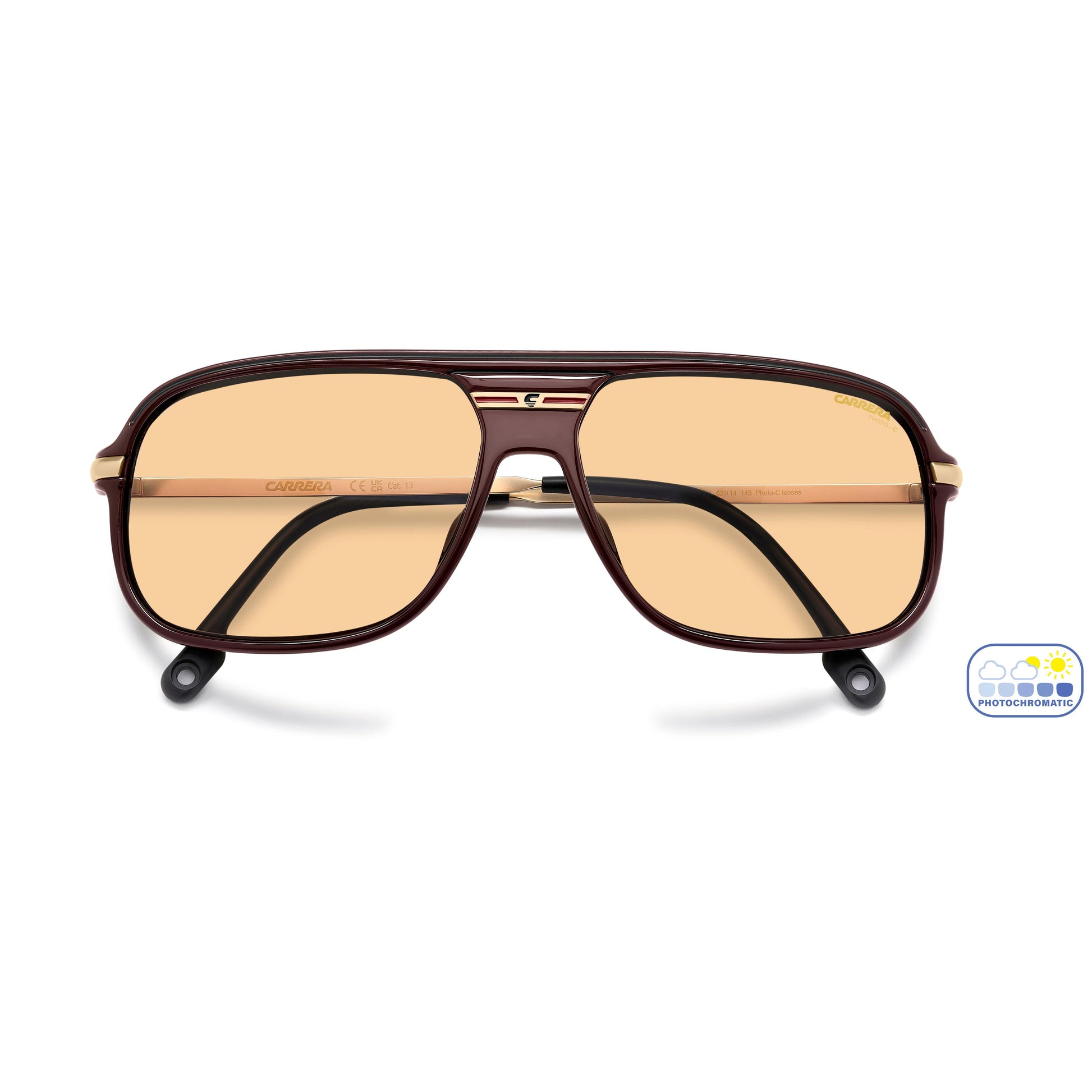 These vintage-inspired sunglasses celebrate Carrera's sporting heritage with fashionable flair. The plastic front features the Victory C logo between the lenses and engraved details along the top. The metal temples are defined by their lightweight design, complete with holes on the end tips for an optional elastic band. A retro colour palette completes their vintage look. Polarized or photochromic lenses adapt to active lifestyles.