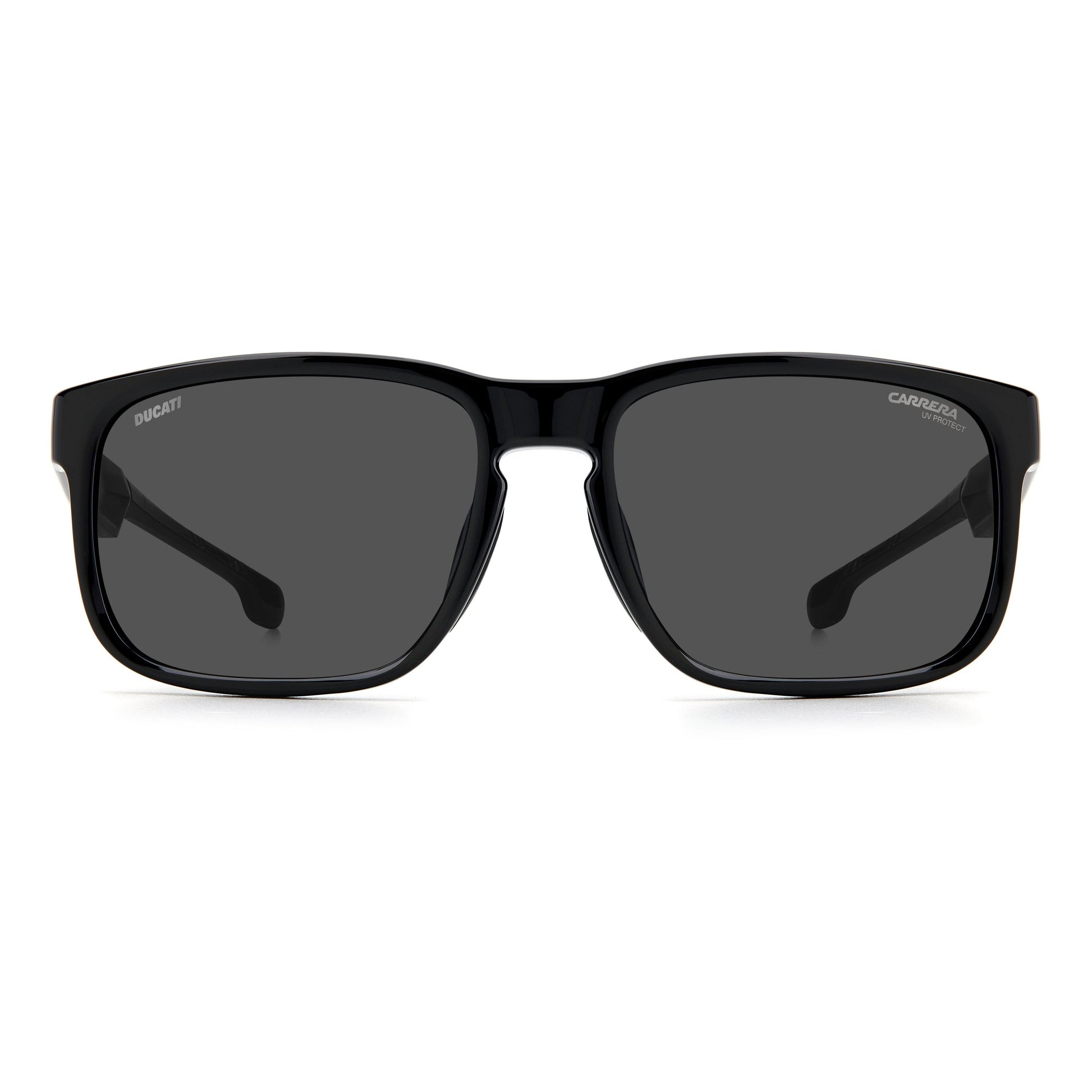 Born from the collaboration between Carrera and Ducati, these sunglasses combine aerodynamic shapes with sporty finishing touches. The square frame is reinforced with rubber panels and internal grips for a secure and stable fit, while the collection’s signature colorway means they're a collectible addition to the modern man’s wardrobe. Designed for a perfect fit under motorbike helmets, they boast the co-branded Carrera and Ducati styling to finish.