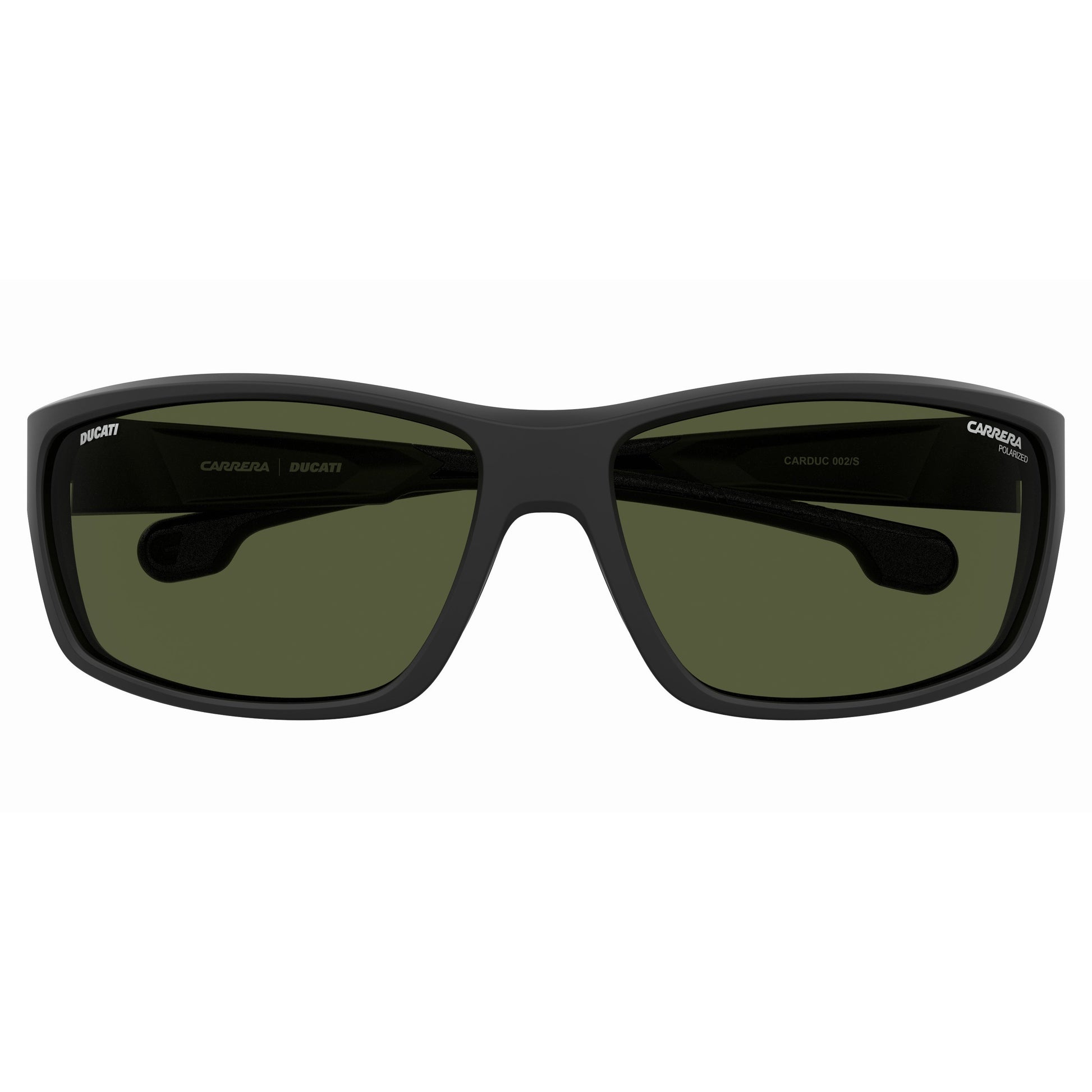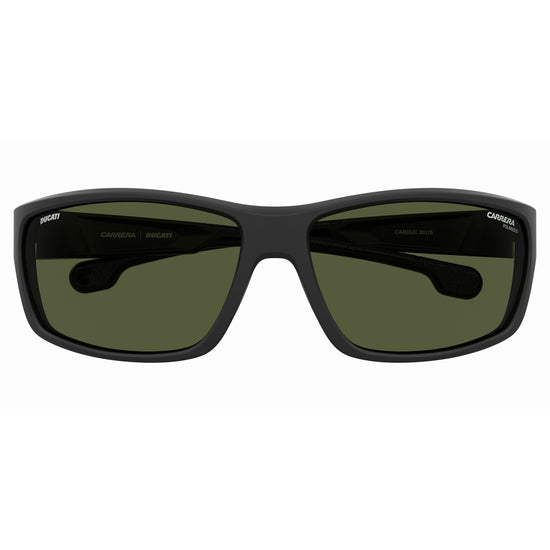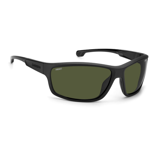 Inspired by the high performance and sporty power of the iconic Ducati Panigale, these men’s sunglasses from the Carrera | Ducati collection are the ultimate expression of style, comfort, and a sporty/winning attitude. The elongated square rims are paired with the athletic, aerodynamic profile of the temples and non-slip rubber inserts for improved stability and support. Designed for a perfect fit under motorbike helmets, they boast the co-branded Carrera and Ducati styling to finish.