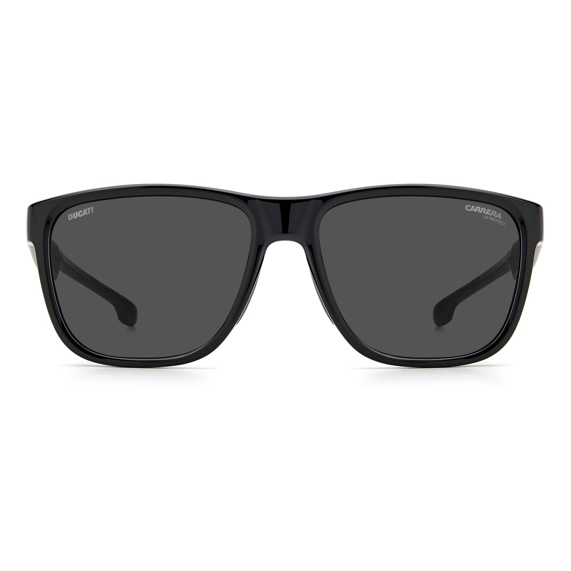 Elevating performance through stylish details, these Carrera | Ducati sunglasses celebrate the shared passions of the two iconic sports brands. The large square frame showcases a unique aerodynamic design inspired by the unmistakable Ducati Panigale, while the rubber panels and internal grips ensure superior comfort and stability. Designed for a perfect fit under motorbike helmets, they boast the co-branded Carrera and Ducati styling to finish.