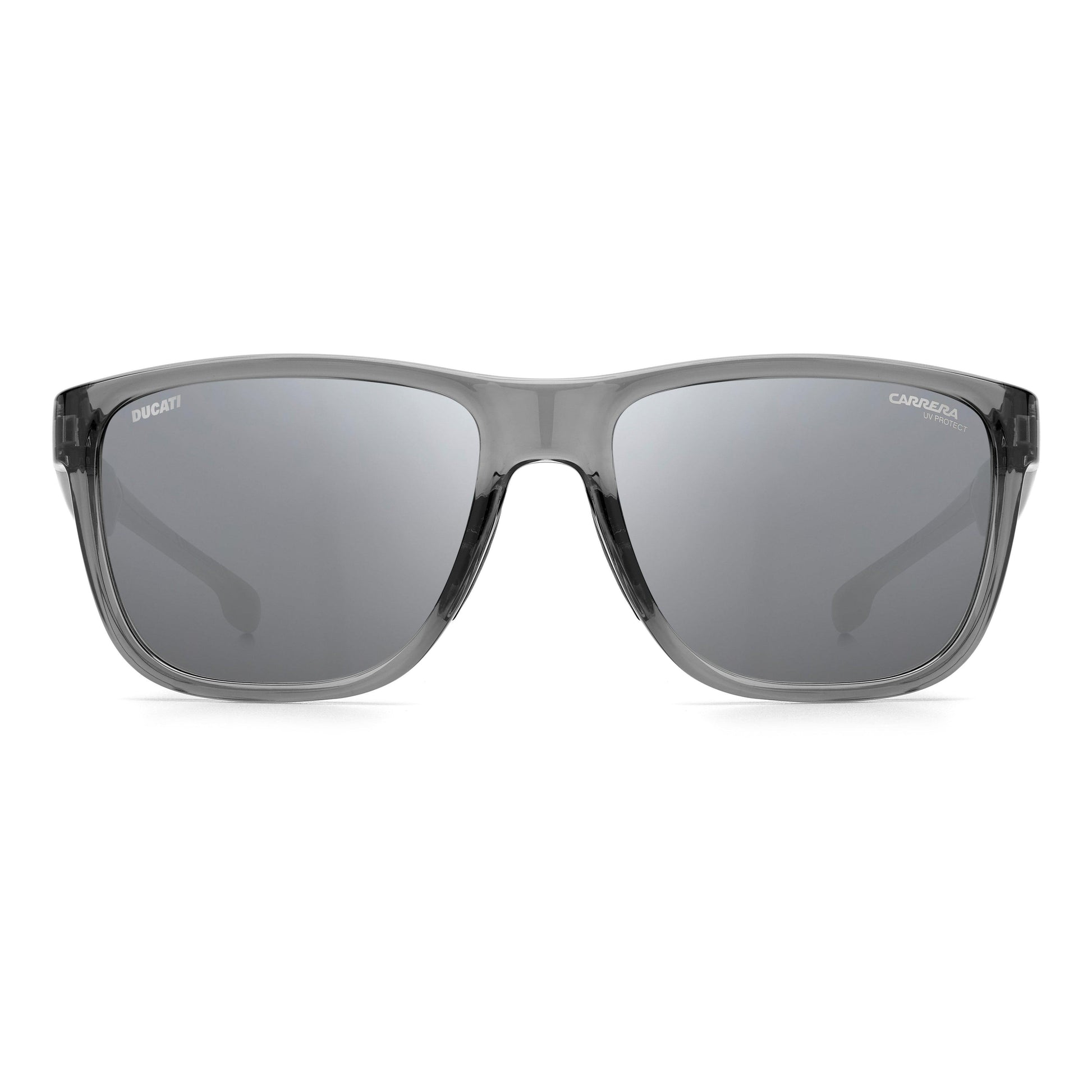 Elevating performance through stylish details, these Carrera | Ducati sunglasses celebrate the shared passions of the two iconic sports brands. The large square frame showcases a unique aerodynamic design inspired by the unmistakable Ducati Panigale, while the rubber panels and internal grips ensure superior comfort and stability. Designed for a perfect fit under motorbike helmets, they boast the co-branded Carrera and Ducati styling to finish.