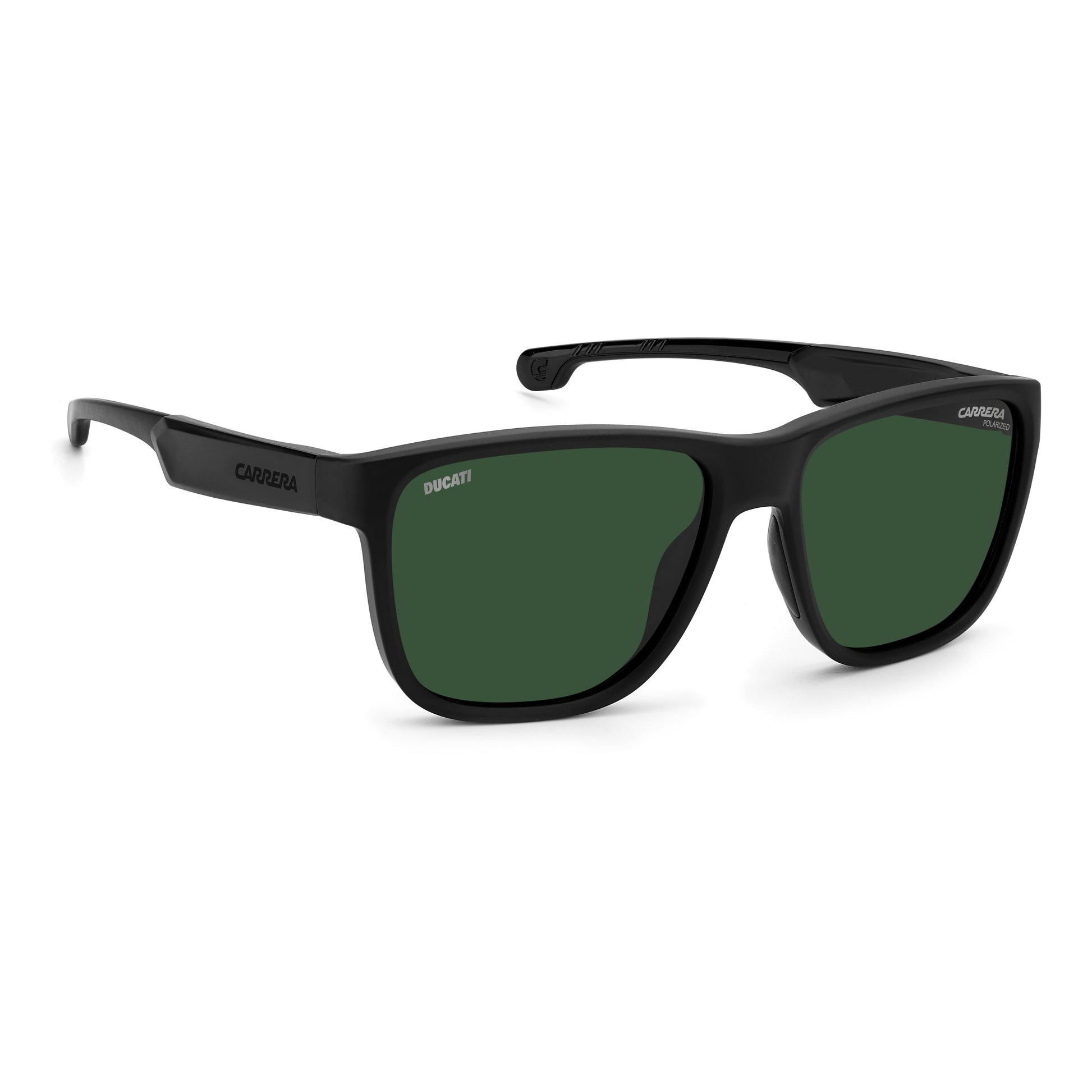 Elevating performance through stylish details, these Carrera | Ducati sunglasses celebrate the shared passions of the two iconic sports brands. The large square frame showcases a unique aerodynamic design inspired by the unmistakable Ducati Panigale, while the rubber panels and internal grips ensure superior comfort and stability. Designed for a perfect fit under motorbike helmets, they boast the co-branded Carrera and Ducati styling to finish.