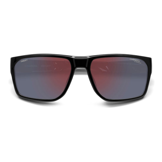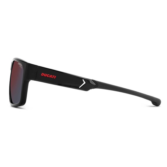Equally perfect for days spent on a motorcycle as those dedicated to relaxation, these Carrera | Ducati sunglasses will go straight to the heart of motorcycle enthusiasts. The temples stand out, with the initial part in flexible, durable Ultem, completed by a V-shaped notch (a nod to the geometric forms of Ducati motorcycles) and prominent logos. The full-coverage frames can hold prescription lenses. Also available in mirrored or ultrapolar lens options.