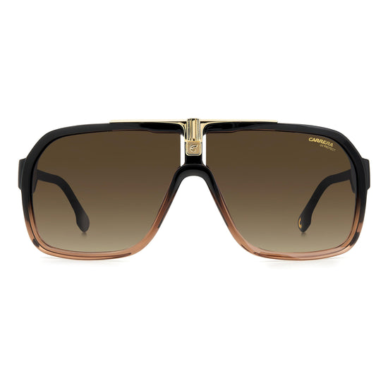 These navigator sunglasses infuse Carrera's sport-style spirit and retro appeal with a dose of urban attitude — perfect for men who want to be spotted on the streets. The neat square silhouette features an injected plastic front and temples and comes complete with UV-protective polycarbonate lenses to shield your eyes from harmful rays. Notice the label’s logo engraved in low relief on each templ and centre and the C-logo positioned discreetly inside the left end-tip — Carrera’s covetable signatures.