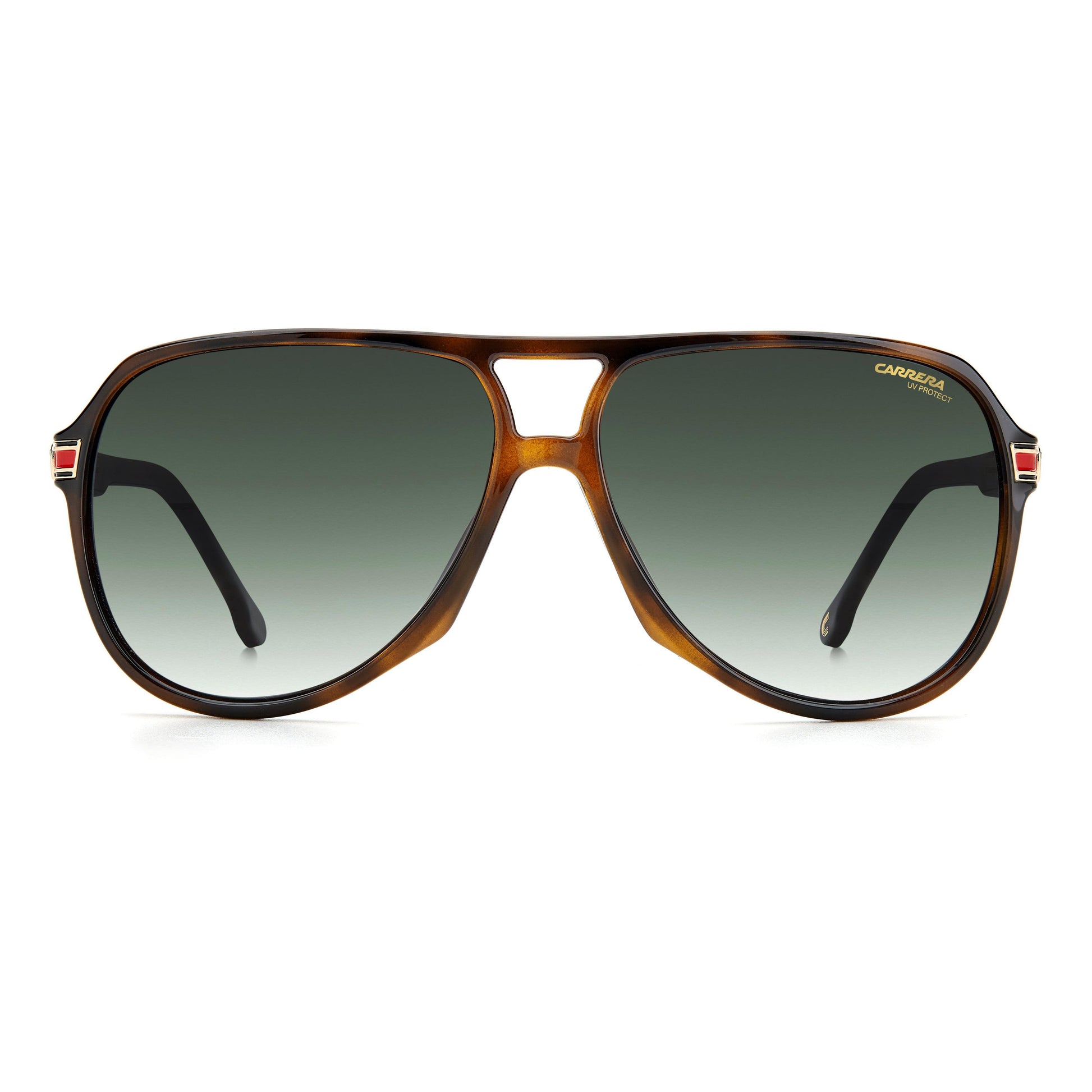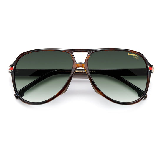 A true standout pair – these aviator sunglasses take the classic Carrera style into a new realm. Designed with a distinctive double nose bridge, they’re shaped from lightweight injection-molded polyamide to an oversized teardrop silhouette. The unique design of the temples energizes the look, mixing the brand’s signature Flag motif with the iconic metal logo plaque for a luxe finish.