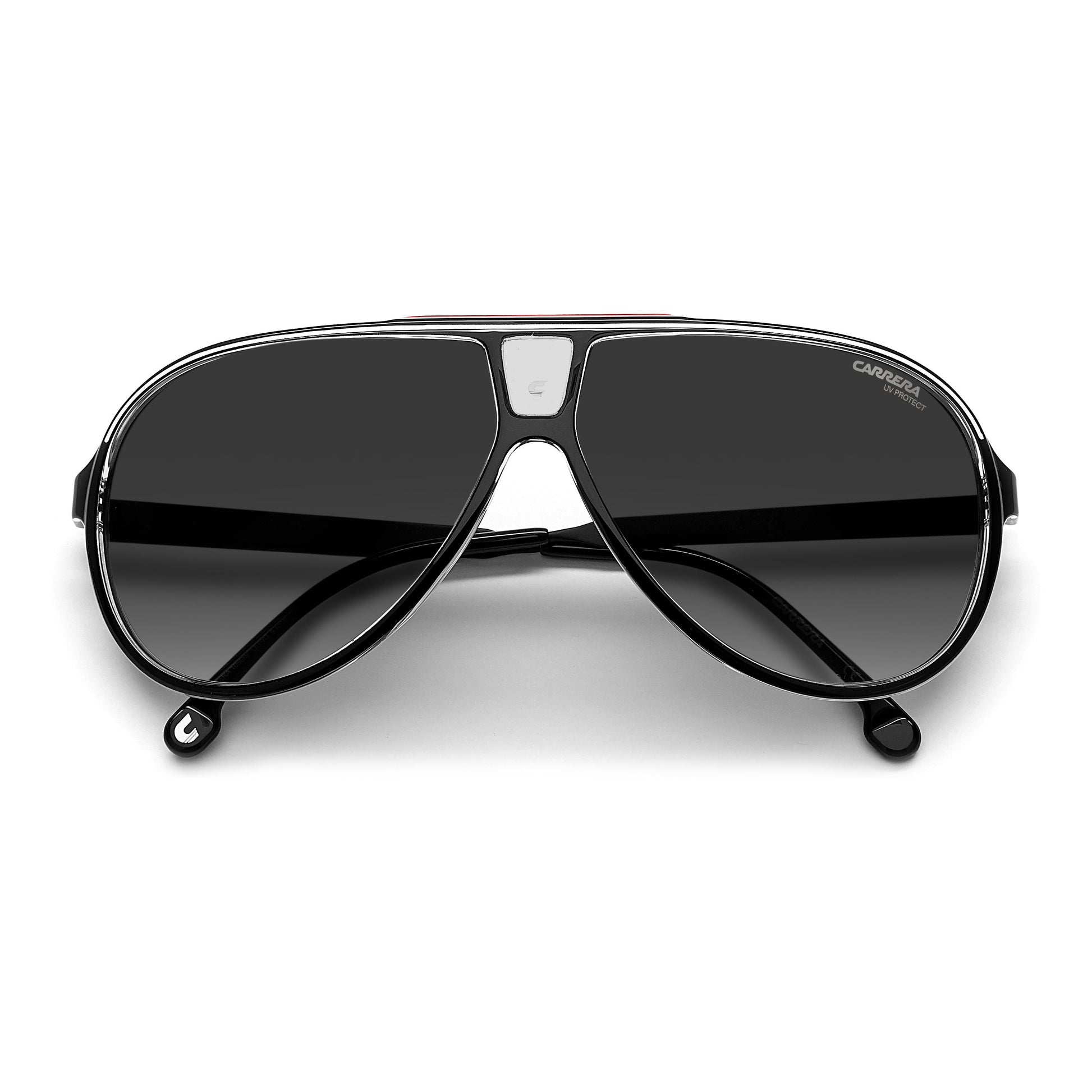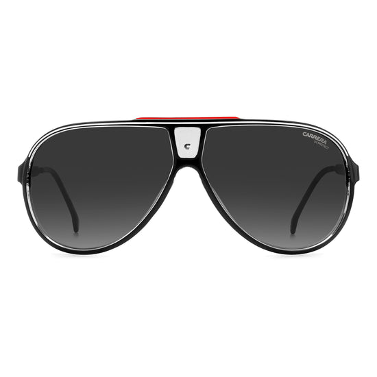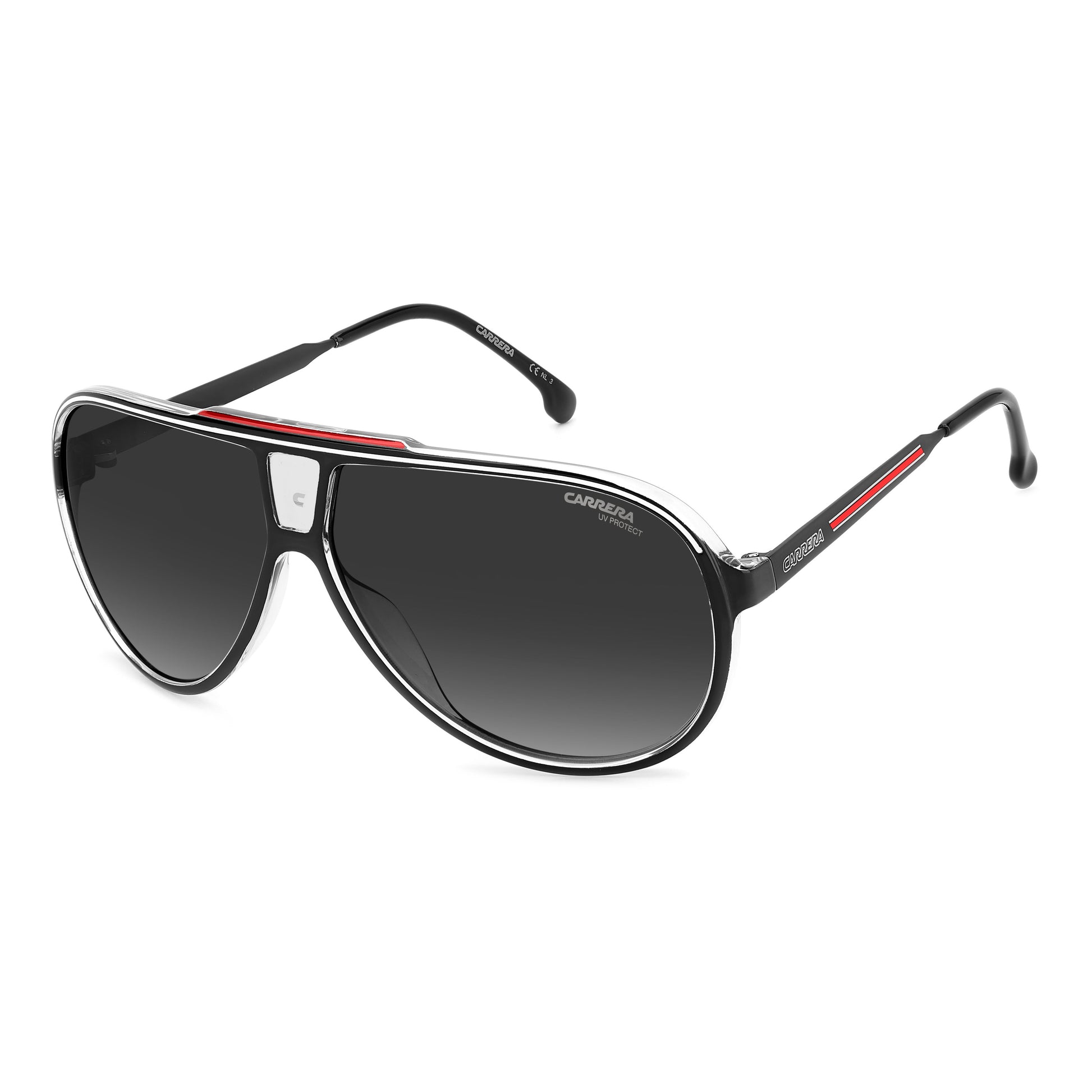 An iconic style adapted to suit today’s dynamic lifestyles – these men’s sunglasses boast large, rectangular pilot frames, topped with a flat brow bar for a contemporary look. Sculpted from injection-molded polyamide, they feature a transparent front, proudly embellished with the unmistakable C, and sleek metal temples detailed with Carrera’s trademark Flag motif. Available in a range of colorways inspired by Carrera’s legendary heritage, including a polarized option.