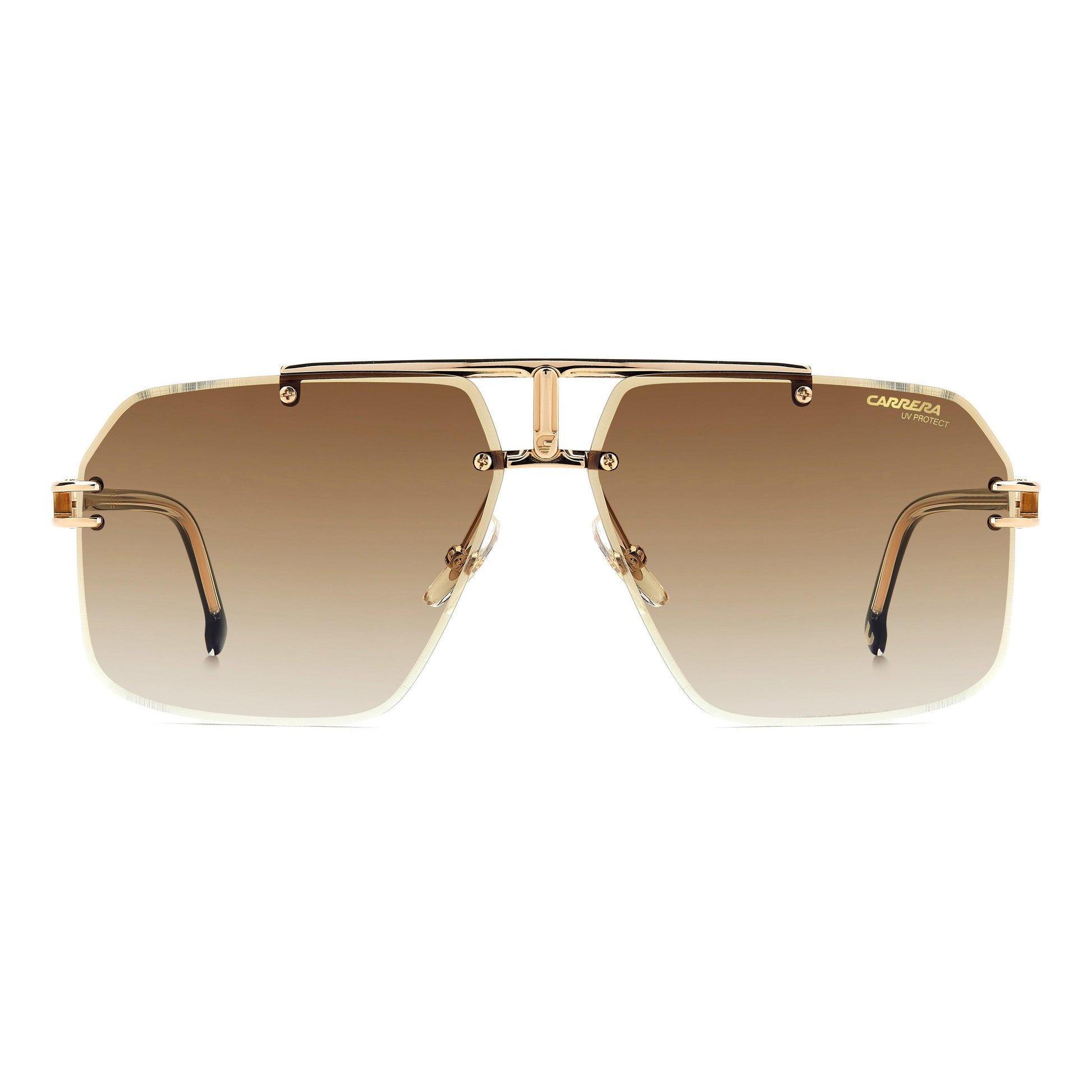 The unconventional design of these Carrera sunglasses captivates collectors and style-setters alike. The rimless frame gives total prominence to the lenses, which are attached to the double metal bridge that contains the Carrera 'C' plaque (the true protagonists of this creation): the visible screws become both a functional and decorative element. The fork-shaped temples with a raised logo and long acetate end tips add an extra dose of character to this model with a bossy attitude.