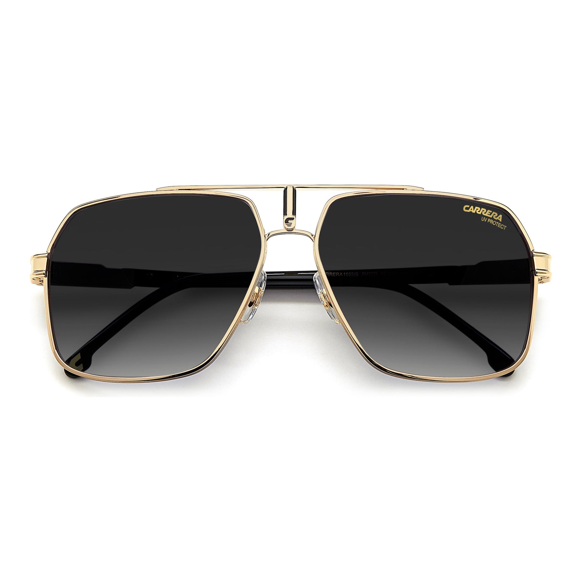 These men's sunglasses transform the typical Carrera finishes into eye-catching elements. The metal profile is iconic with its interplay of solids and voids, given by the double bridge and C-logo plaque. The temples also stand out with their sculpted design, raised logo and long end tips in acetate. The square lenses come in gradient, polarised or Ultrapolar versions with gold coating.