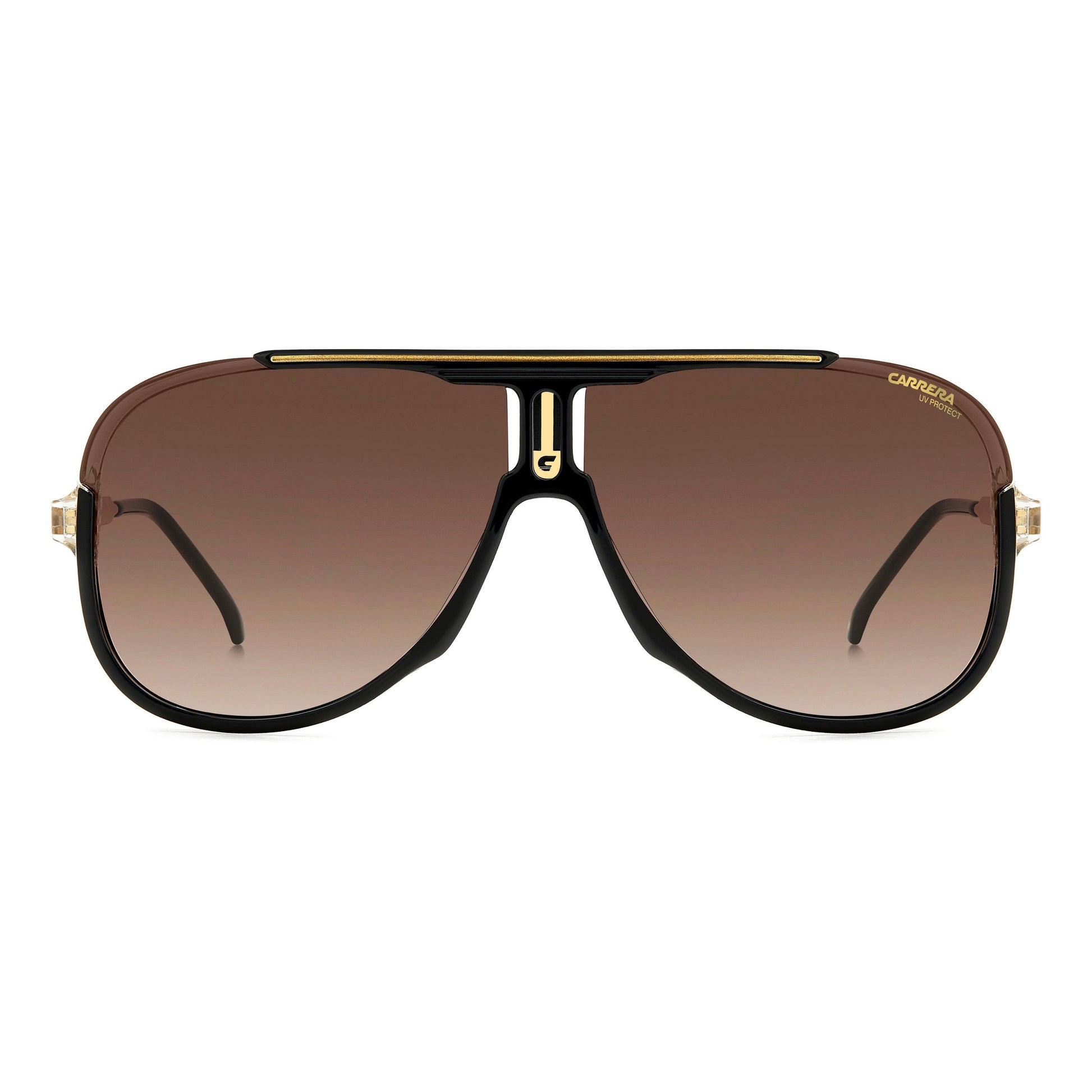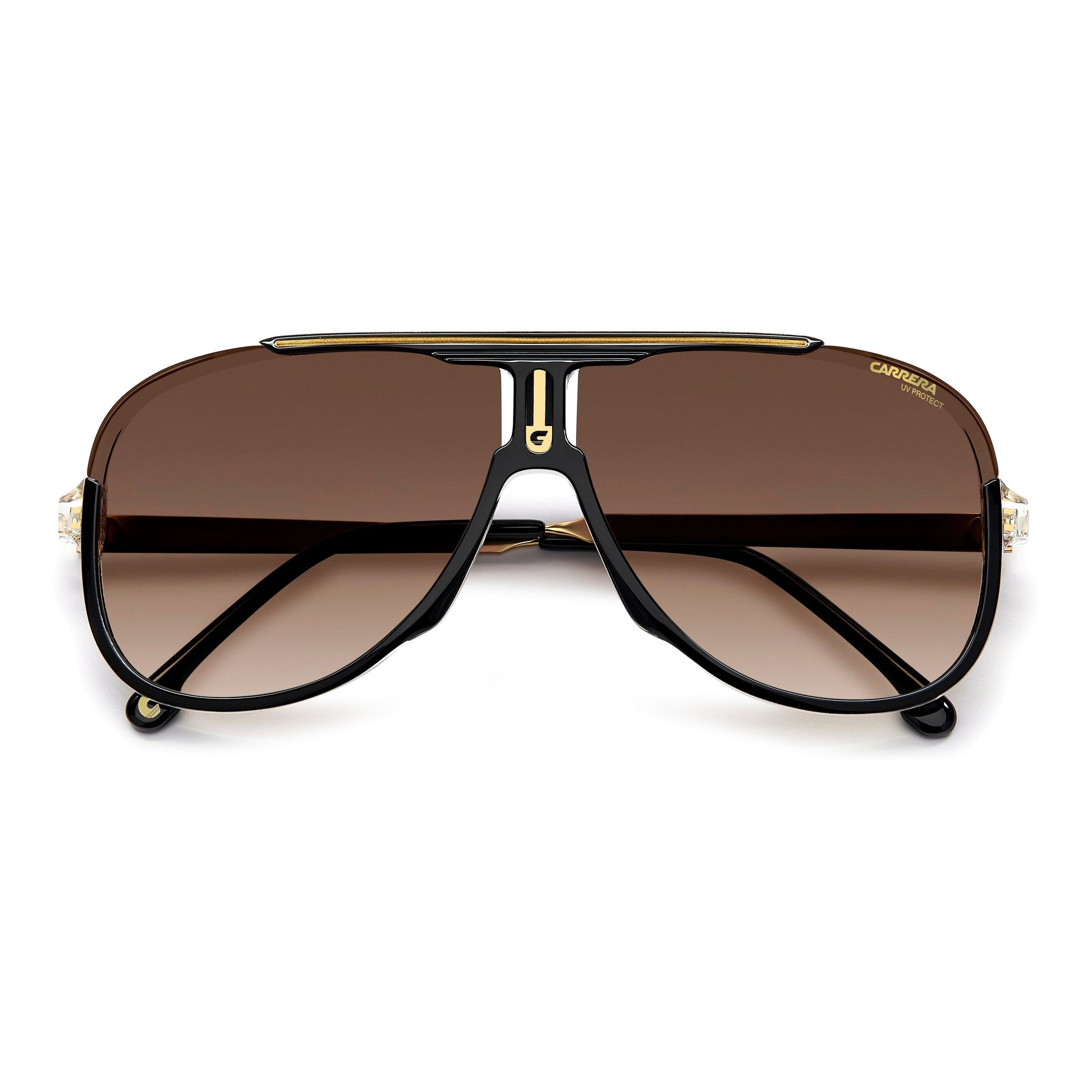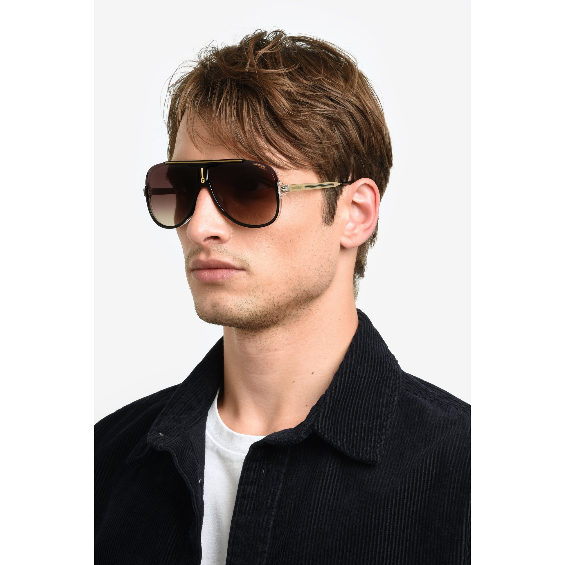 In line with Carrera heritage, these sunglasses embody the freedom to express your authentic self. The oversize frames are sure to get noticed, in part thanks to the top bar and the Carrera flag and ‘C’ logo placed front and centre. This style also comes in versions where the frames are open at the upper corners, and with gradient, mirrored, polarized or ultrapolar lenses.