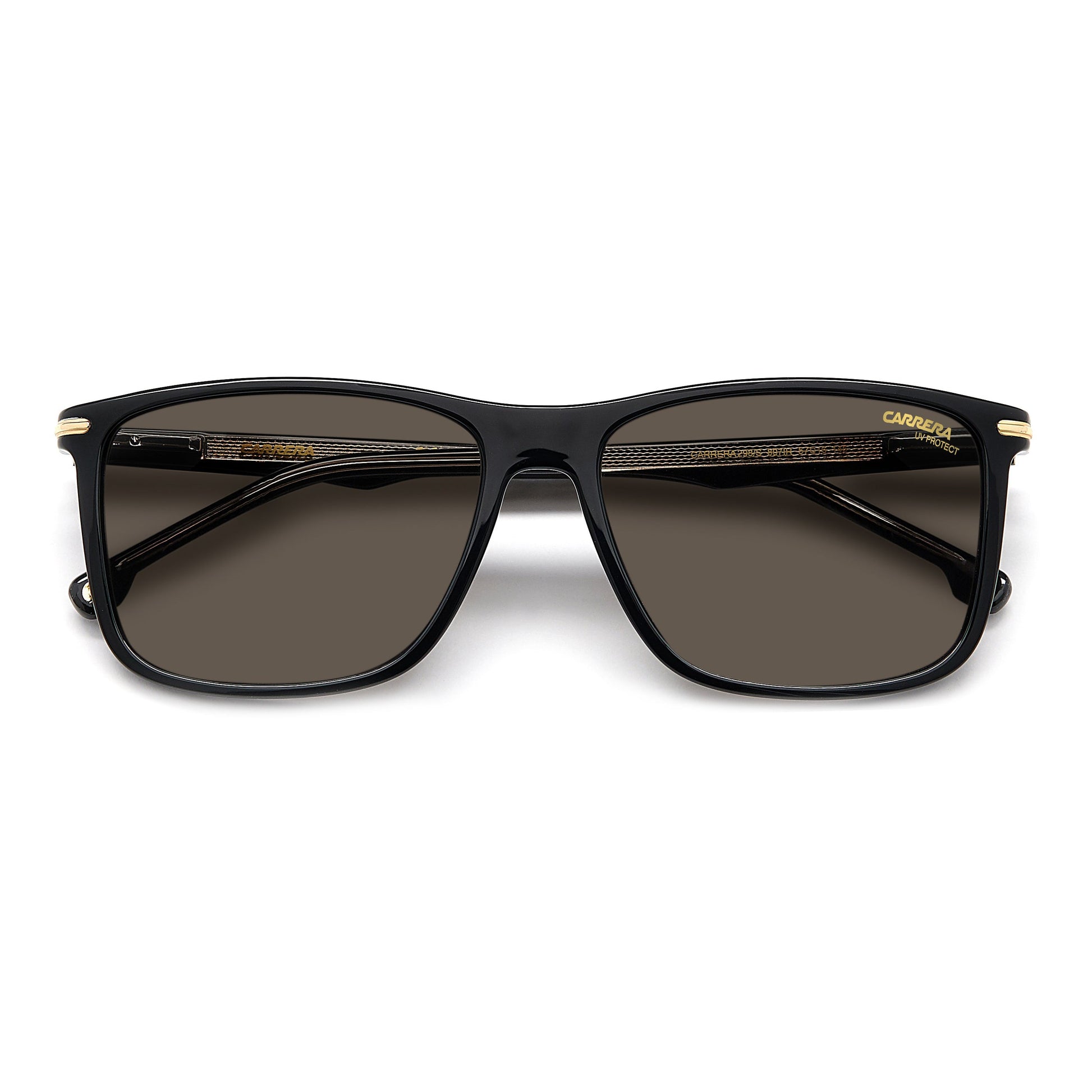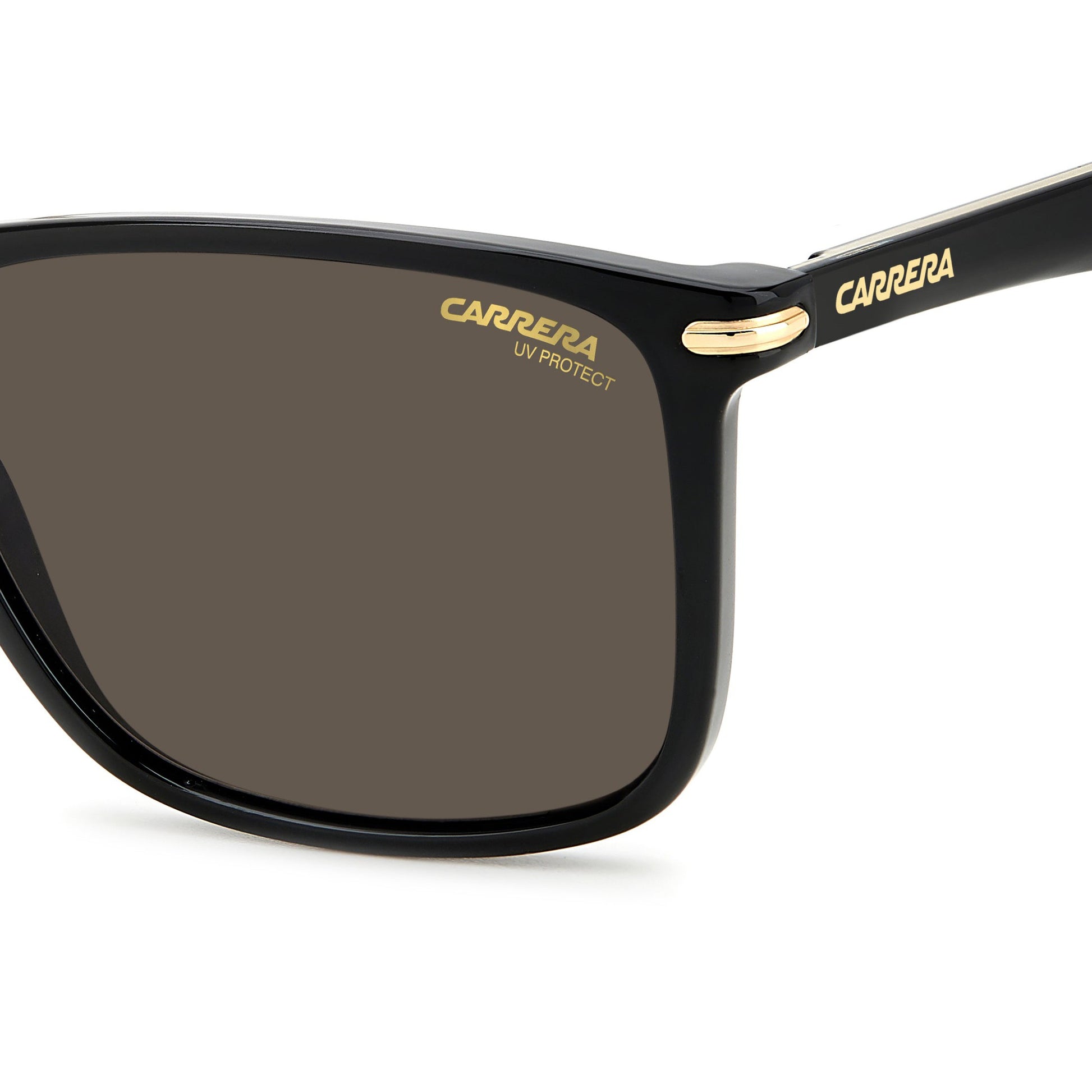 These men’s sunglasses reinvent the canons of classic style. Shaped with a versatile rectangular frame, they have an ultra-lightweight construction and interchangeable flex hinges, which allow you to adjust them to the perfect fit. Carrera’s trademark fin-shaped temples and sturdy metal wire core, enriched with the brand’s signature ‘grid’ texture on the tips, enhance the cool factor. Available with brown, green, and gray lenses, as well as a polarized option.