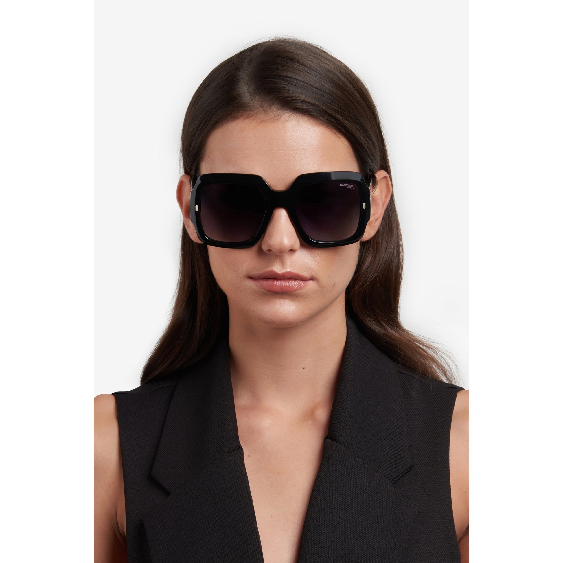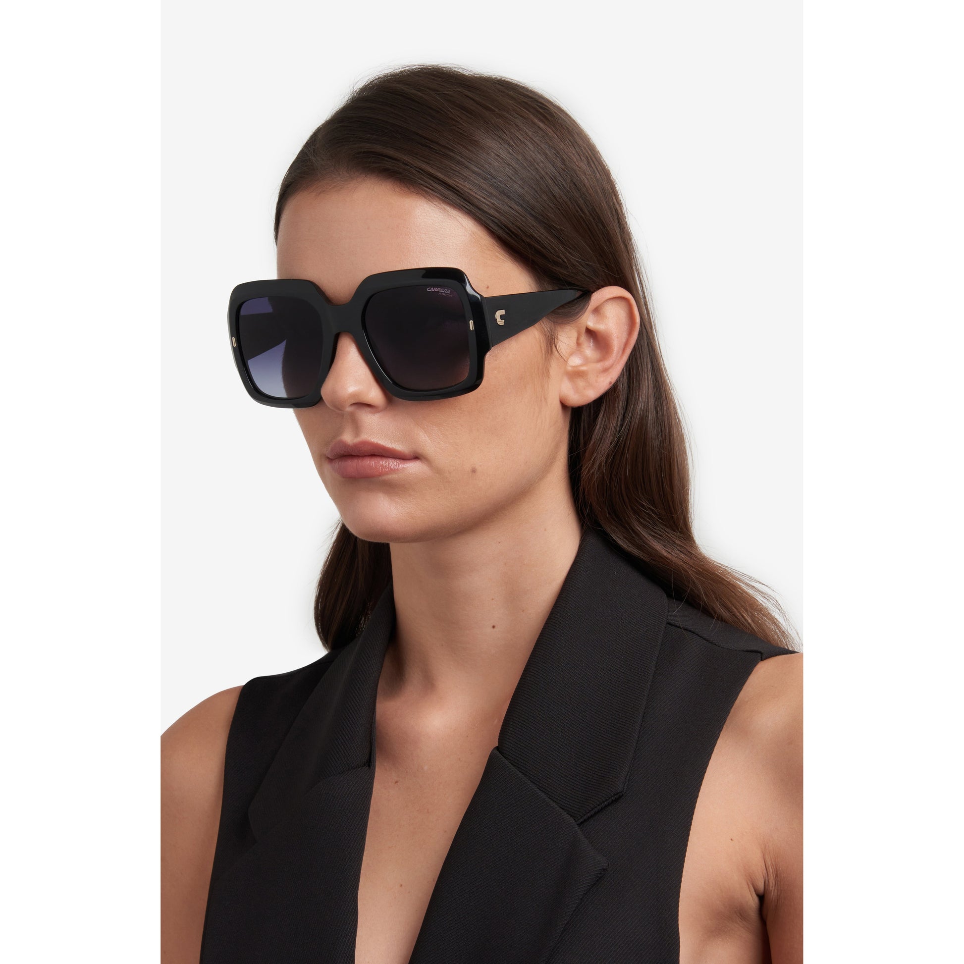 The unmistakable character of Carrera inspired these women’s sunglasses. In acetate, the bold frames are distinguished by a square silhouette and sculptural proportions. The maxi-temples are even more decisive thanks to the prominent raised Carrera ‘C’ detail. These glasses come in an opaline colour palette for feminine allure, including multi-layer options, and they can be fitted with prescription sun lenses.
