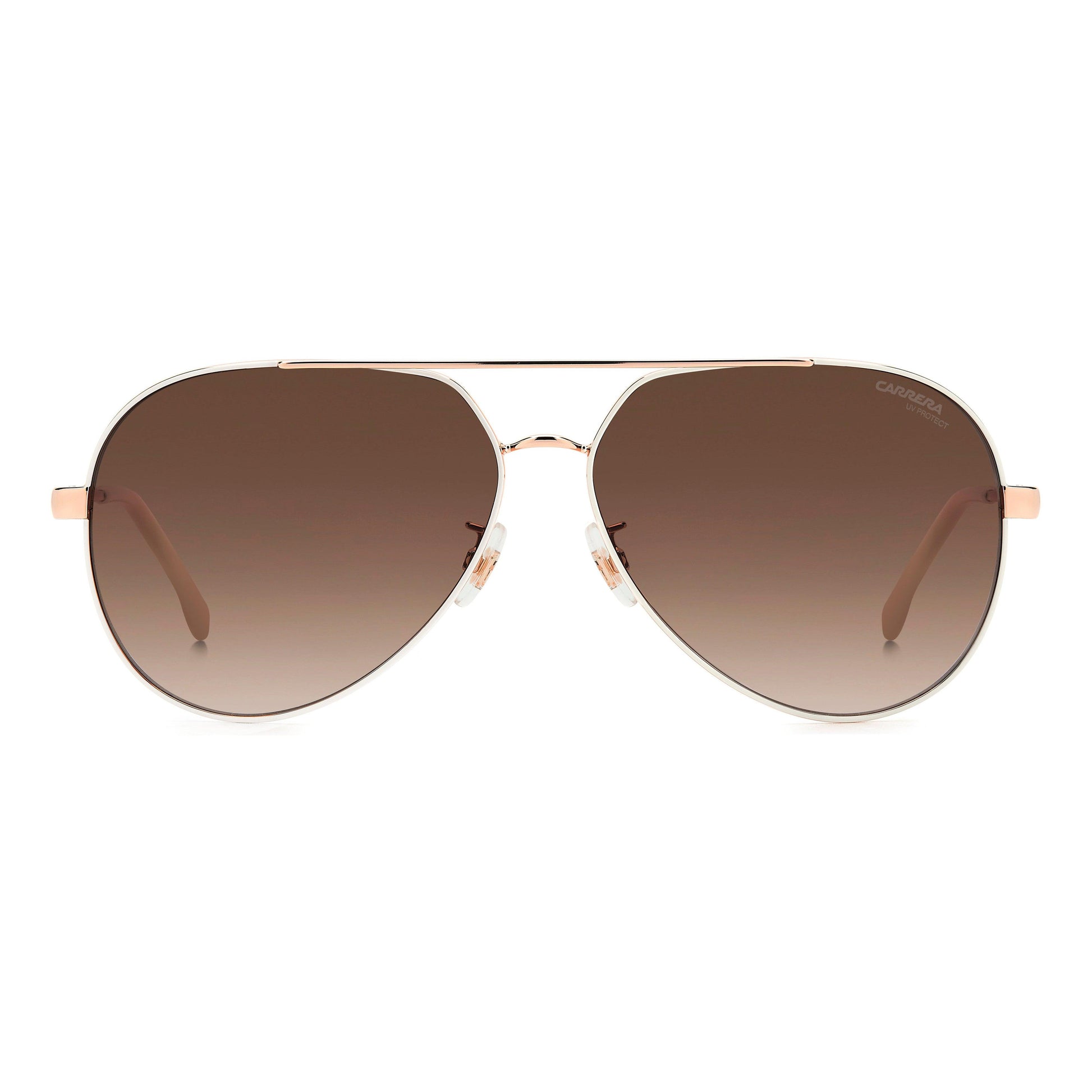 These women’s sunglasses are a modern take on an iconic Carrera silhouette—pilot frames—giving them an on-trend contemporary look. In lightweight stainless steel, they're distinguished by a double bridge that connects the teardrop frames. The temples are elevated by an etched logo and contrast end tips. The lenses are of note: not only do they come in gradient or polarized versions, they can also be fitted with prescription lenses