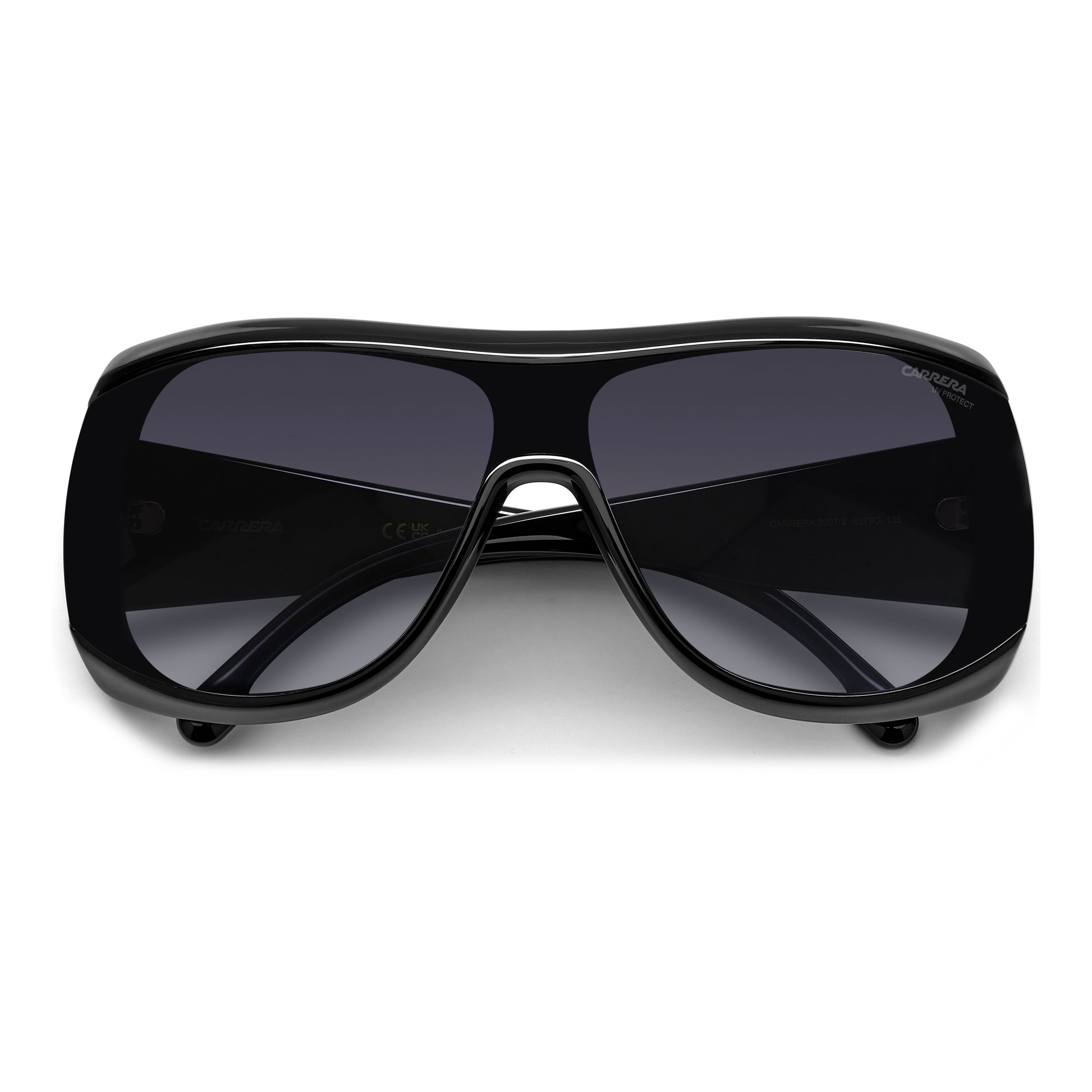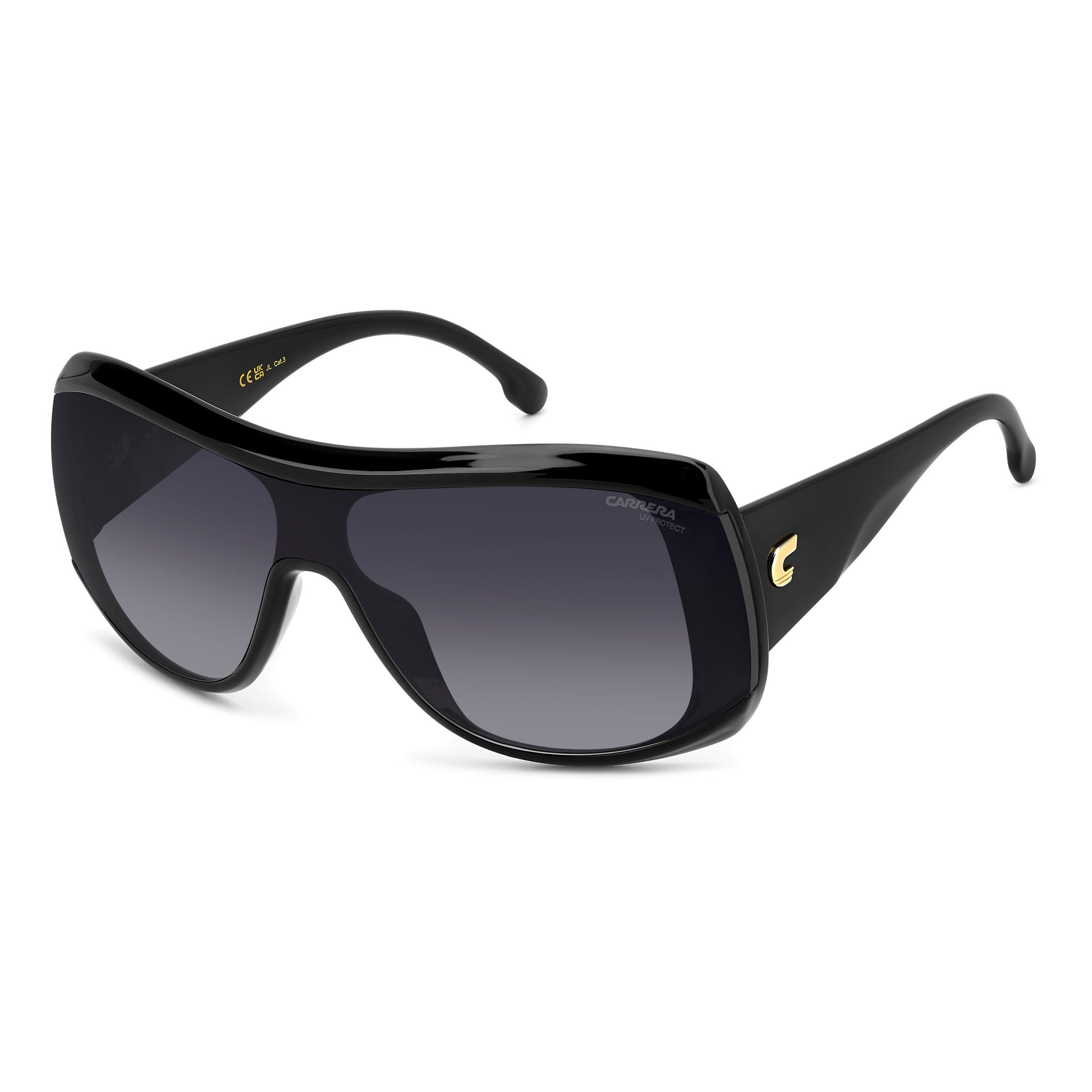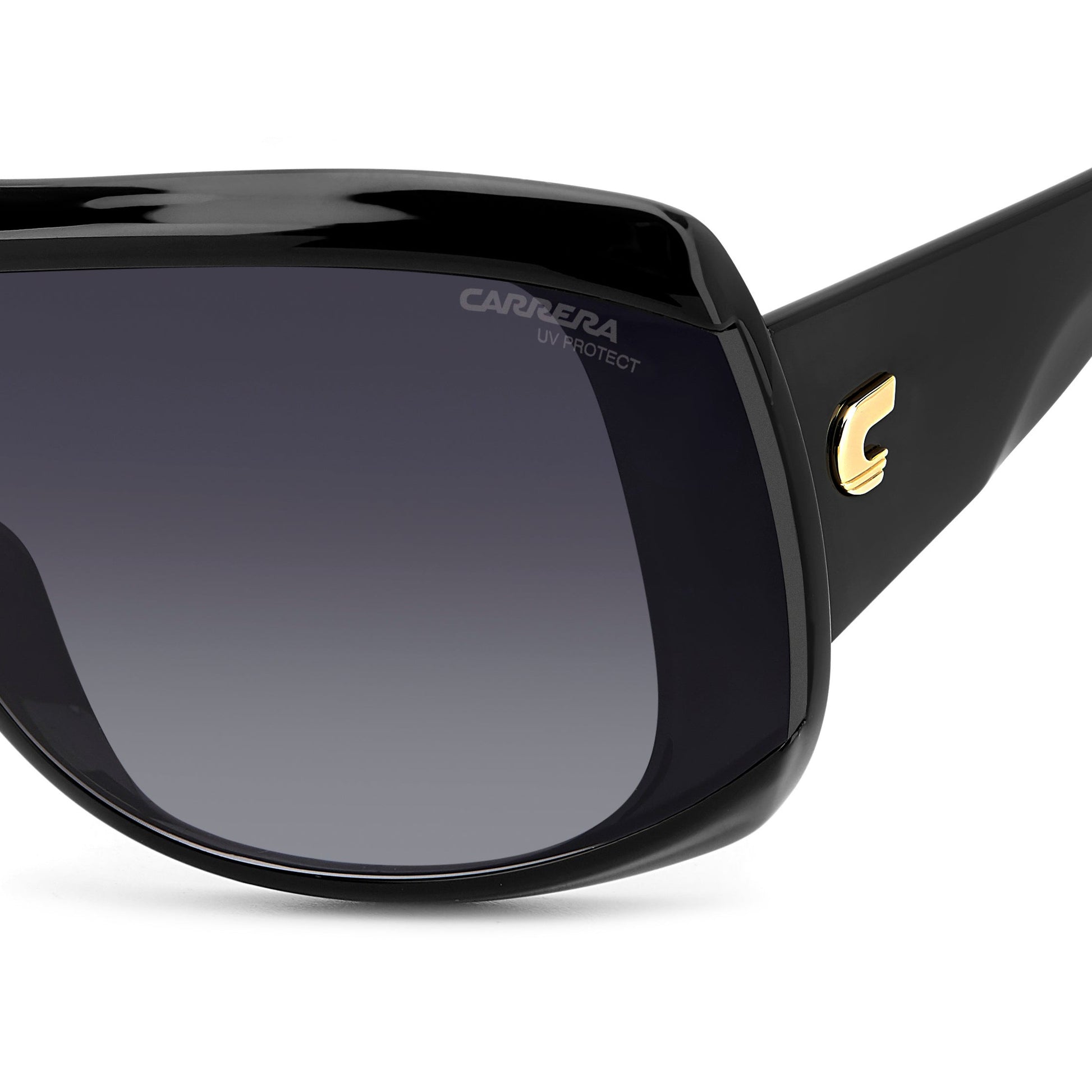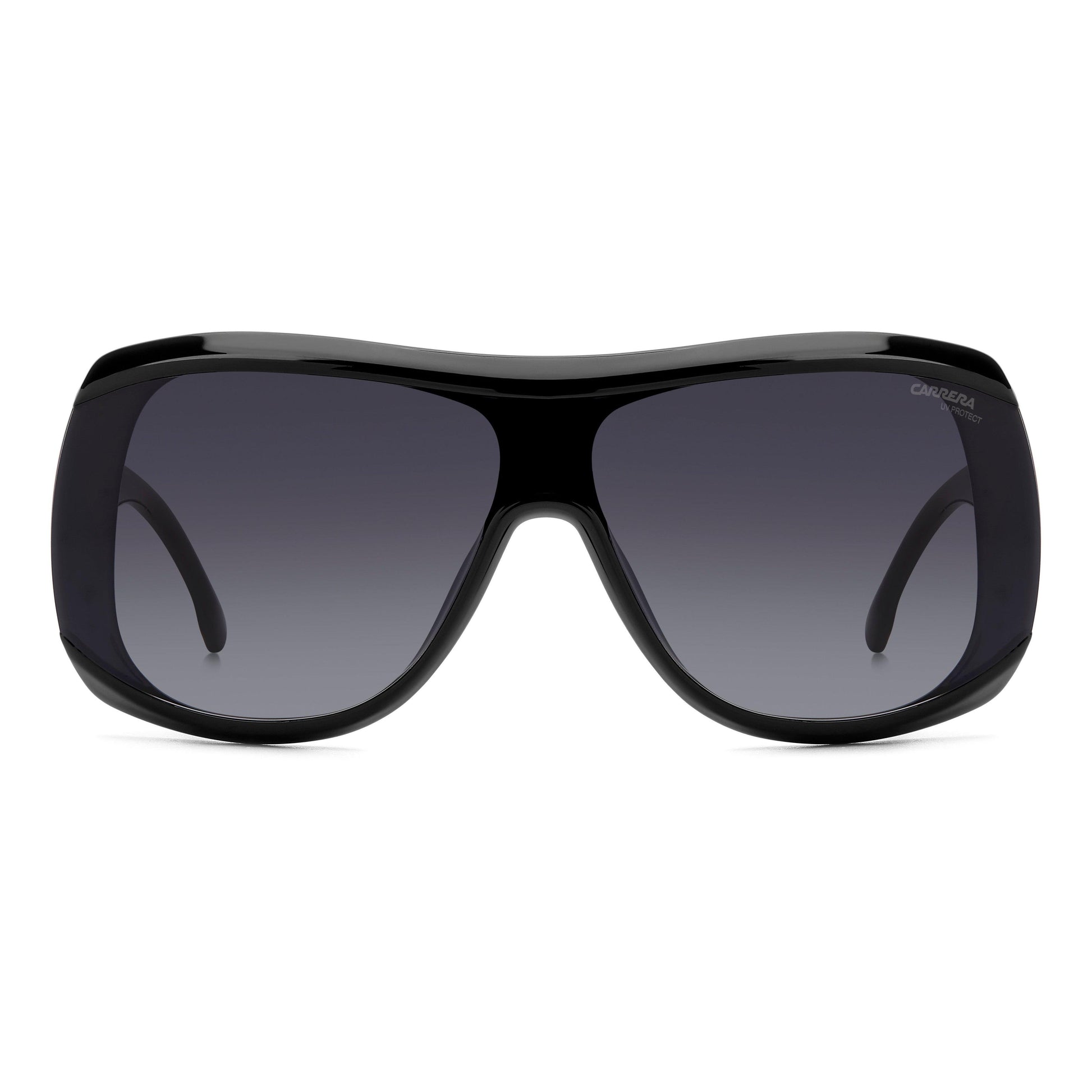 These women's sunglasses by Carrera are sure to get noticed. The single gradient lens protects the face and eyes with its shield shape, set in an polyamide frame on the top and bottom. The maxi-temples are always recognizable thanks to the embossed logo, a recognizable Carrera detail that identifies this obsession-worthy accessory.