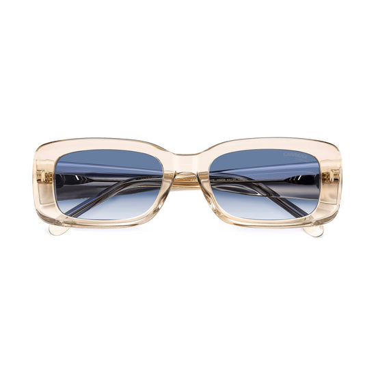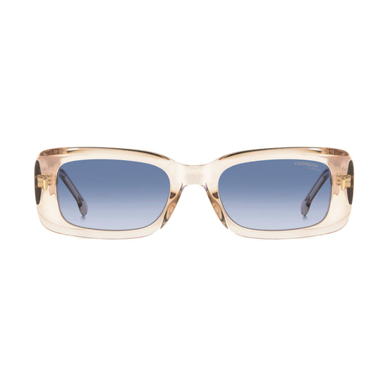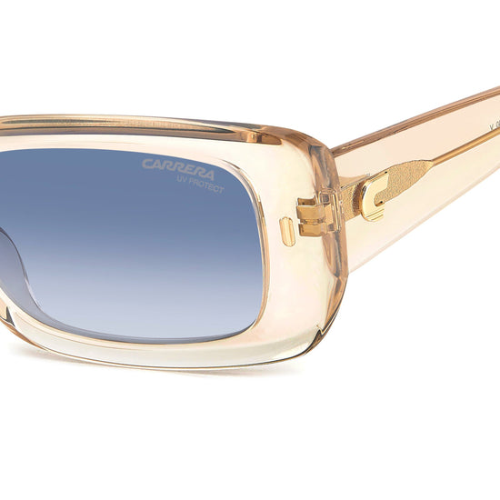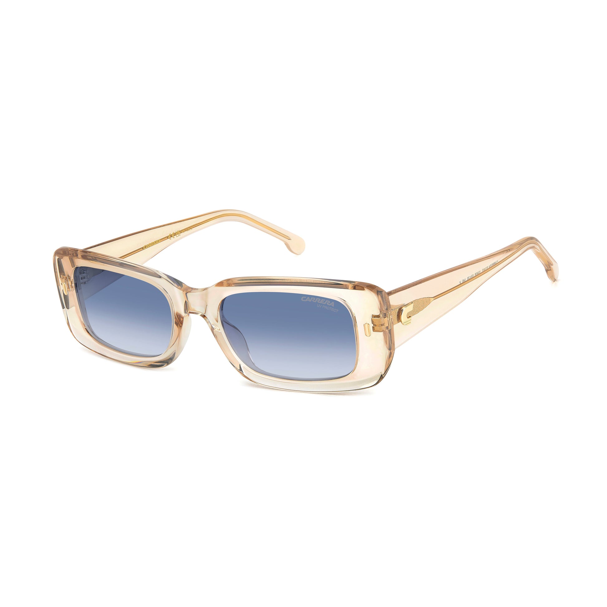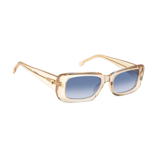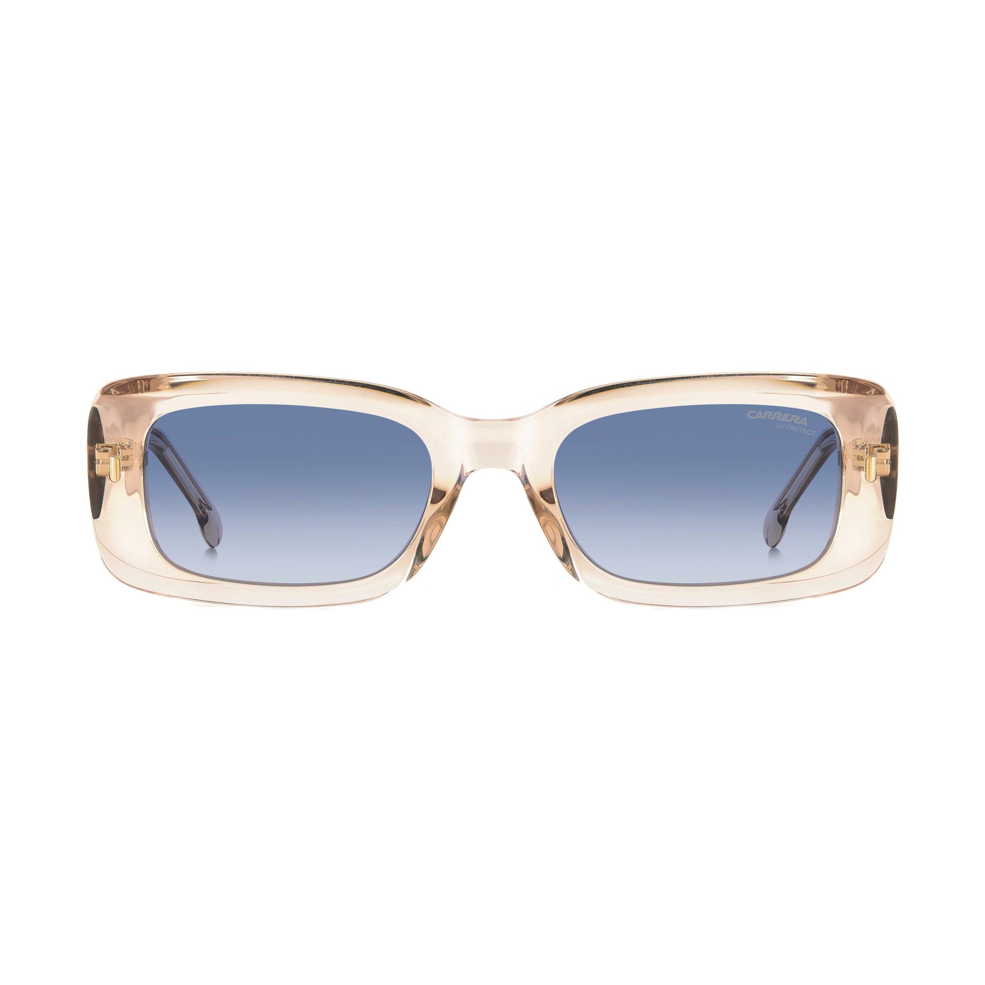 The rectangular shape of these women’s sunglasses by Carrera is sure to get noticed. On that note, the acetate structure features bold outlines, lit up by the elegant rivet on the front and the embossed Carrera ‘C’ on the temples. The frames can be fitted with prescription sun lenses, and the look comes in transparent, multi-layer and colourful Havana versions.