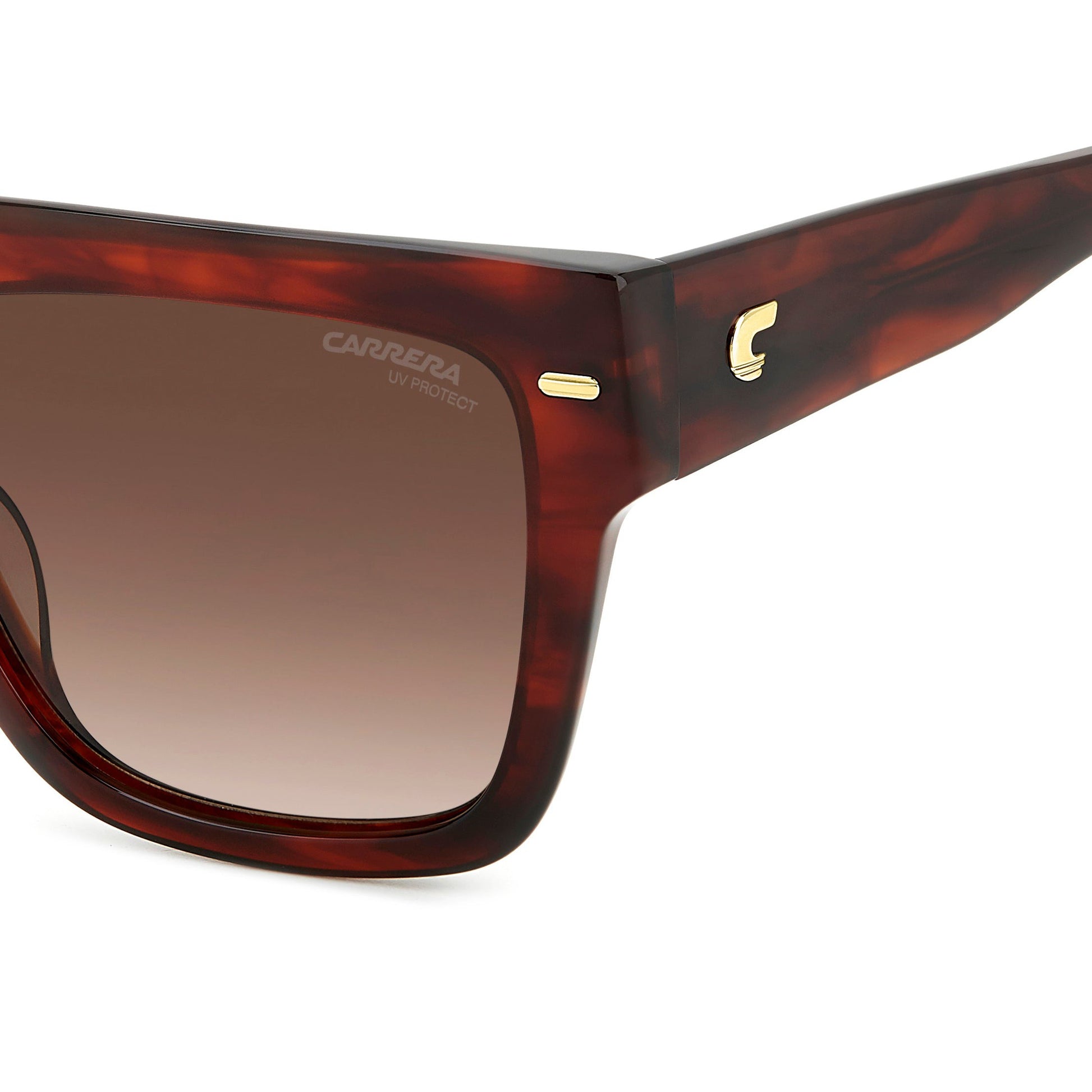 Dedicated to women who love to stand out, these sunglasses add a bold note even to feminine outfits. Carrera's unmistakable design takes shape in acetate, with prominent proportions and metal details, such as the front rivet and the ‘C’ on the temples. Fit the frames with prescription lenses and they're perfect to wear on any occasion.