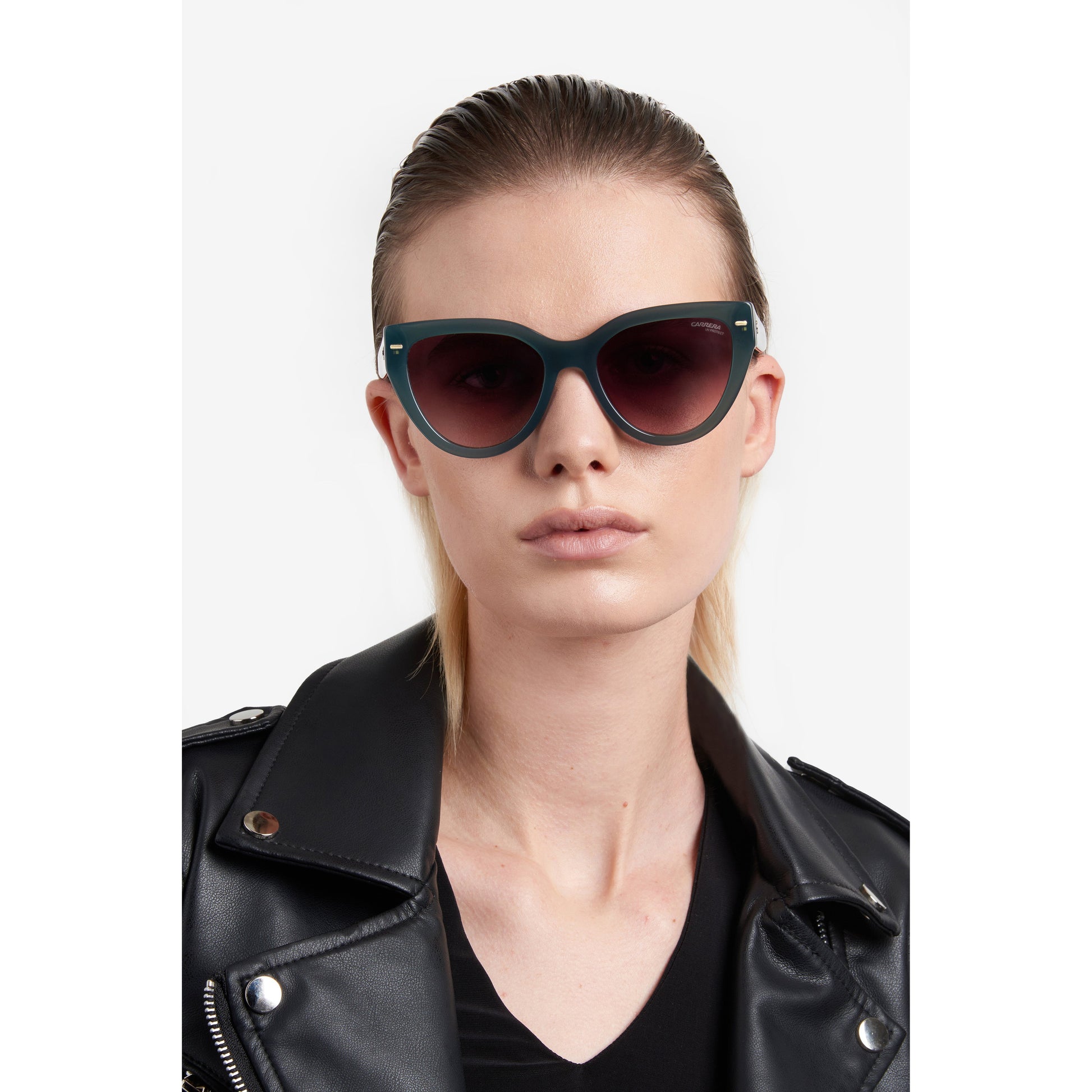 Carrera updates the most elegant eyewear shape, the cat eye, with these boldly proportioned sunglasses. Metal details shimmer on the acetate frames like small gems, including the frontal rivets and the iconic ‘C’ in relief on each temple. The gradient sun lenses, which are prescription-friendly, protect the eyes and face.