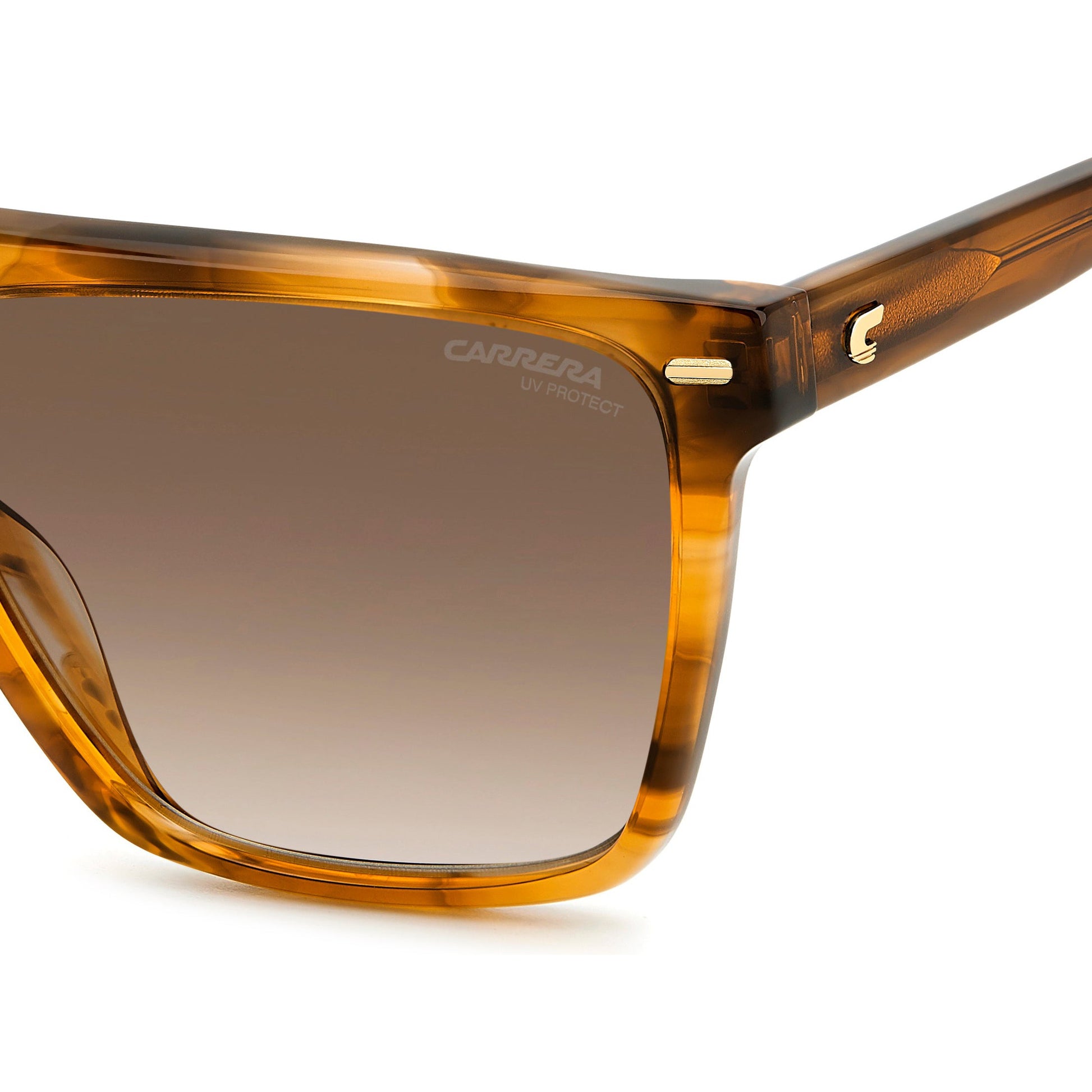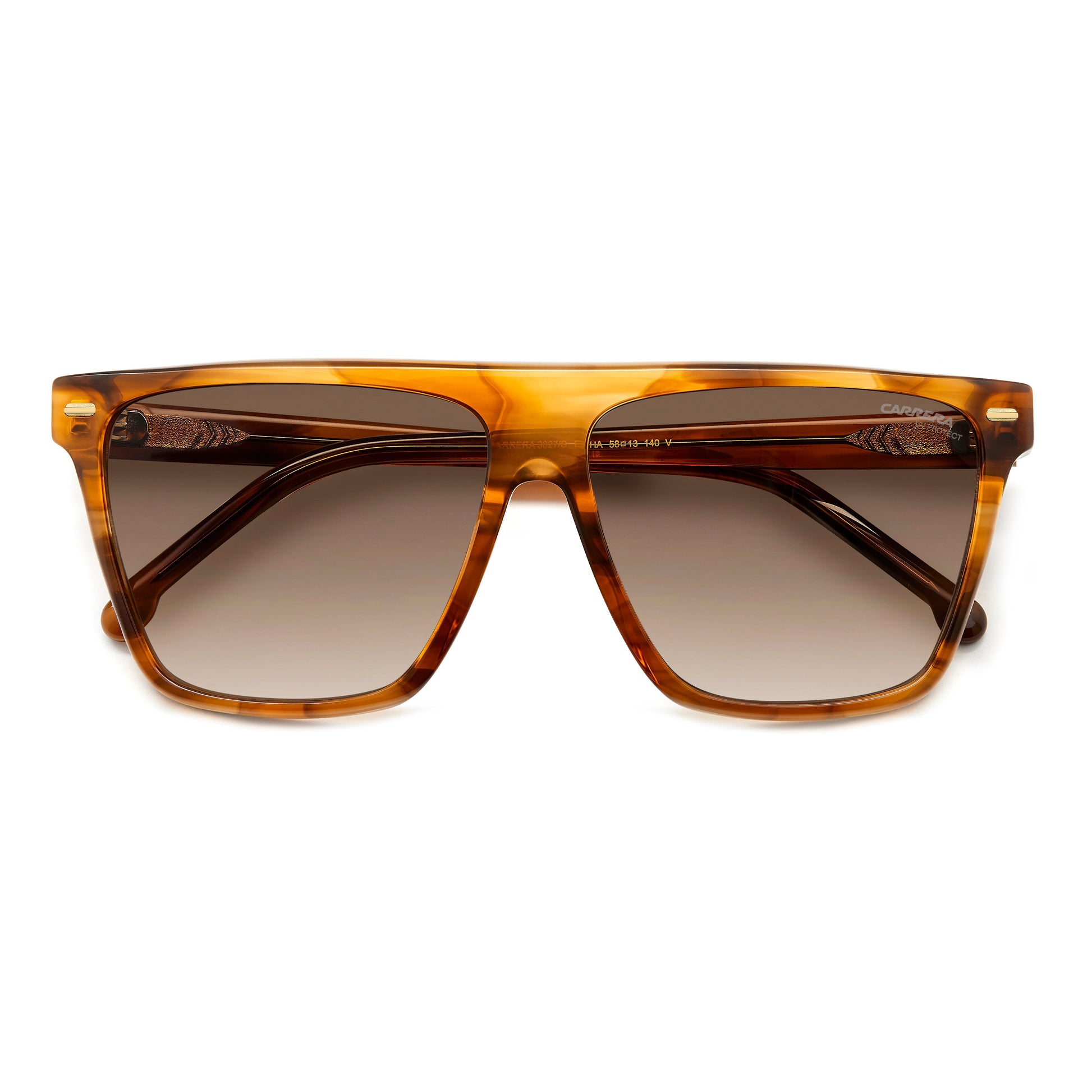 Sunglasses for women with the flat topline that Carrera is known for. A fresh take on the iconic style of the brand, these glasses are dedicated to bold fashionistas. Made of acetate, they're trimmed by golden rivets and an embossed logo-jewel on the temples. They’re a pleasure to wear thanks to the slender, lightweight frames and the option to fit them with prescription sun lenses. They also come in a version with mirrored lenses.