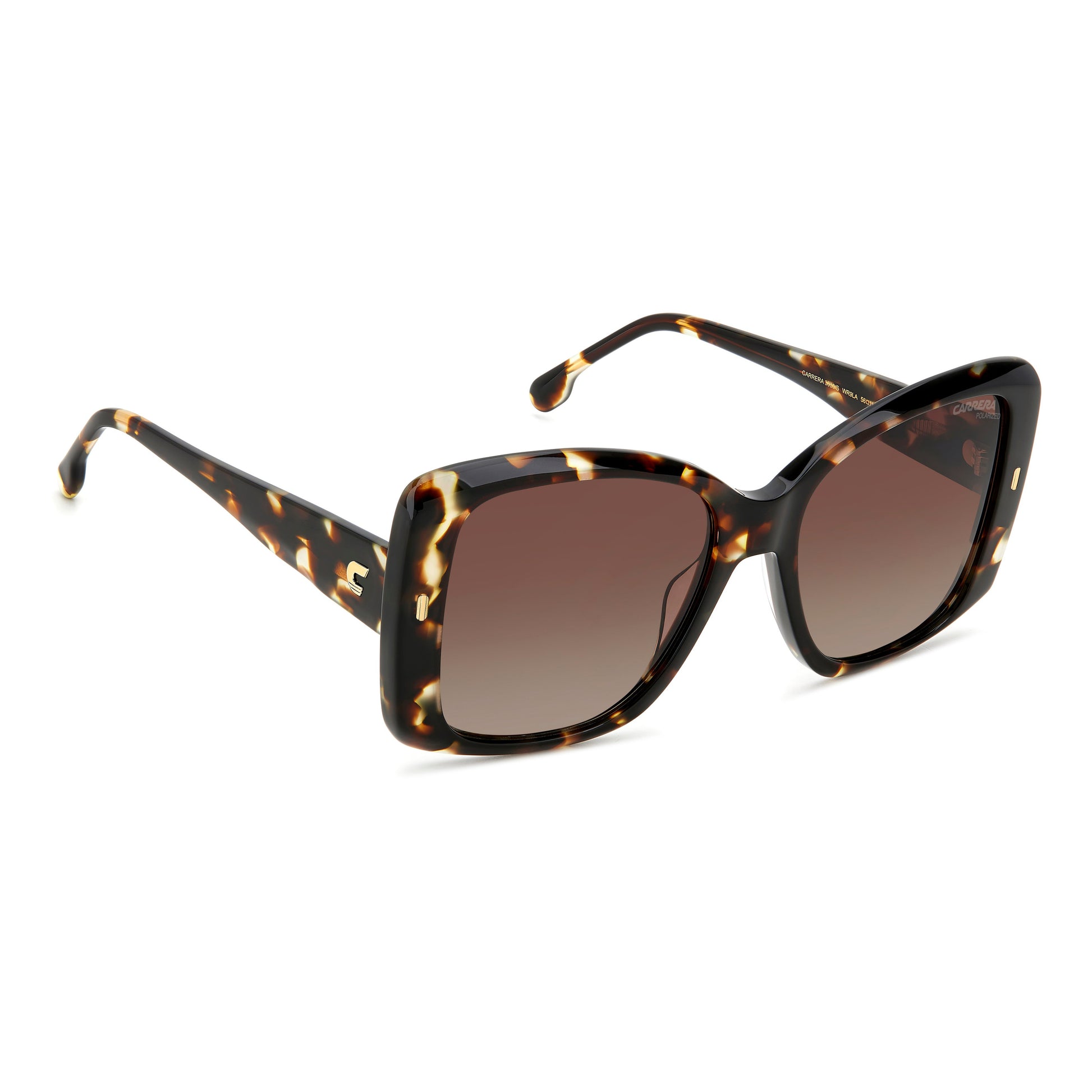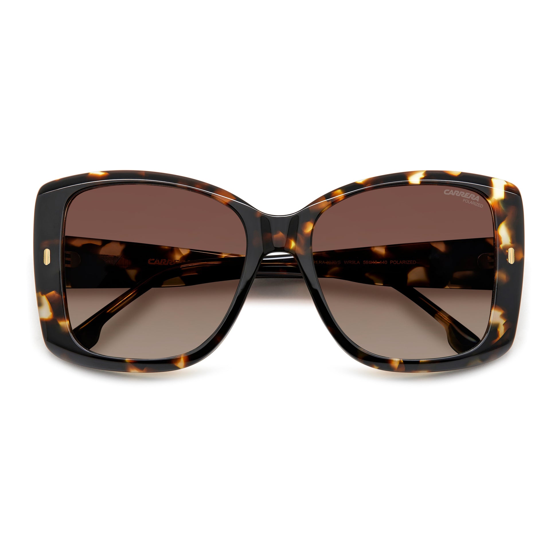 More than simple sunglasses, this Carrera look is a personal style statement. The butterfly shape is sophisticated, characterised by bold proportions that are in-line with the latest trends. The acetate structure is brightened by metal inserts, such as the rivets on the front and the embossed ‘C’ on the temples. These frames can be fitted with prescription lenses, and some versions come with polarized lenses.