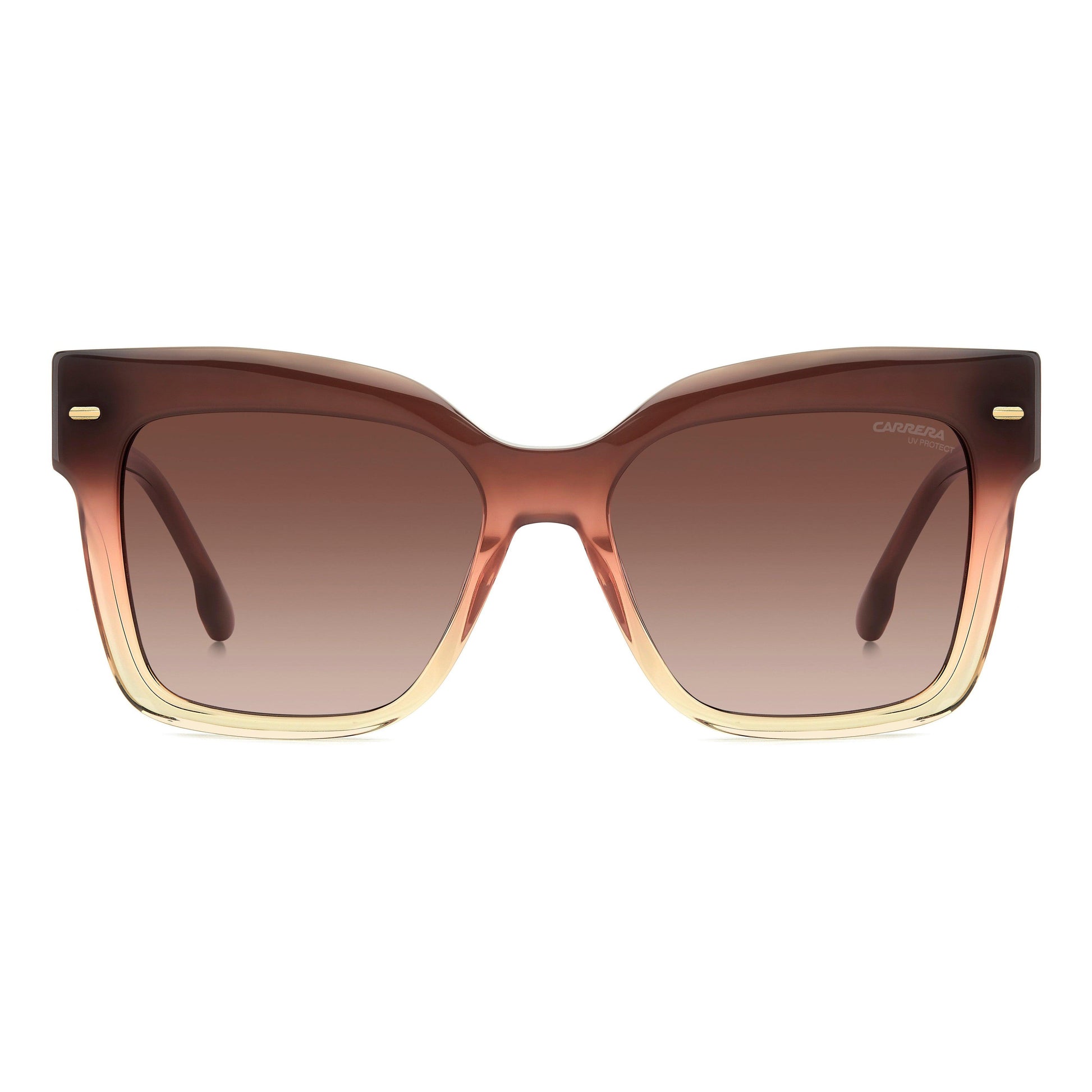 These Carrera sunglasses for women are an ode to refinement, constructed in acetate and characterised by maxi proportions. The sculpted profiles of the front are noteworthy, and the embossed metal ‘C’ on the temples is distinct. Carrera offers this style in transparent versions, or a version with a colour-gradient front. When fitted with prescription lenses, these glasses can be worn on every occasion; or, for a diva-ready look, mirrored lenses are a sure bet.