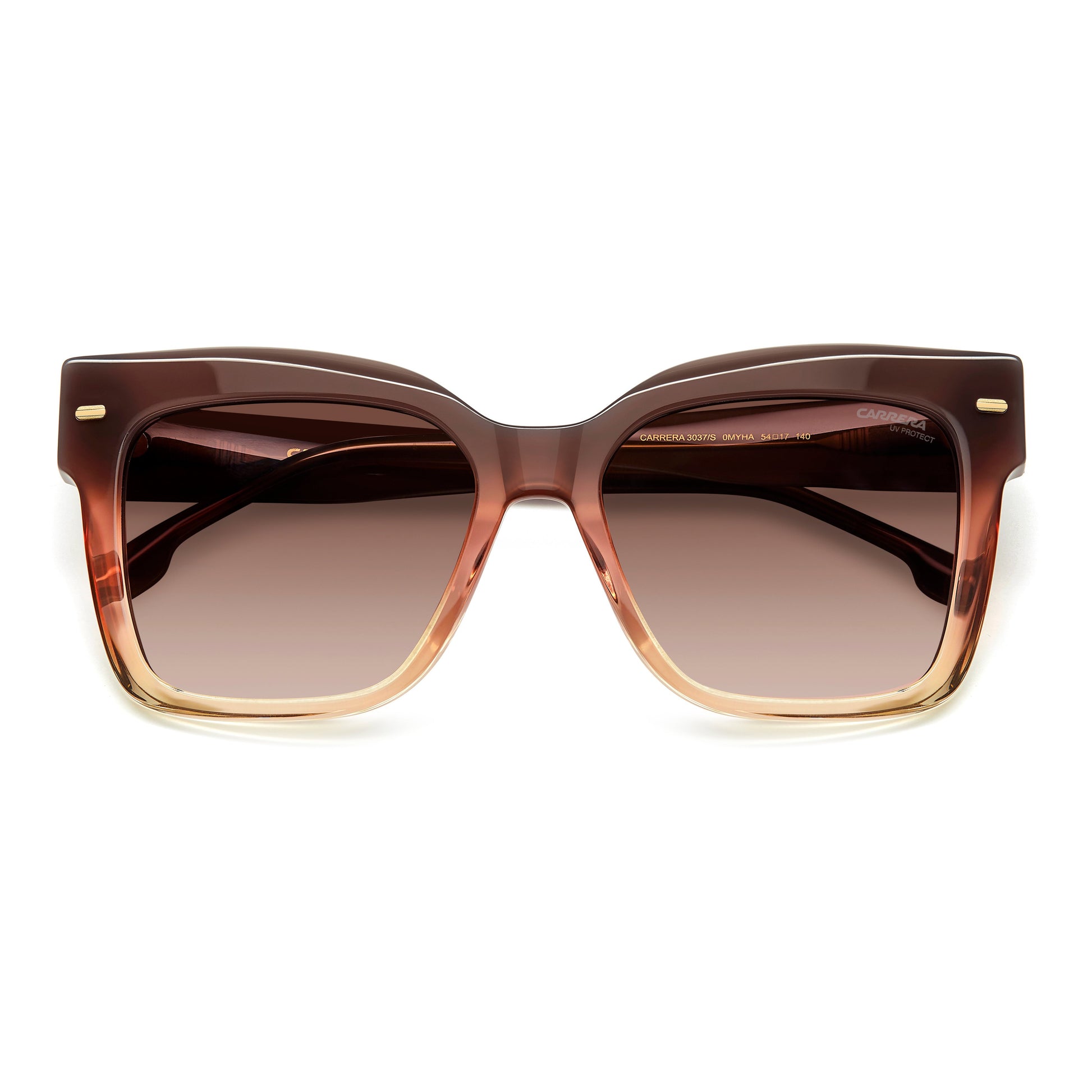 These Carrera sunglasses for women are an ode to refinement, constructed in acetate and characterised by maxi proportions. The sculpted profiles of the front are noteworthy, and the embossed metal ‘C’ on the temples is distinct. Carrera offers this style in transparent versions, or a version with a colour-gradient front. When fitted with prescription lenses, these glasses can be worn on every occasion; or, for a diva-ready look, mirrored lenses are a sure bet.