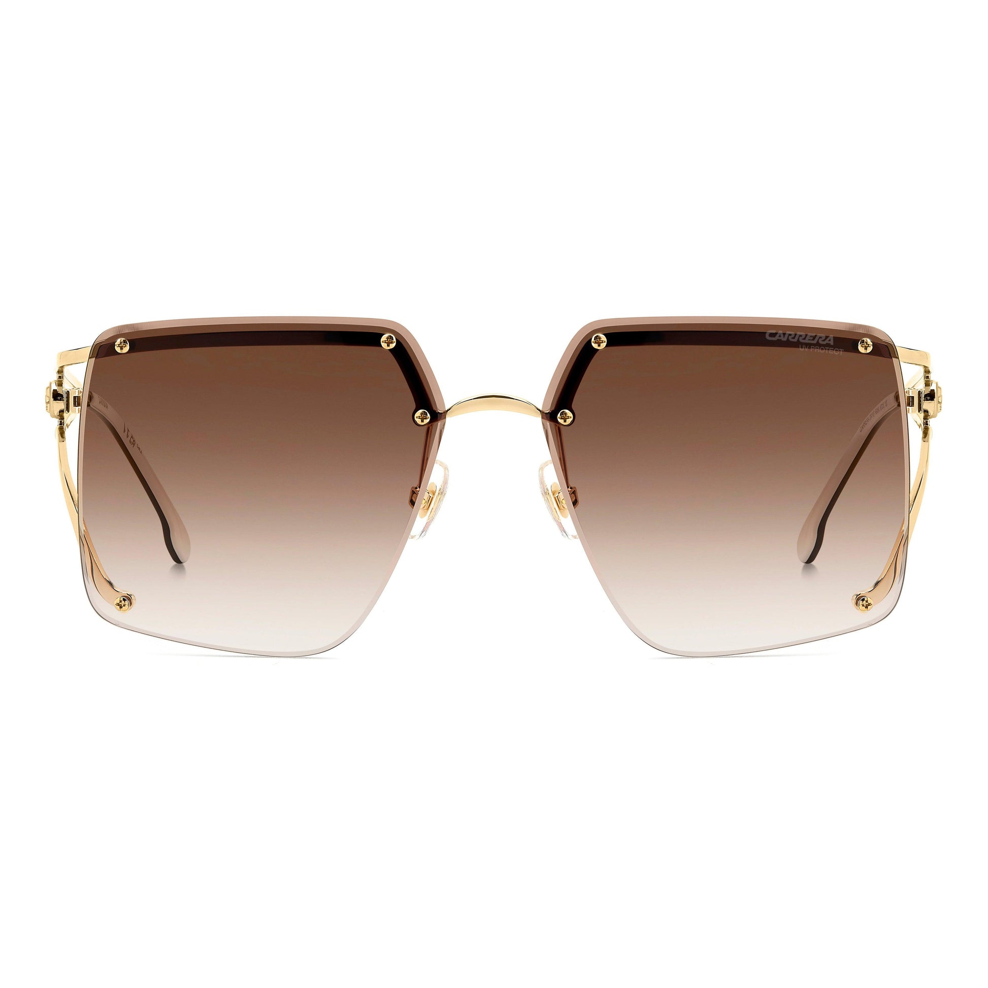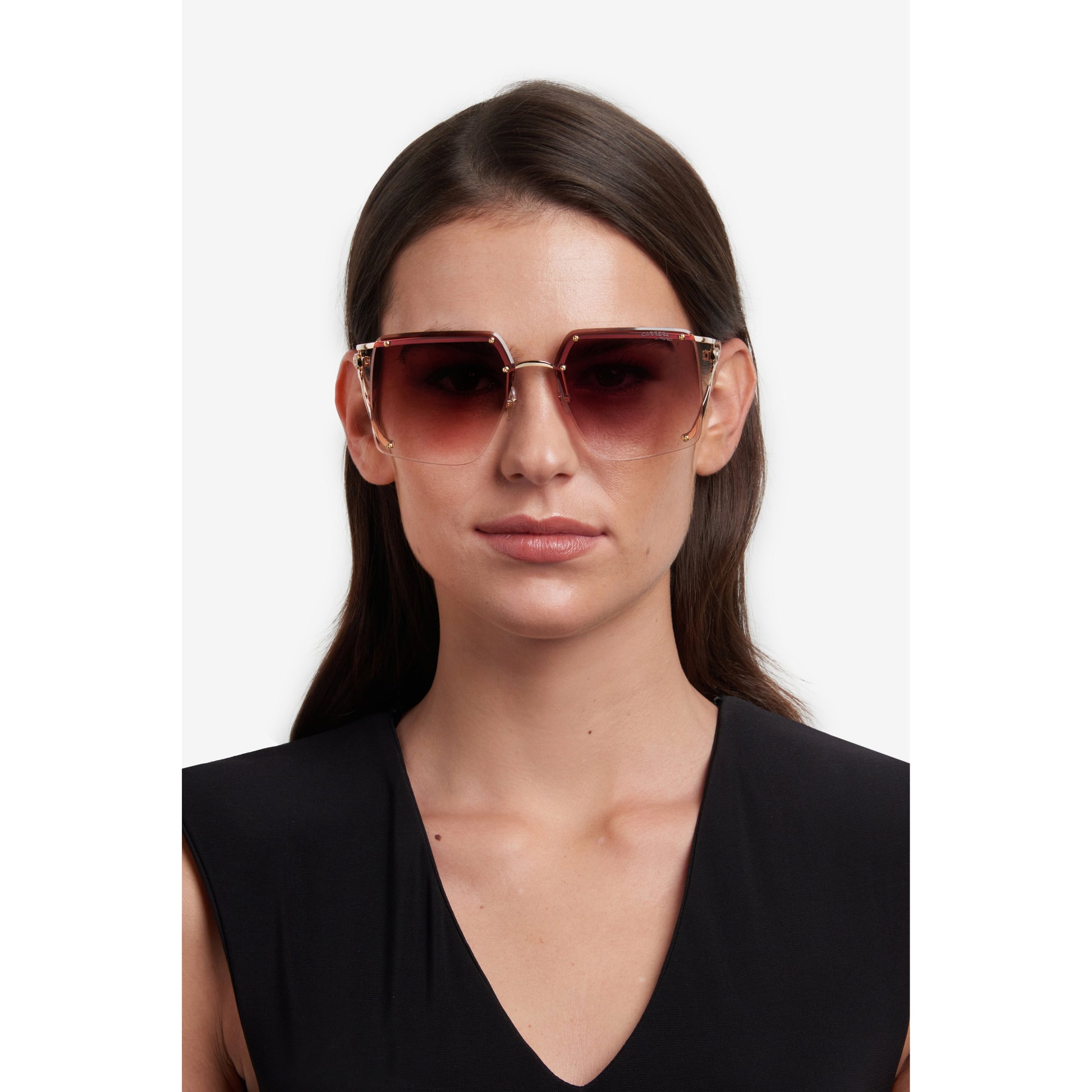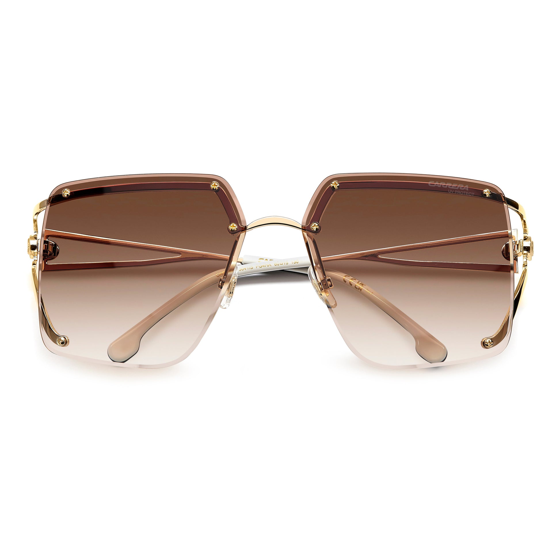 Carrera connoisseurs will adore these women's sunglasses. The rimless front, with colour-gradient lenses, is undeniably hypnotic, the star of any look. No detail has been left to chance: the screws that connect to the bridge and the temples are functional and decorative. The forked temple design, embellished by a suspended logo with an embossed ‘C’, is unforgettable. Sophisticated hues complete this unmistakably Carrera accessory.