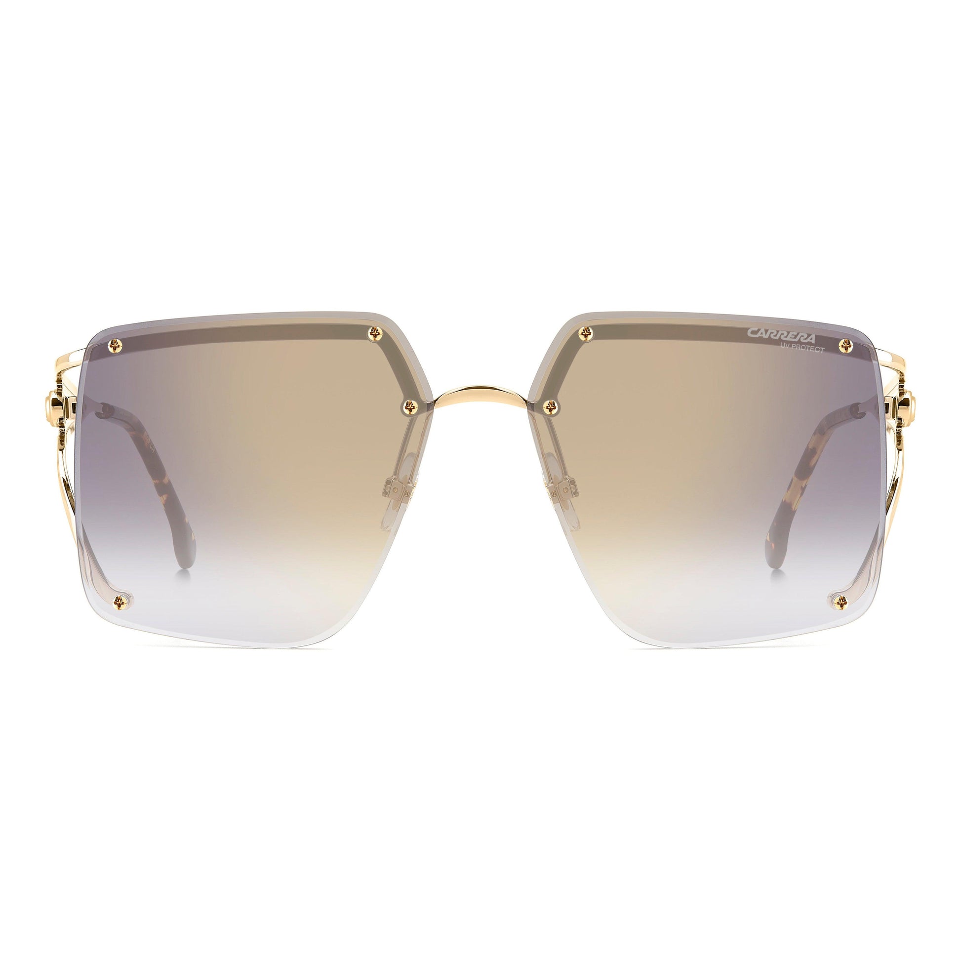 Carrera connoisseurs will adore these women's sunglasses. The rimless front, with colour-gradient lenses, is undeniably hypnotic, the star of any look. No detail has been left to chance: the screws that connect to the bridge and the temples are functional and decorative. The forked temple design, embellished by a suspended logo with an embossed ‘C’, is unforgettable. Sophisticated hues complete this unmistakably Carrera accessory.