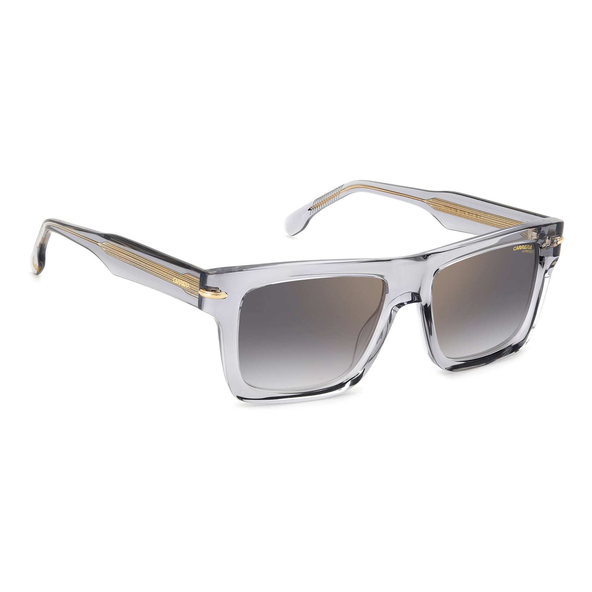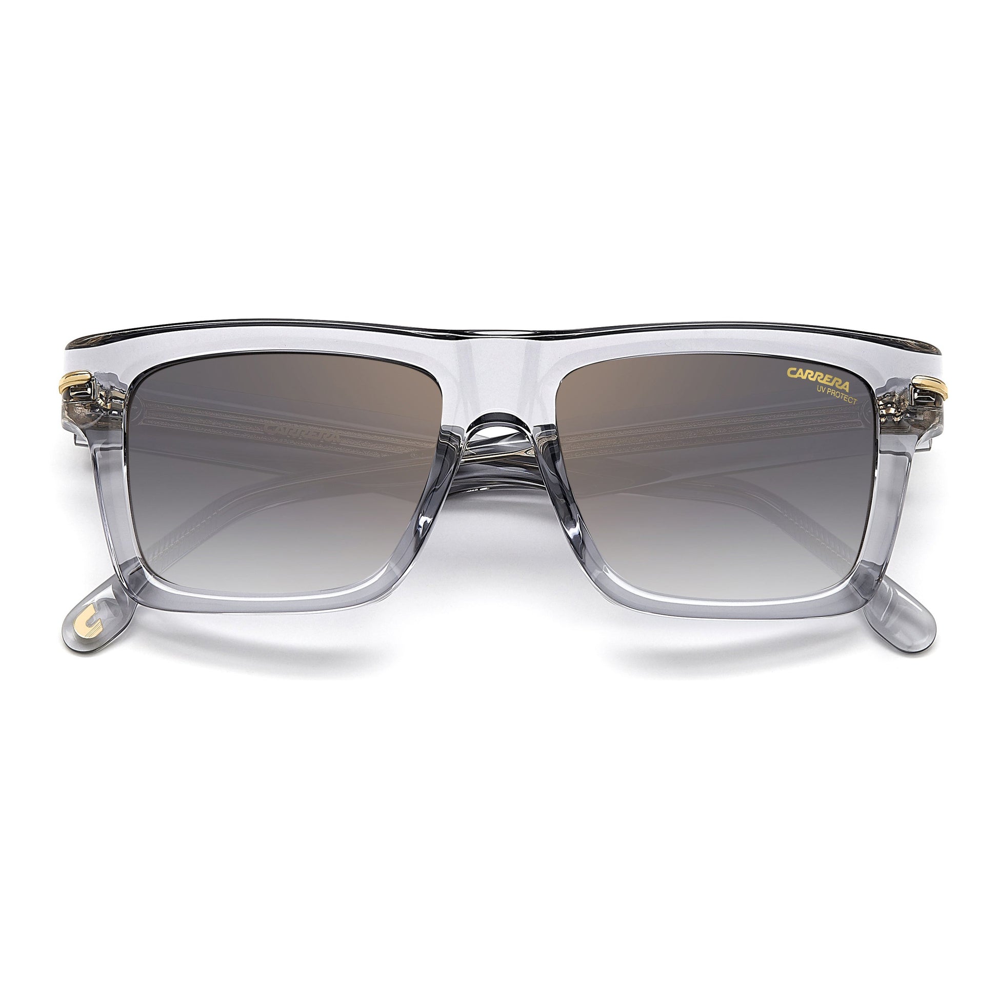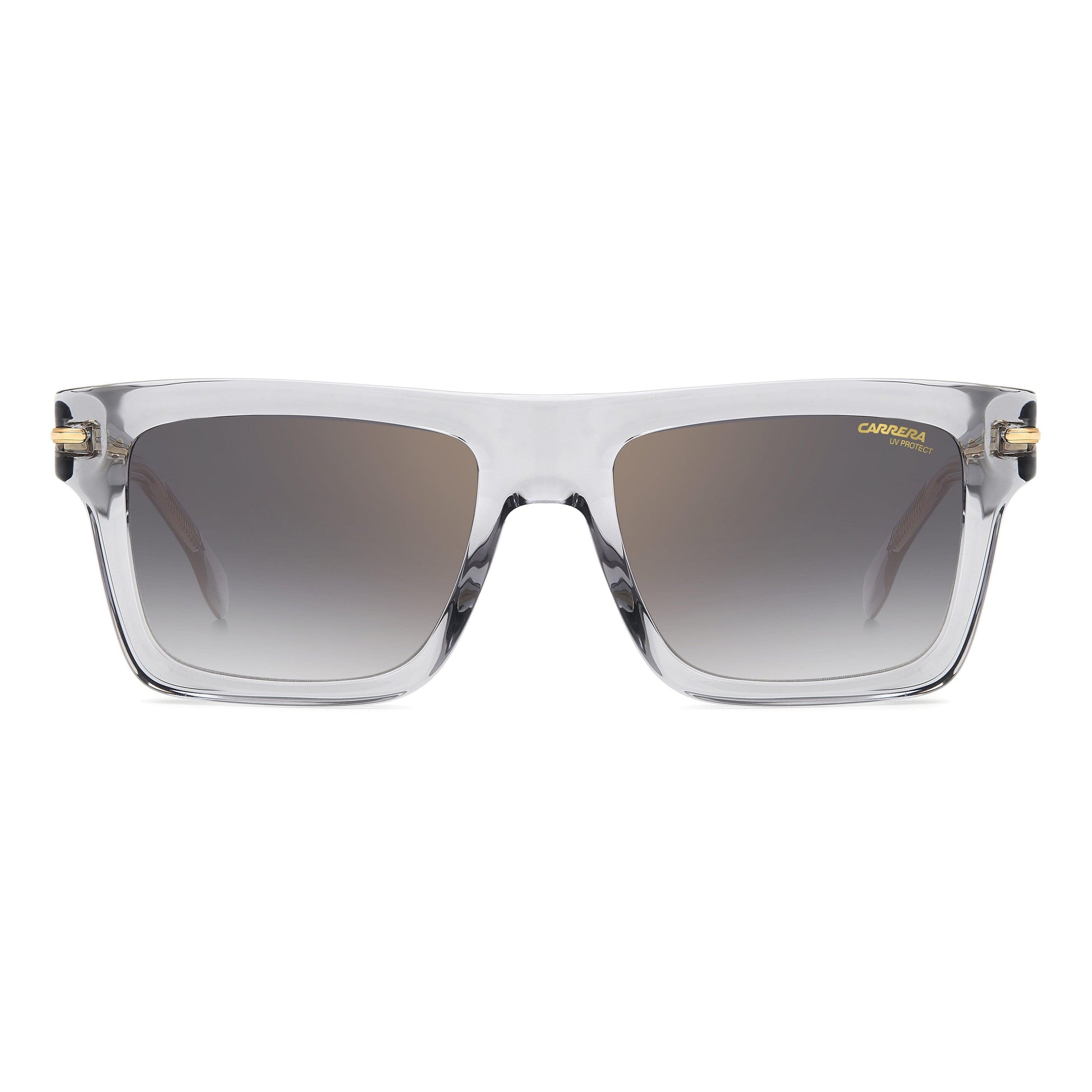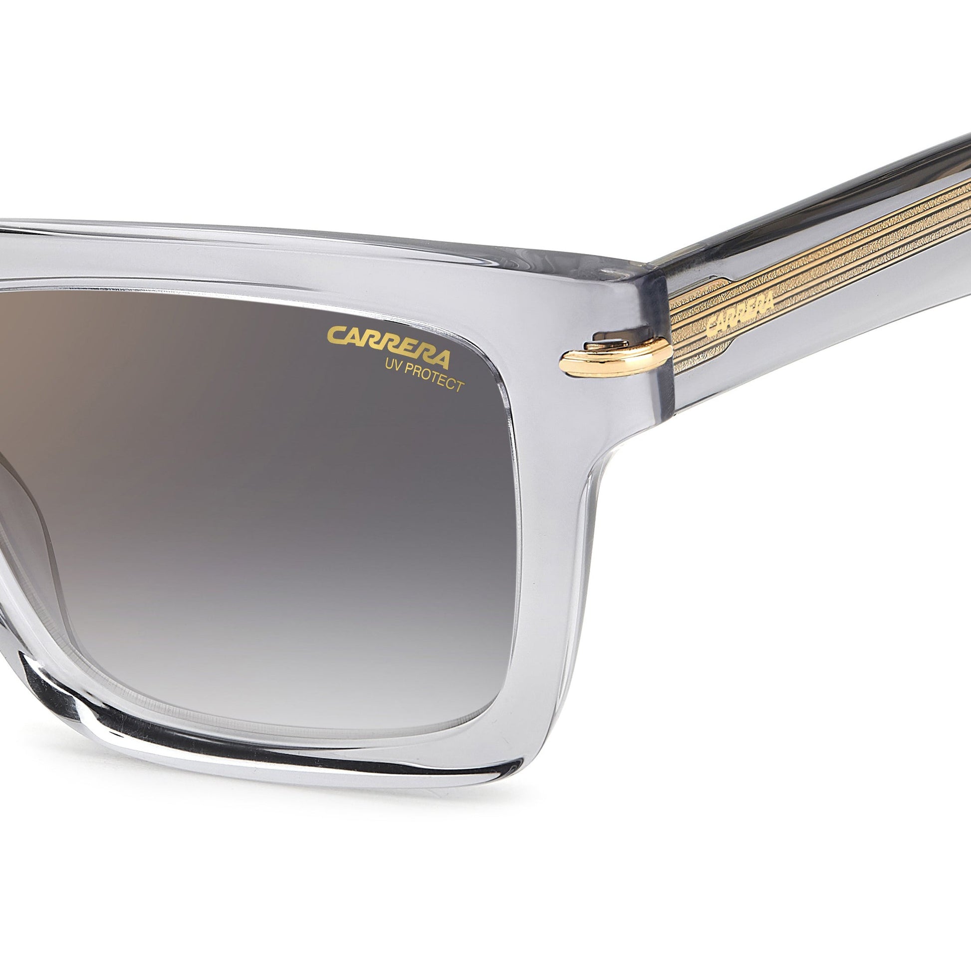 These sunglasses will be irresistible to fans of vintage aesthetics that take on unexpected shapes and bold proportions. Made entirely of acetate, they’re enriched by the metal detail with the ‘C’ logo that trims the front and signature fin temples, quintessential symbols inherited from the Carrera archive. They come in different colours and finishes, including transparent and multi-layer acetate, and are completed by gradient, mirrored or polarised lenses.
