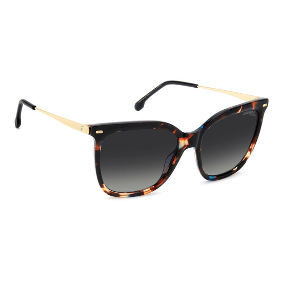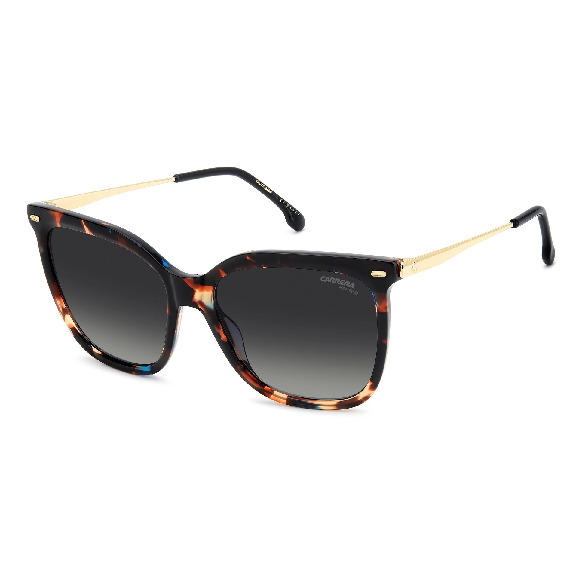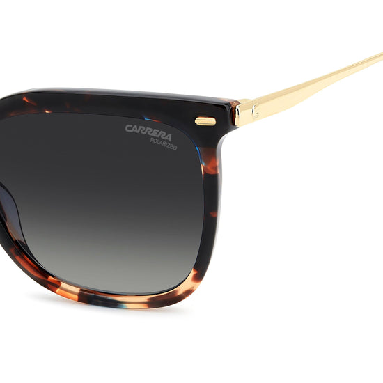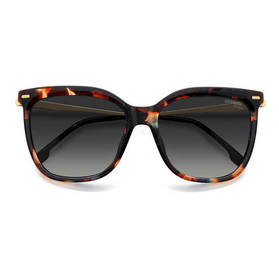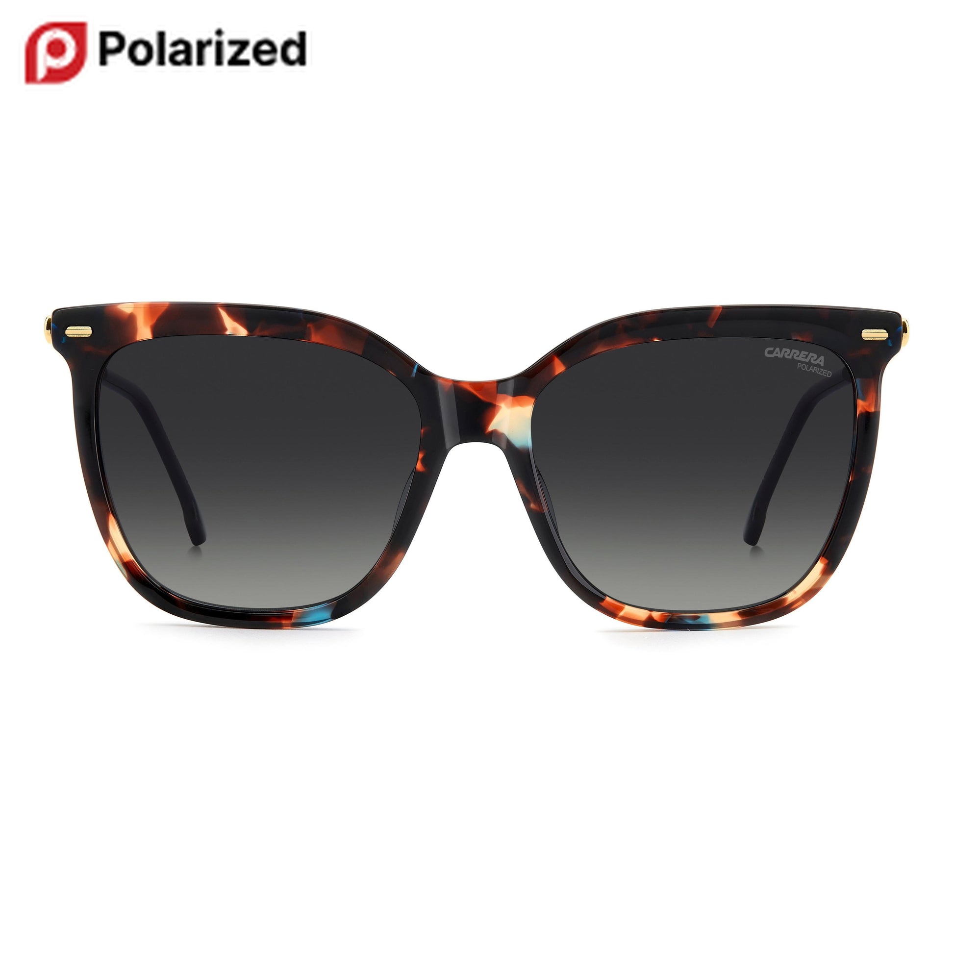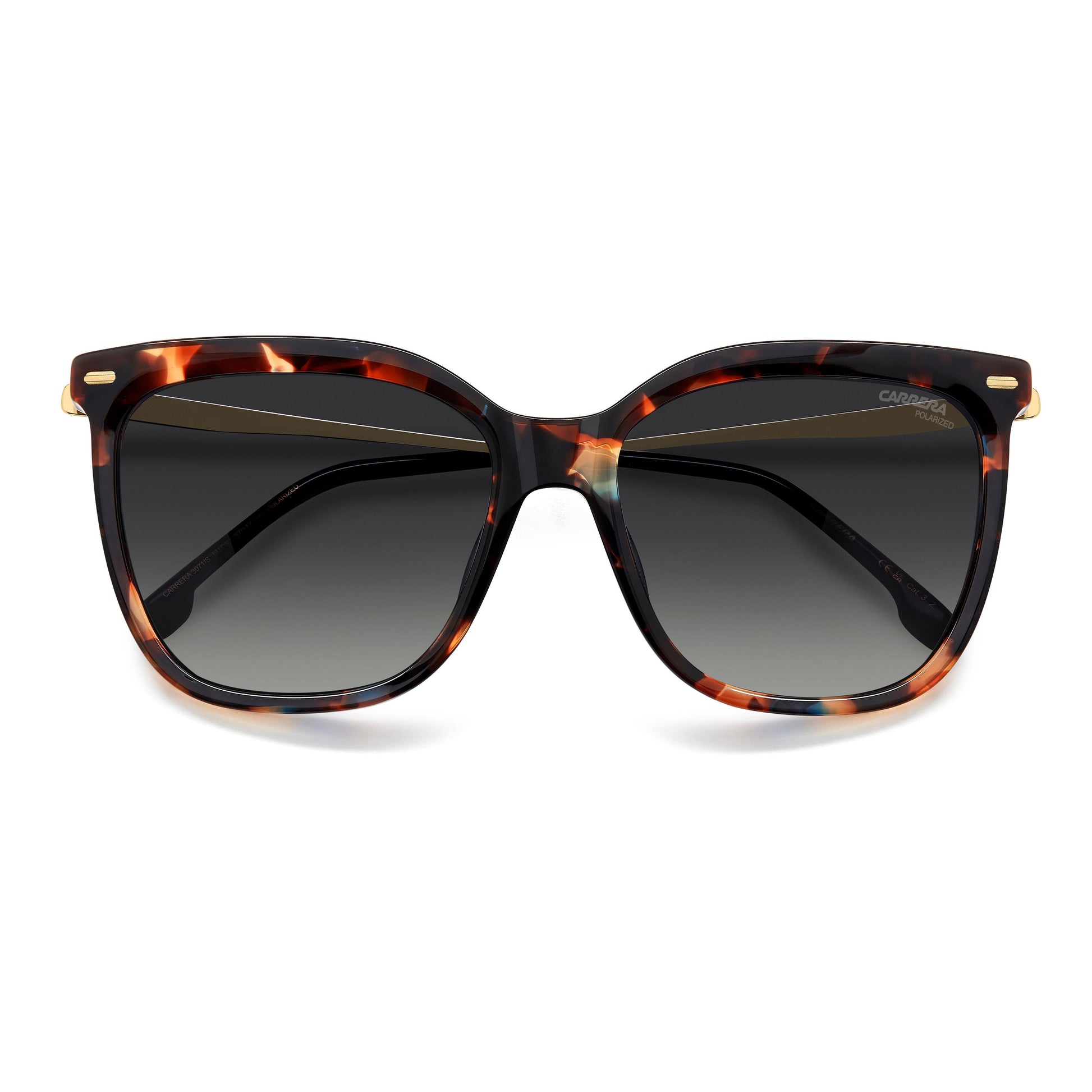 These Carrera sunglasses combine timeless style and bold design. The acetate front features clean lines with shiny metal rivets. The lightweight metal temples are finished with the iconic embossed Carrera C. The sun lenses come with gradient shading and are available in polarized or mirrored options.