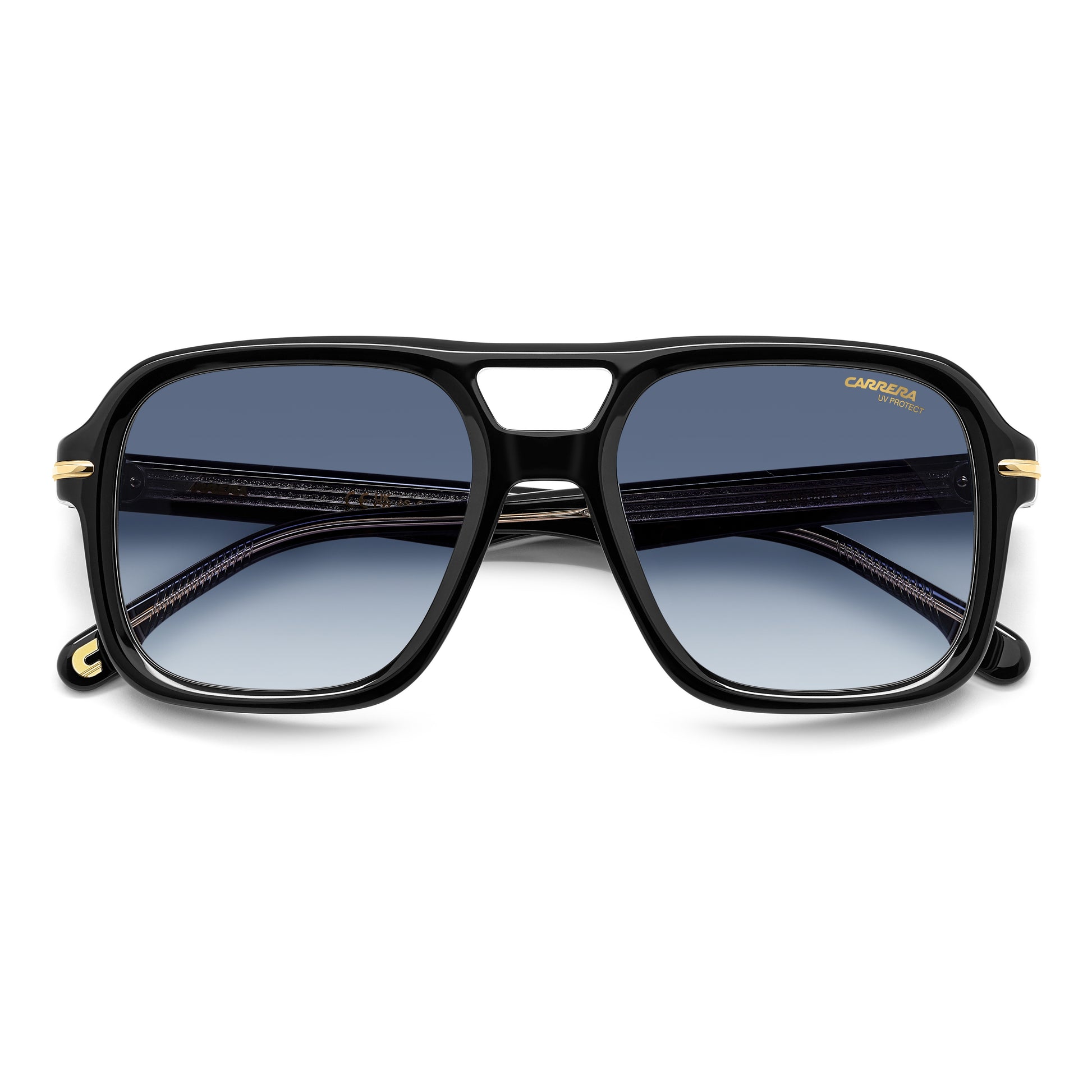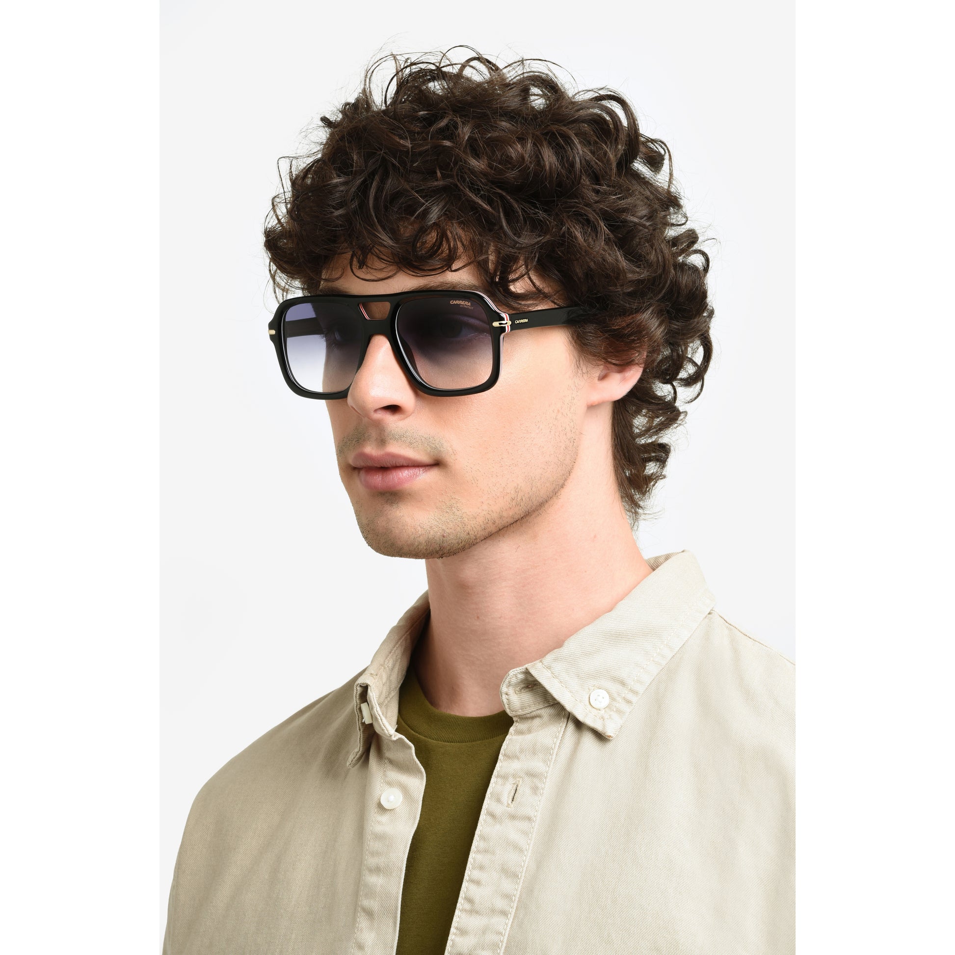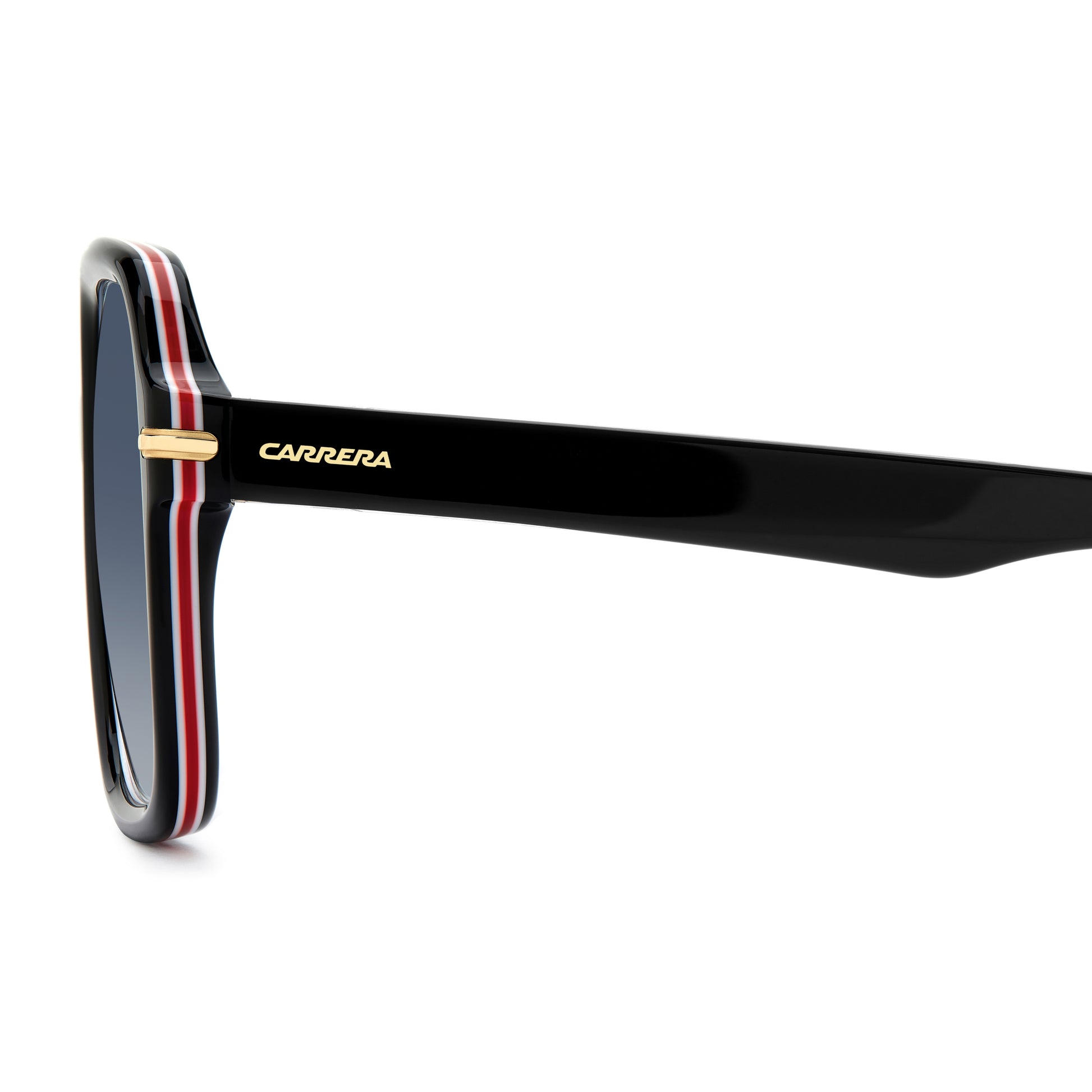 The spotlight is on these bold sunglasses with prominent, sculpted proportions. Embracing one of Carrera’s most popular styles (the double-bridge navigator), here the frames are in acetate with raised metal inserts at each side, complemented by slender temples. The colourways include a multi-layer option and transparent versions with a visible textural core. These glasses can be fitted with prescription lenses.