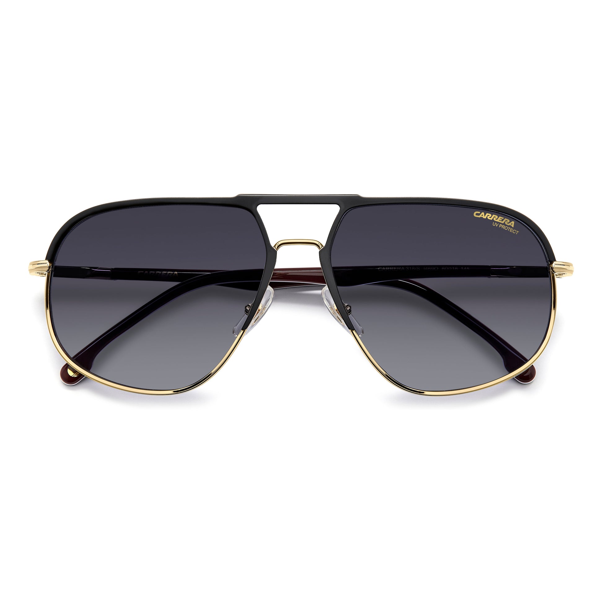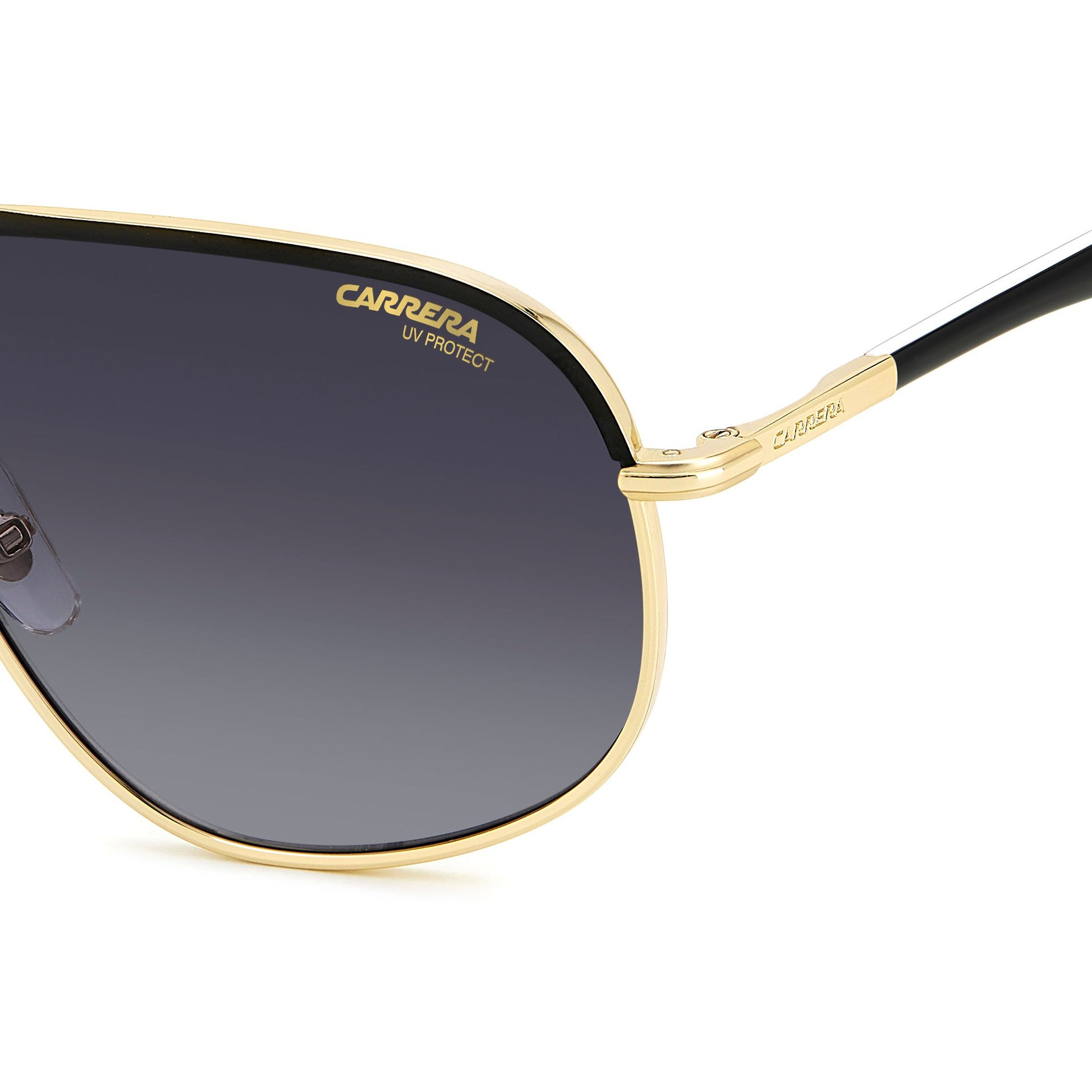 These Carrera sunglasses bring authenticity to anyone seeking an accessory that rises above passing trends. The defining pilot shape with a branded double bridge celebrates Carrera heritage, as do the fin temples with long acetate end tips (available in a multi-layer version). The sculpted 'C' element is worthy of note, at the precise point where the temple meets the frame. These glasses can hold prescription lenses, and they come in different versions: plain/two-tone front, and with polarized or ultrapolar lenses.
