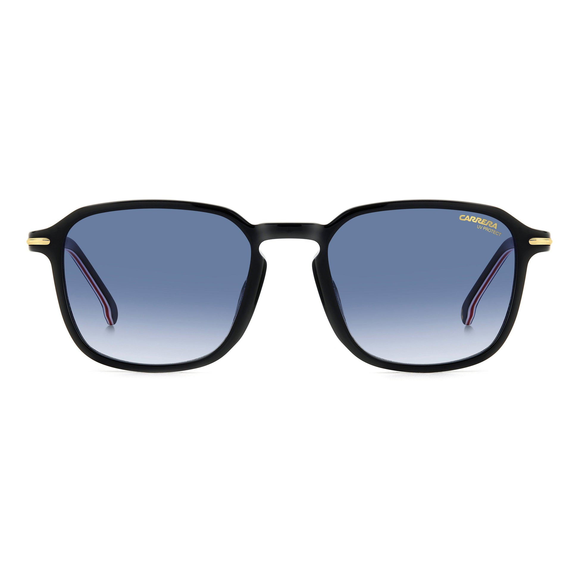 Aesthetics and practicality complement one another in these unisex sunglasses from Carrera. The front is made of lightweight acetate, and the slender outlines form square frames connected by a keyhole bridge. Even the temples are slim, sculpted into the Carrera fin. The colour palette spans from transparent to two-tone, and a multi-layer version that recreates the Carrera flag. The frames can be fitted with prescription lenses.