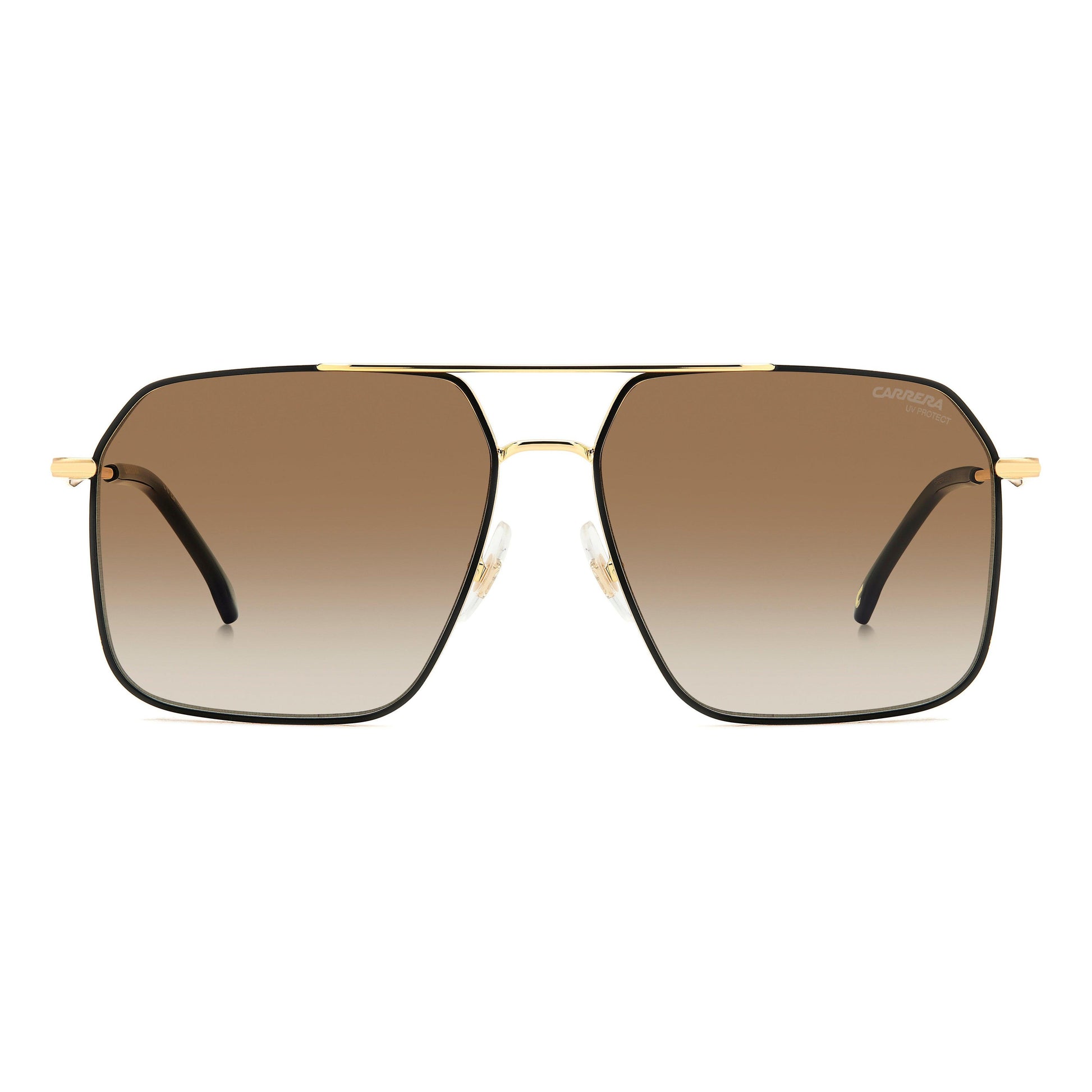 These navigator sunglasses have a double bridge, the signature detail of Carrera. They’re enviable for their lightweight versatility. The stainless steel front can be fitted with prescription lenses. The temples are also in metal, rendered even more comfortable thanks to the acetate end tips. The entire look is defined by slender lines, yet these frames are durable enough to stand up to everyday use. The sun lenses ensure crisp vision, even more highly performing in the polarized and ultra-polar versions.