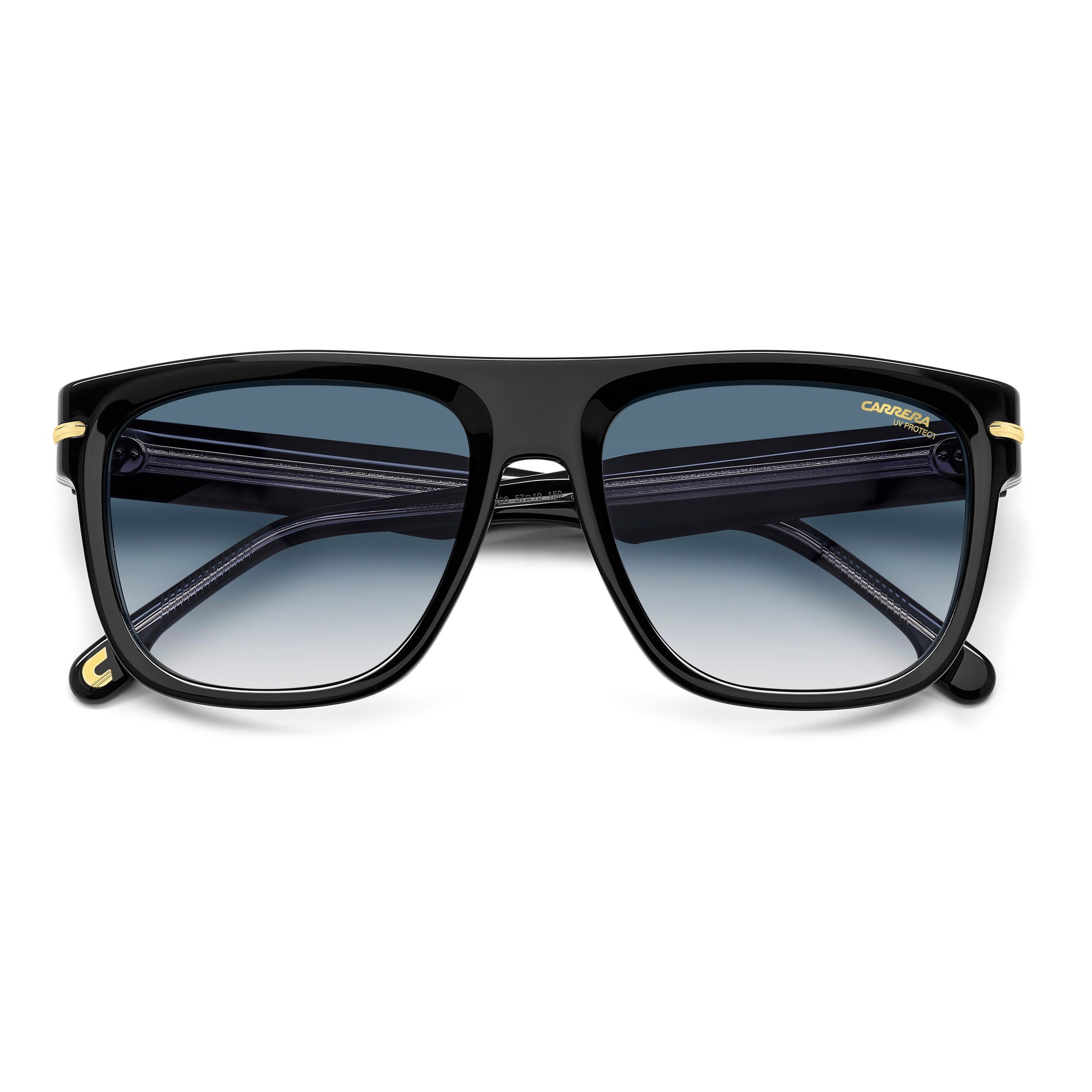 These acetate sunglasses by Carrera are sure to get noticed, with their ample proportions and bold details. Their resolute character is further highlighted by the flat top and the metal inserts. And why not venture a bit with the multi-layer version in the Carrera colours, or the versions with a visible core on the inner temples? This style can be fitted with prescription lenses. It also comes in a polarized version.