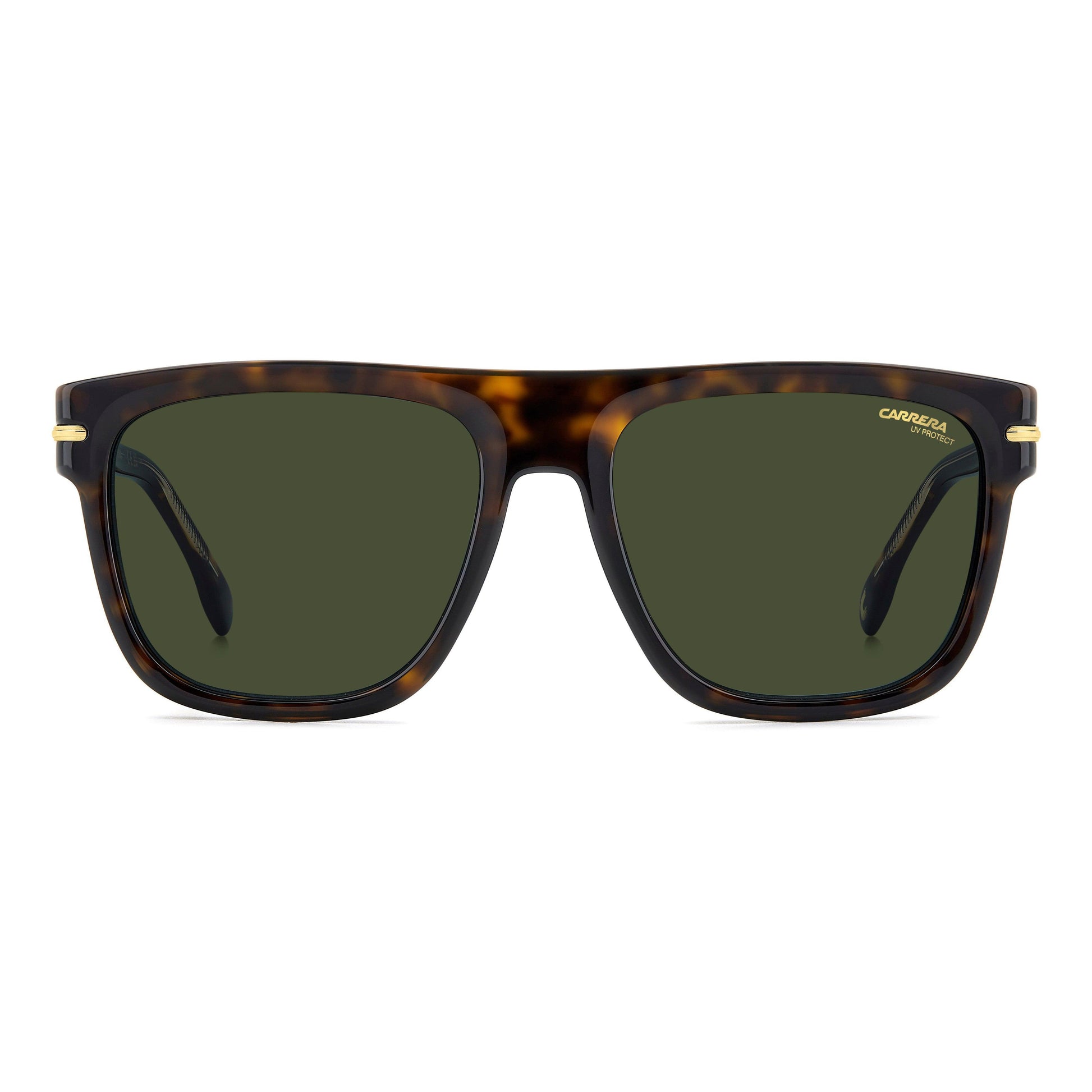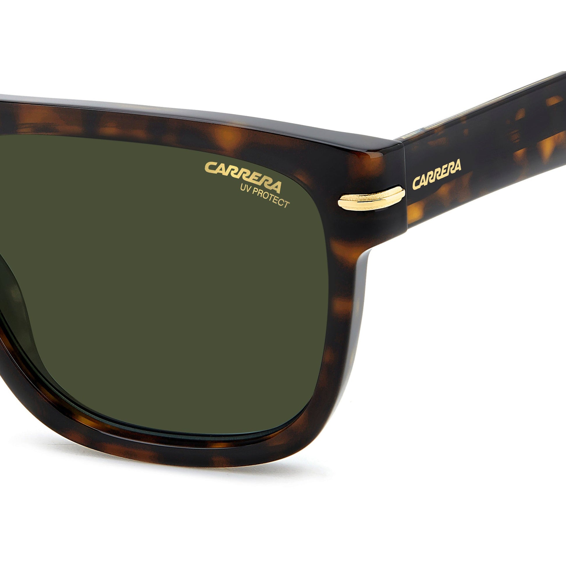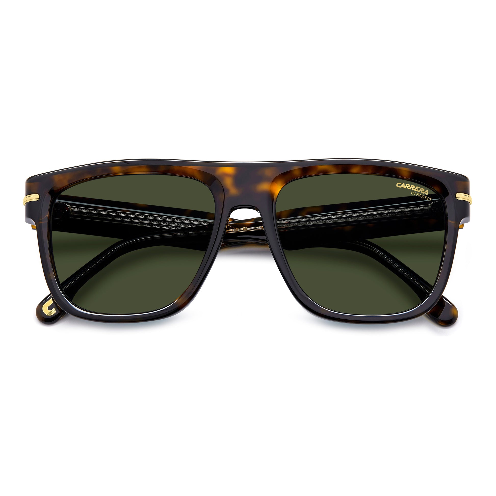 These acetate sunglasses by Carrera are sure to get noticed, with their ample proportions and bold details. Their resolute character is further highlighted by the flat top and the metal inserts. And why not venture a bit with the multi-layer version in the Carrera colours, or the versions with a visible core on the inner temples? This style can be fitted with prescription lenses. It also comes in a polarized version.