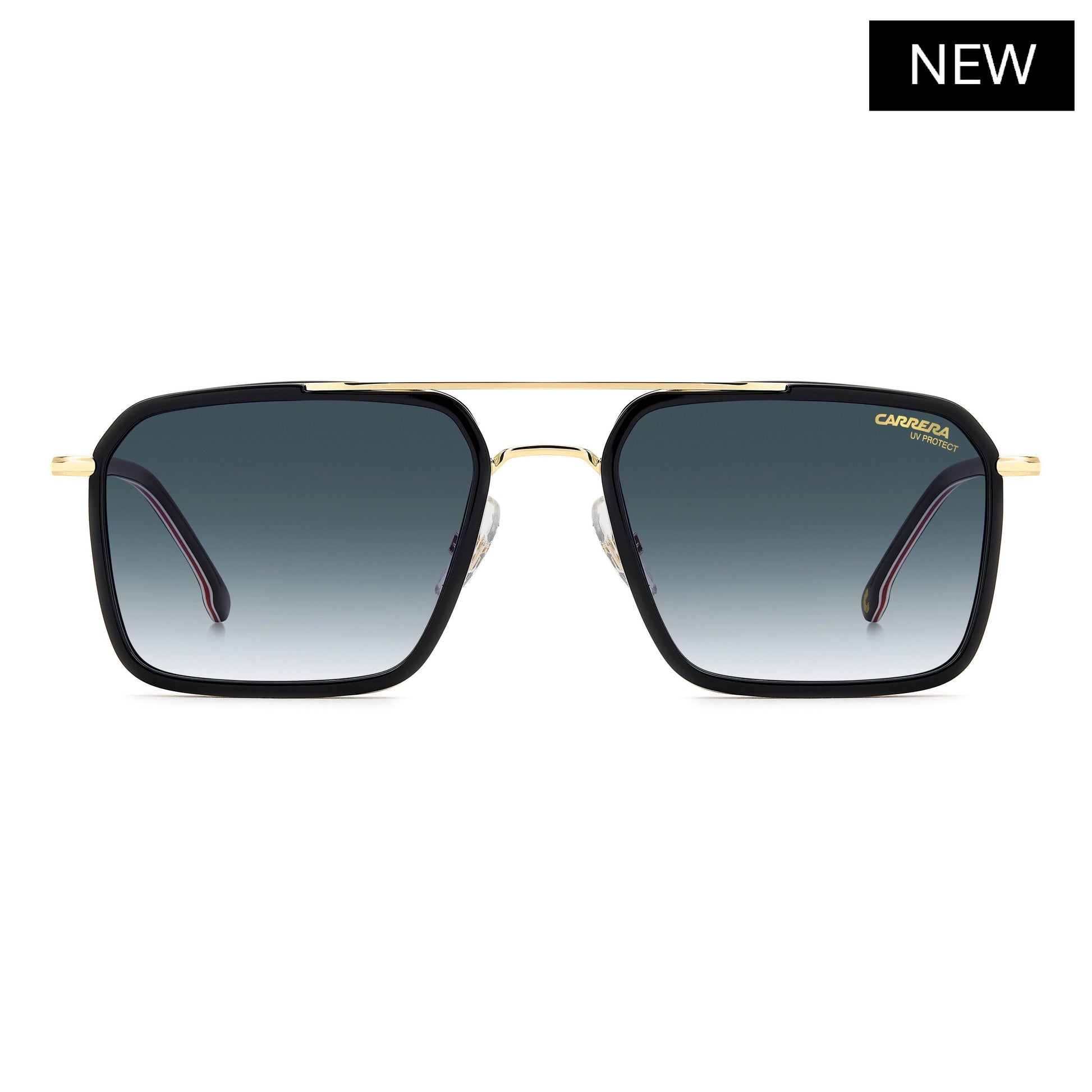 These Carrera sunglasses blend a traditional shape with a modern attitude. The stainless steel structure meets acetate profiles on the front and temples in a captivating material mix that balances their essential design. This style comes with flex hinges and adjustable nose pads. Choose between gradient, mirrored, ultrapolar or photochromic lenses.