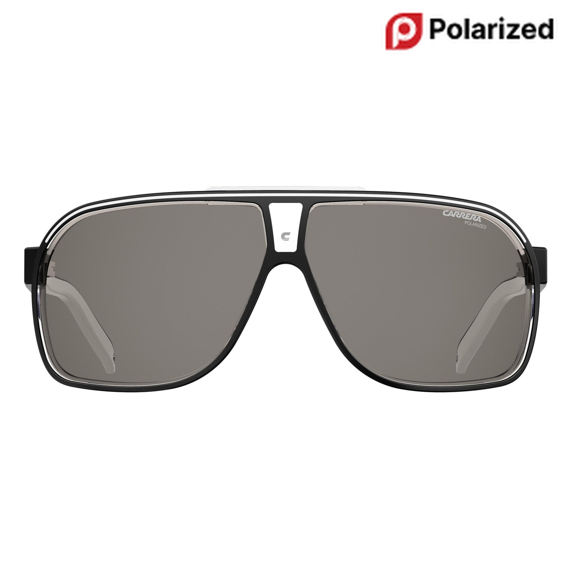 A unique fusion of refined craftsmanship, relaxed urban aesthetic and edgy details, the Grand Prix 2 sunglasses are back in the spotligh. The sizeable, regular-cut silhouette is crafted from double-layered acetate, rendered here in the season’s new colorway: a modern mix of black and clear acetate. The double nose bridge and subtly tinted lenses add just the right amount of style cred to this perennial pair, while Carrera’s unmistakable branding — the 'C' monogram front and center and a metal logo plaque on each side — complete this design with a truly iconic touch.