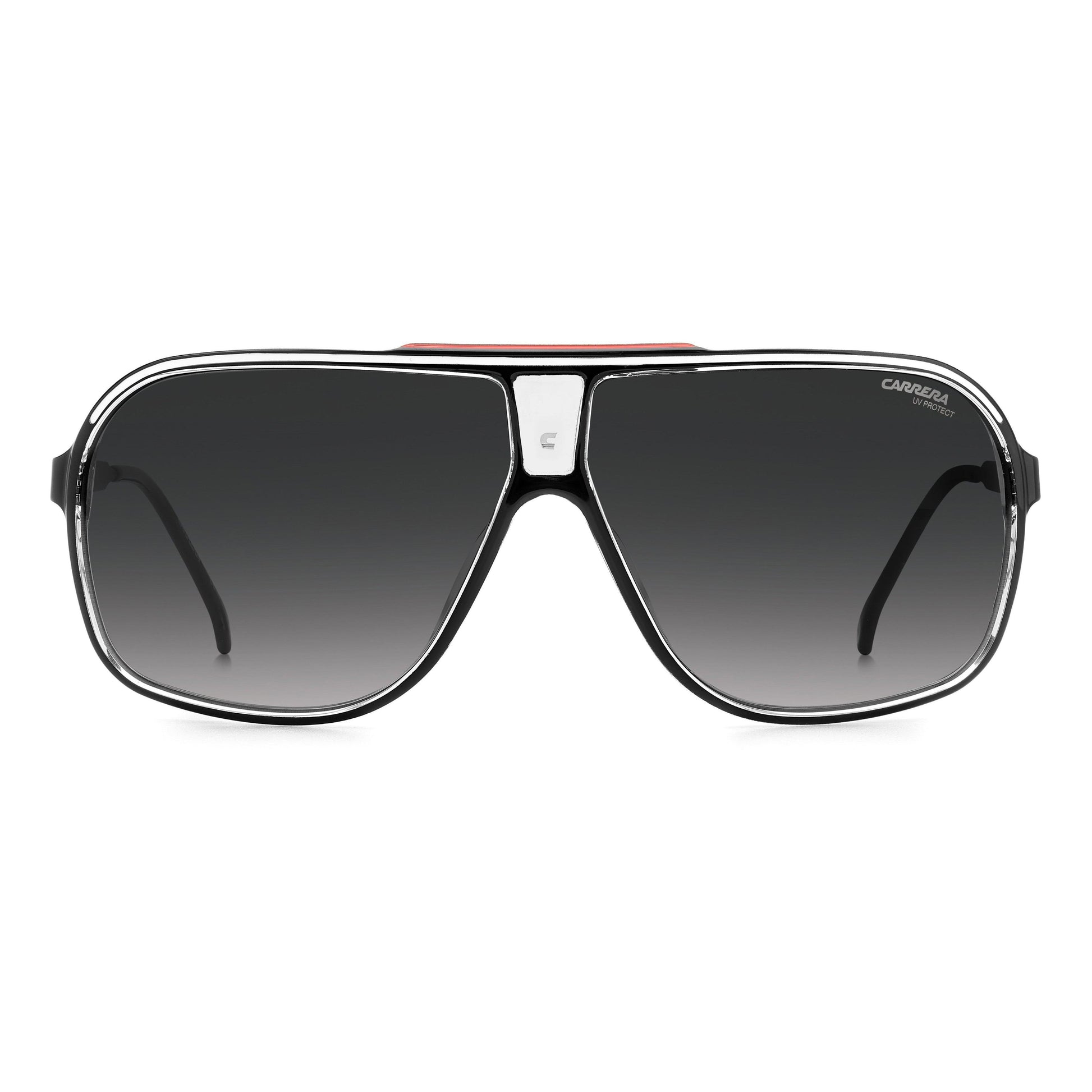 These men’s sunglasses are sure to satisfy all Carrera fans. The oversized rectangular frames are sculpted from lightweight injection-molded polyamide and paired with metal temples – notice the brand’s trademark Flag stripe that adds an athletic, retro touch. The transparent front is decorated with the unmistakable C and topped with an enhanced brow bar. Available in a range of colorways inspired by Carrera’s history, including a polarized option.