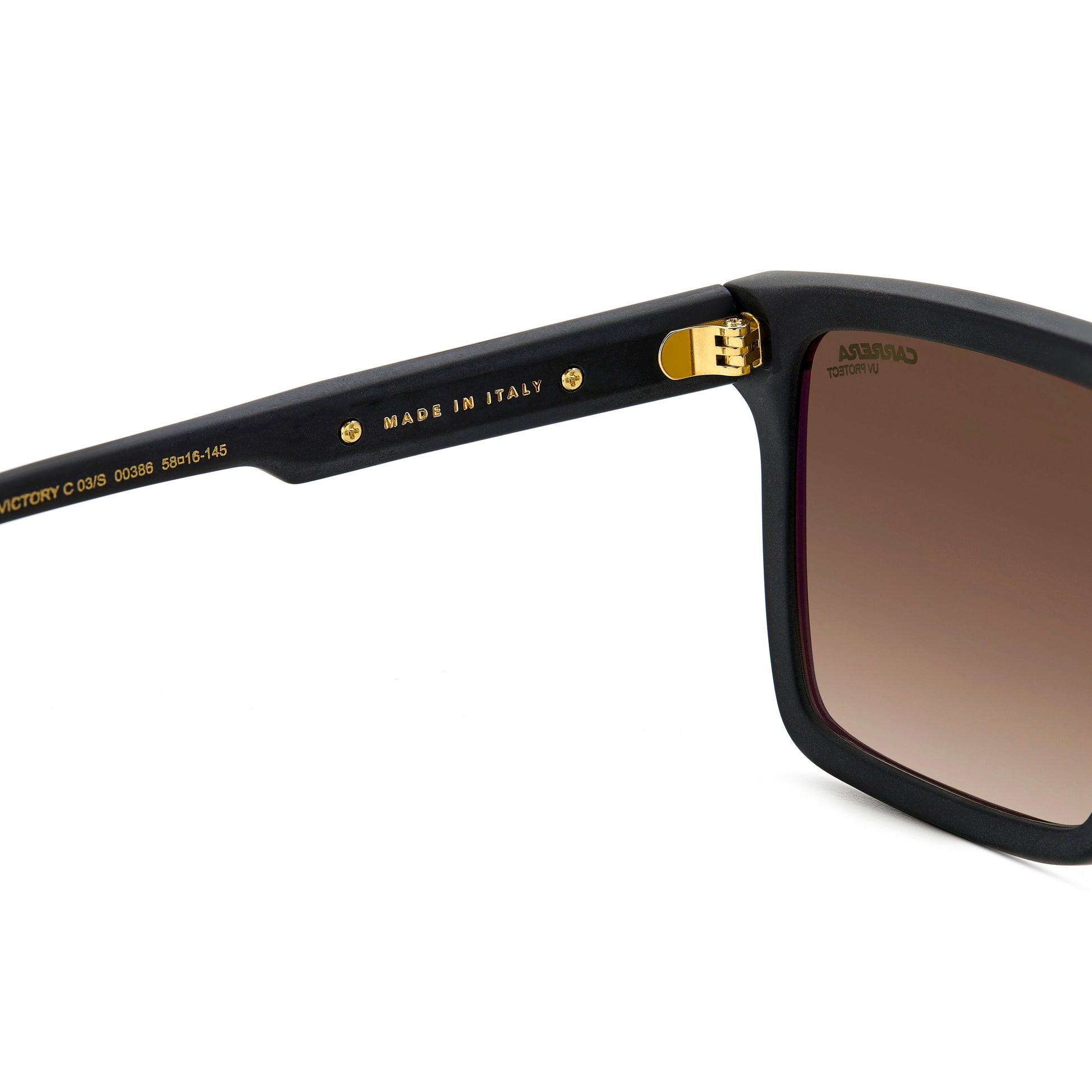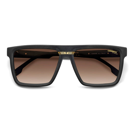Faithful to Carrera style, these Made in Italy sunglasses are a masterpiece of design and craftsmanship. The frames with a flat topline are exalted by a plaque with the Carrera flag and the iconic ‘C’, in a strategic and innovative horizontal position. The sculpted temples with a prominent logo are noteworthy. Made to be worn without hesitation, this style includes options with mirrored or polarized lenses. These glasses can be fitted with prescription lenses.