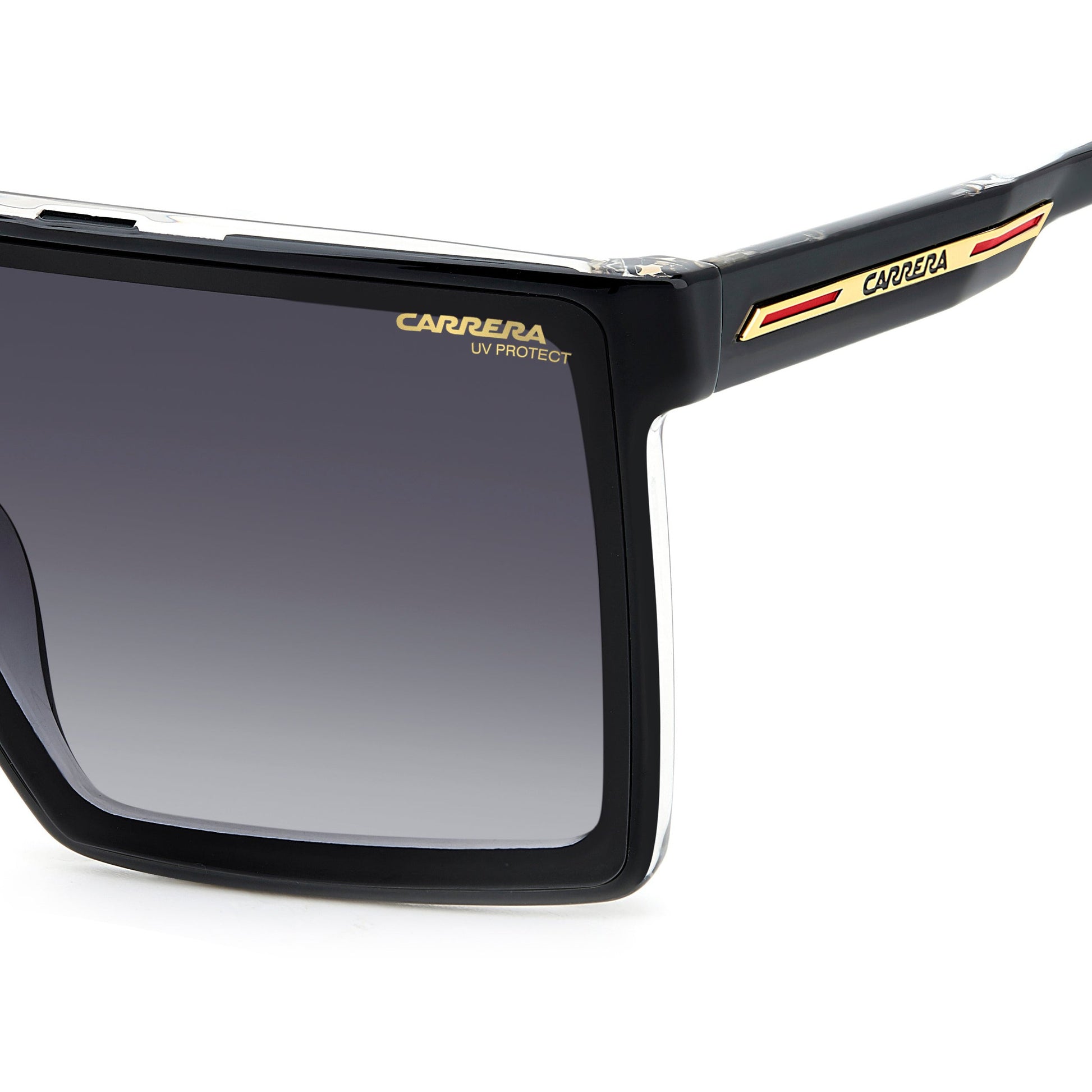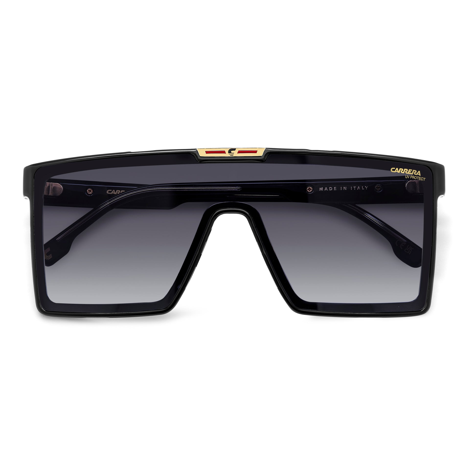 Carrera has transformed sunglasses into a true style statement. This pair is made in Italy, as attested to by the inscription on the inner temple, proof of Carrera’s commitment to quality. The shield frames have a futuristic aesthetic, crowned by the undeniably engaging horizontal ‘C’ logo plaque at the top. The metal detail with the Carrera flag is also echoed on the temples, which narrow slightly around the ears, to complete this unparalleled accessory.