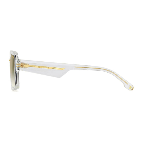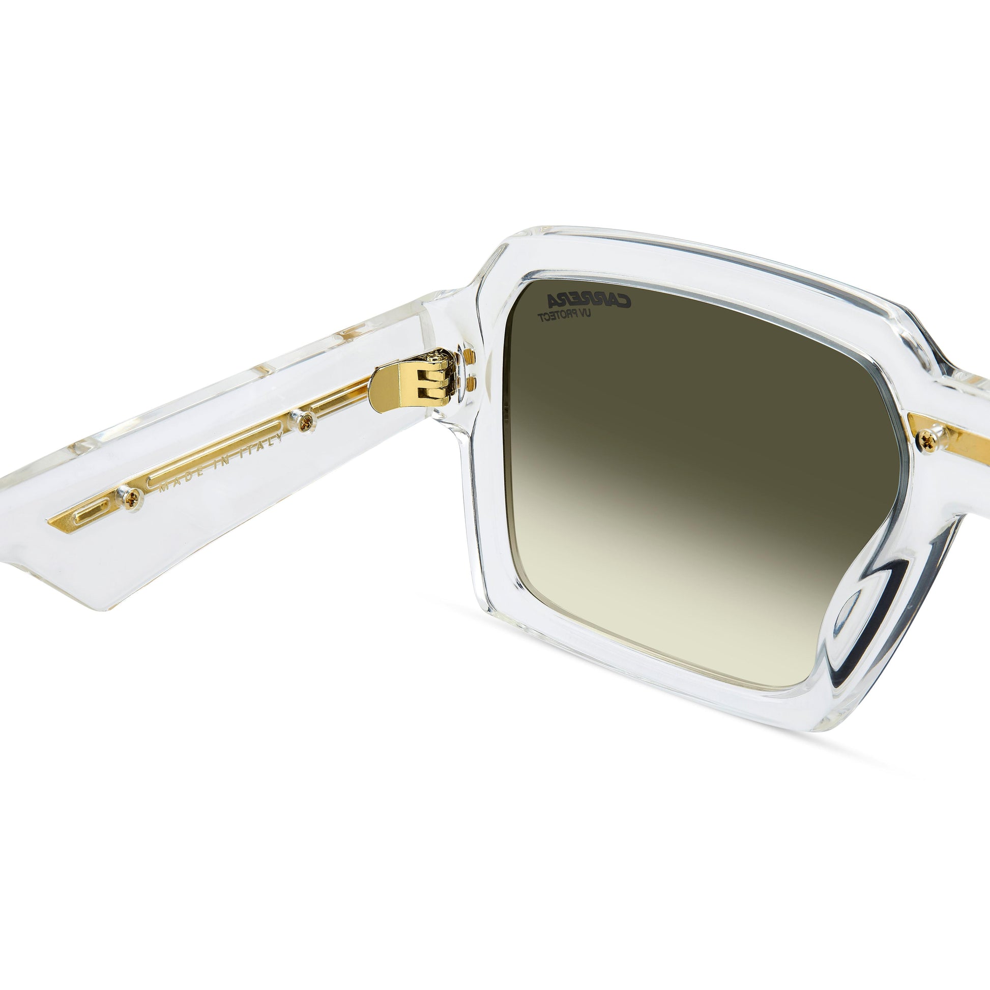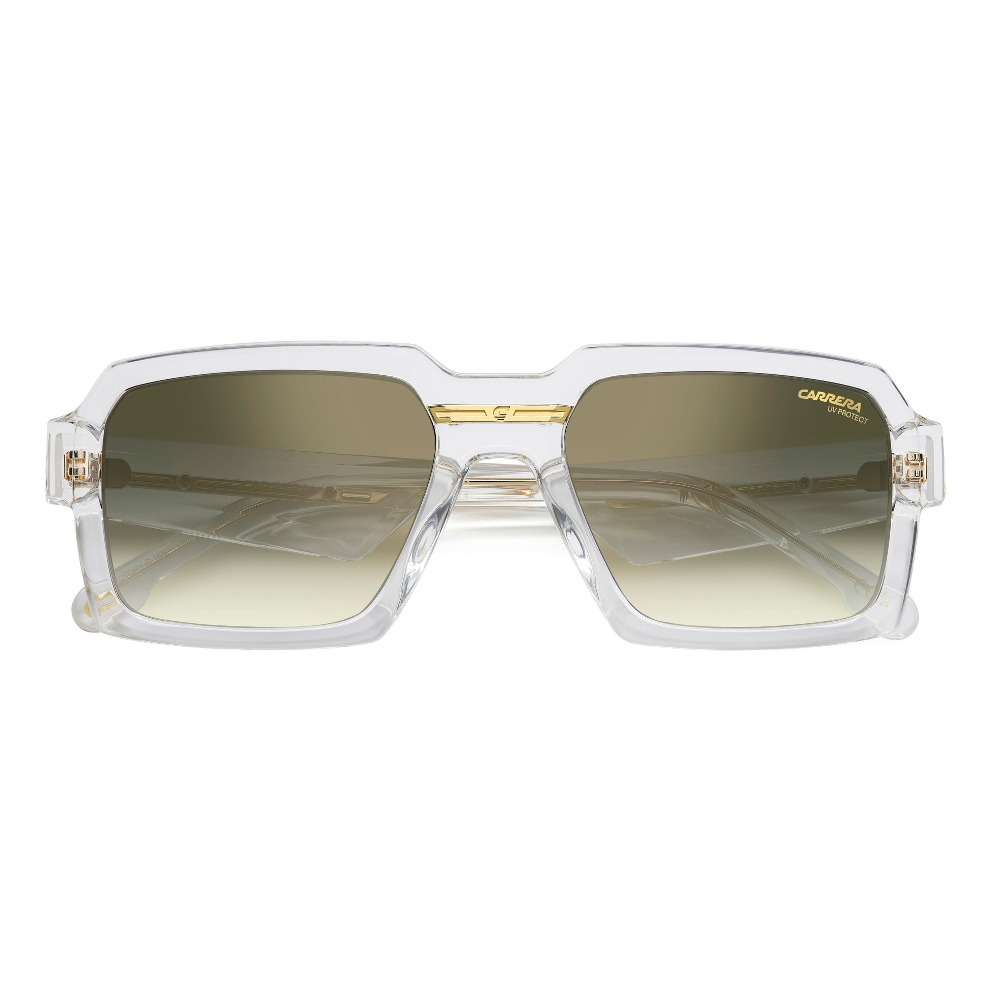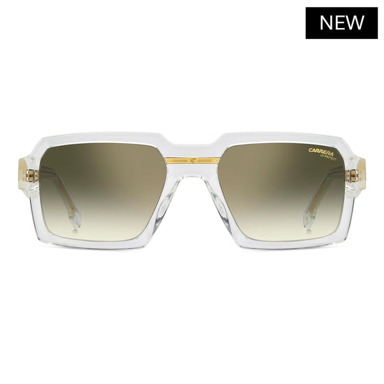 Sleek style and iconic details define these made-in-Italy Carrera sunglasses. The geometric front is the brand's take on current trends and the bold temples make a statement with oversize appeal. Multiple colours are available, including clear frames. Choose mirrored or photochromic lenses. Every pair features Carrera's classic metal insert.