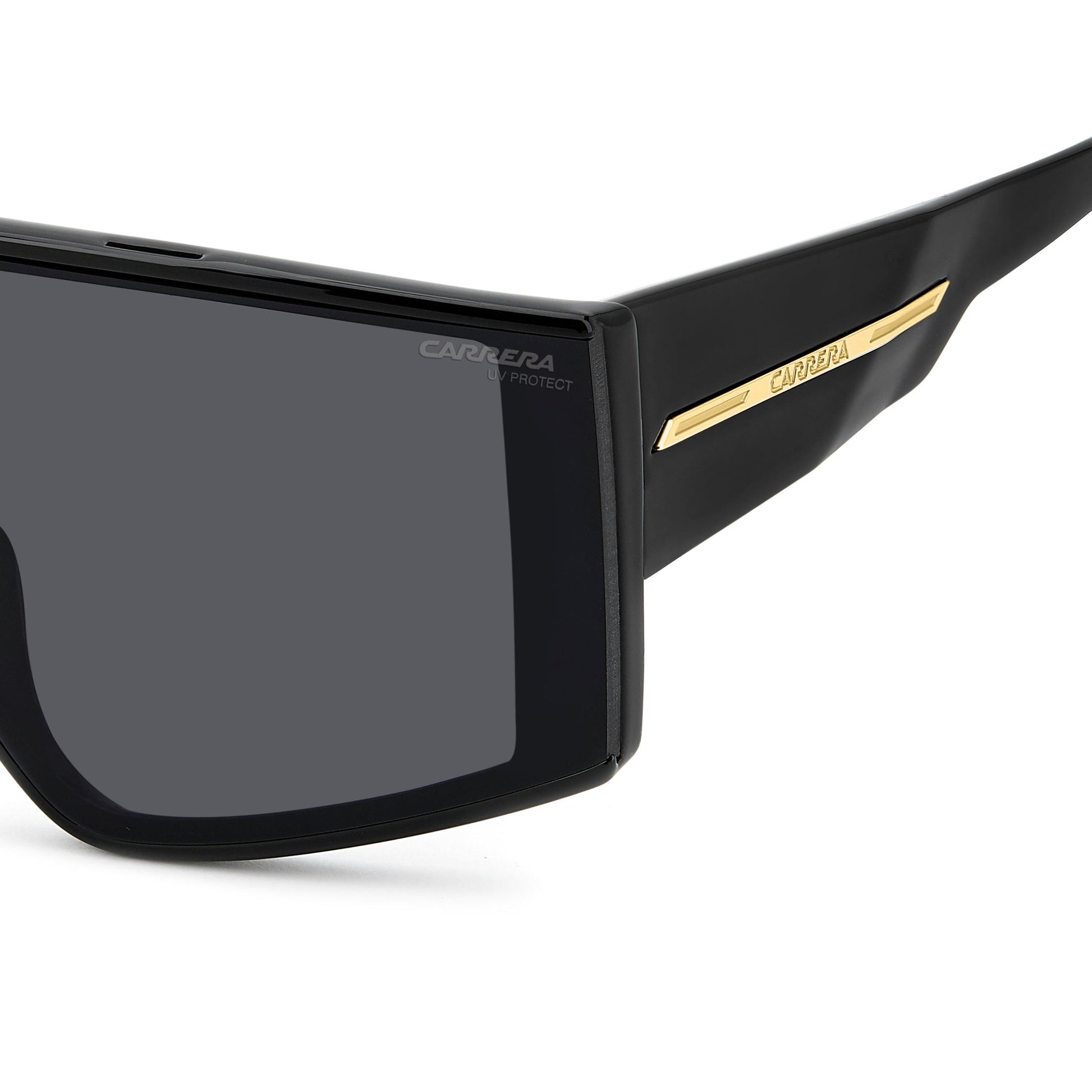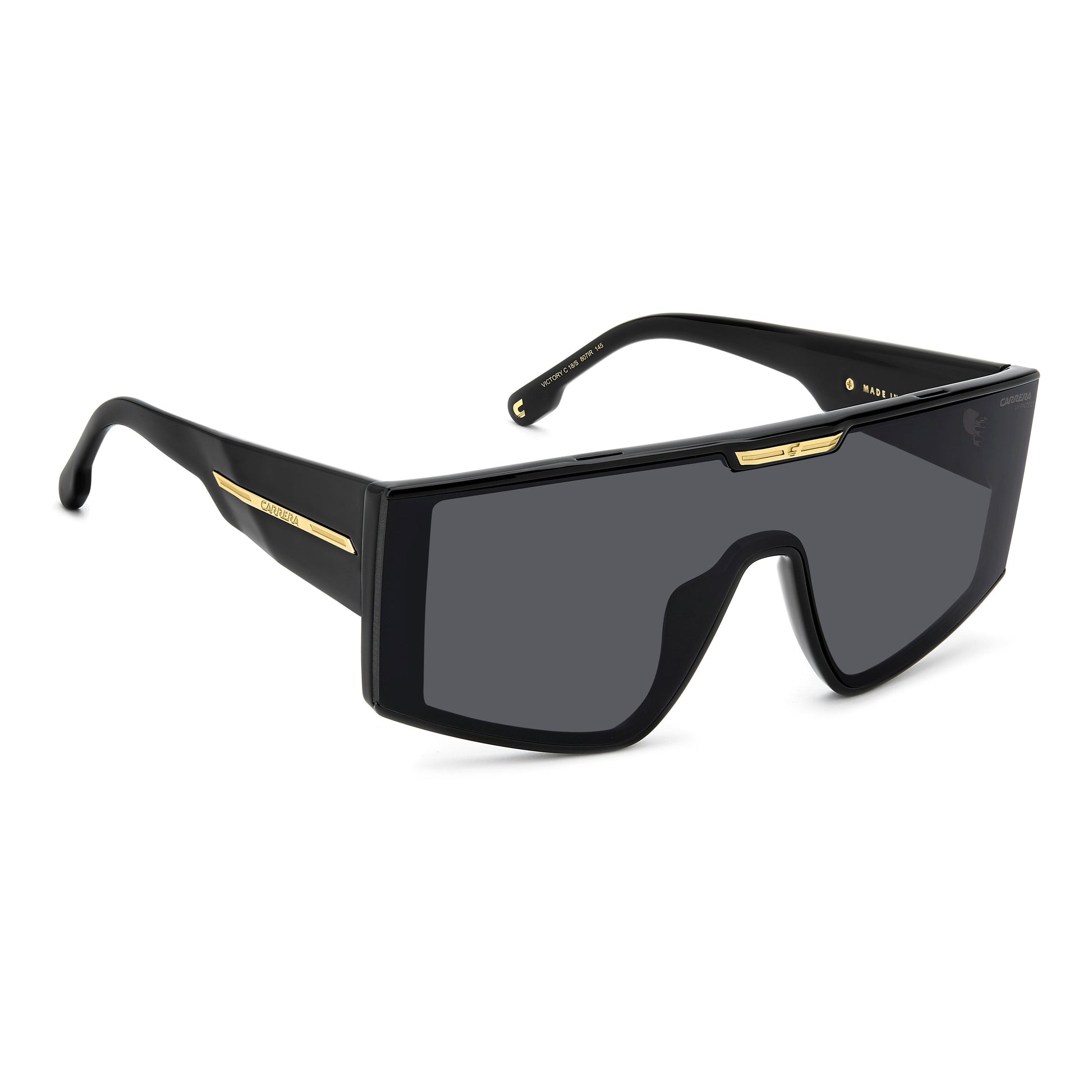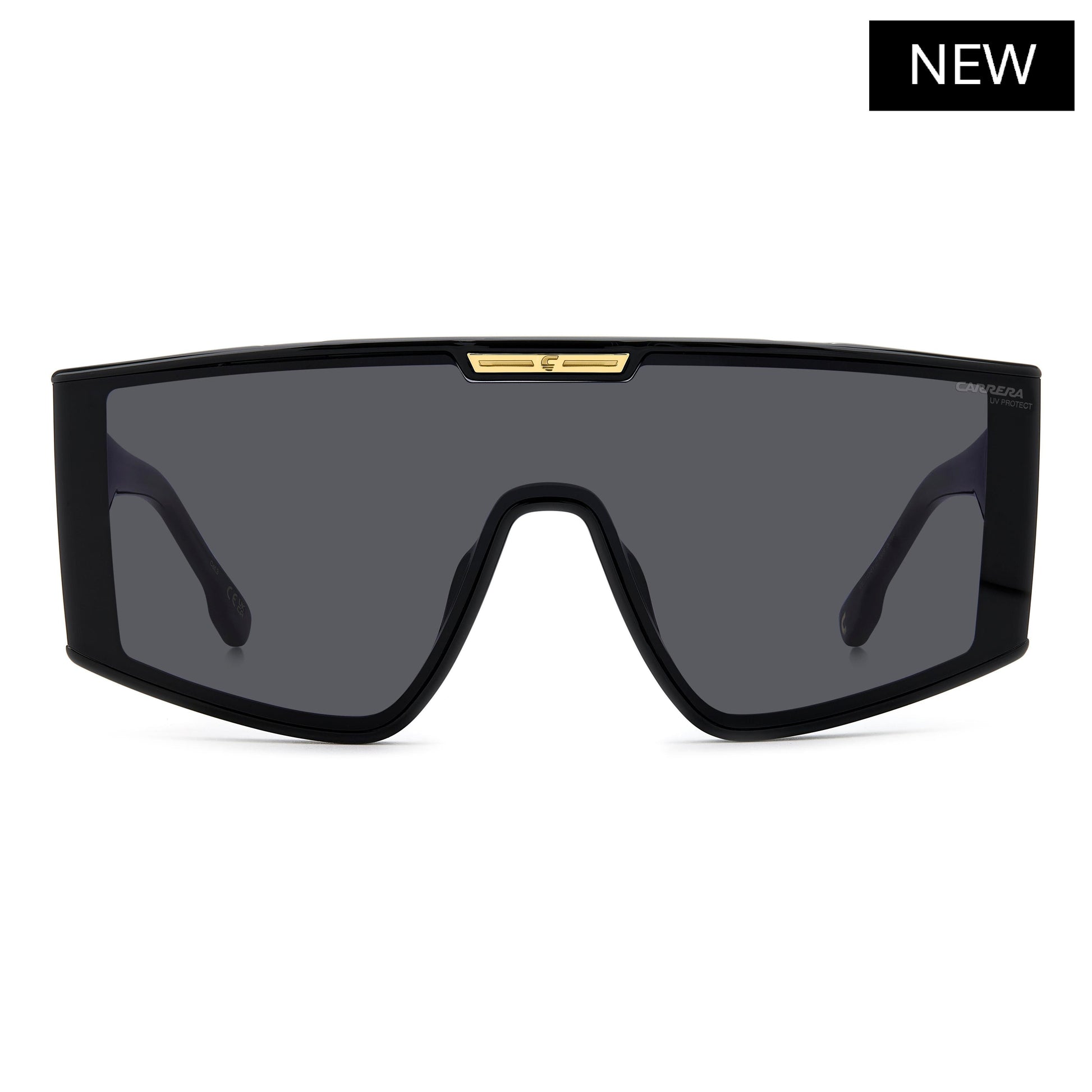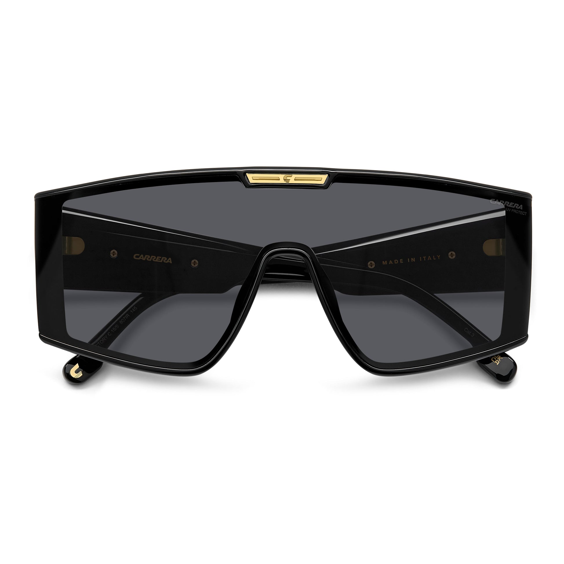 These Carrera shield sunglasses are made to stand out. The single-lens front is striking, especially in the mirrored version. A metal plaque with the brand’s C logo sits at the centre top, repeated on the oversized temples that match Carrera’s bold personality. Made in Italy, they come in different colours, including a transparent option.