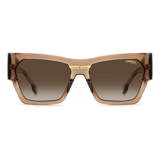 Made-in-Italy sunglasses with a bold attitude. These Carrera frames feature a modern cat-eye front and new oversized temples for the season. The Victory ‘C’ metal plaque adds an iconic touch. Available in classic black and gold or seasonal colours, including a transparent option.