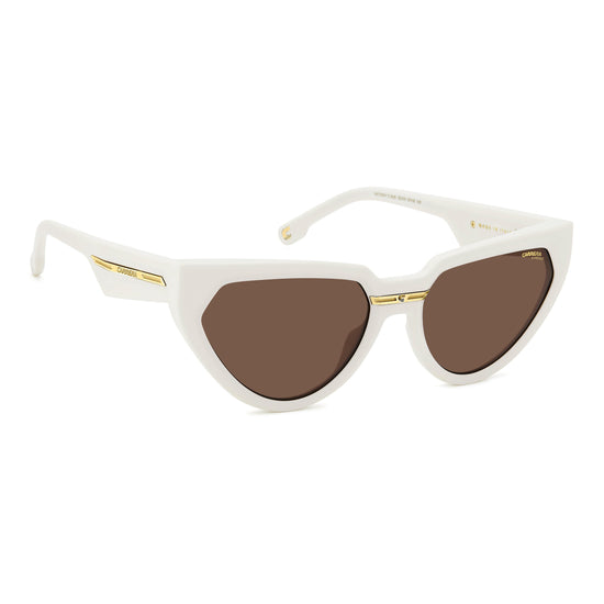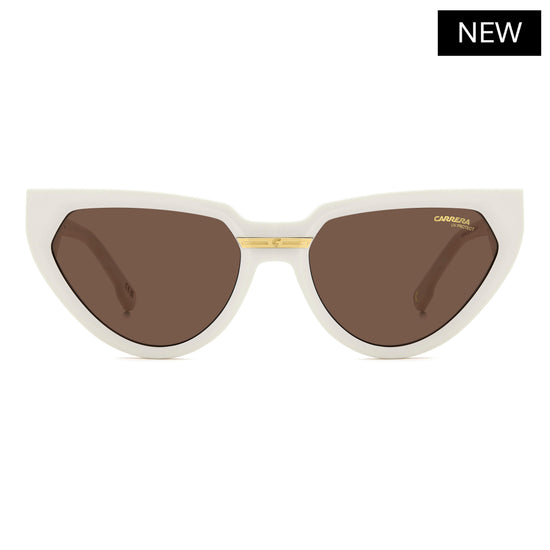 These women's Carrera frames feature a modern cat-eye front. The temples have a chunky, oversized design, new for this season. The metal plaque with the brand’s C indicates the Victory C family, adding an iconic touch. Available in various colours and options with mirrored lenses.